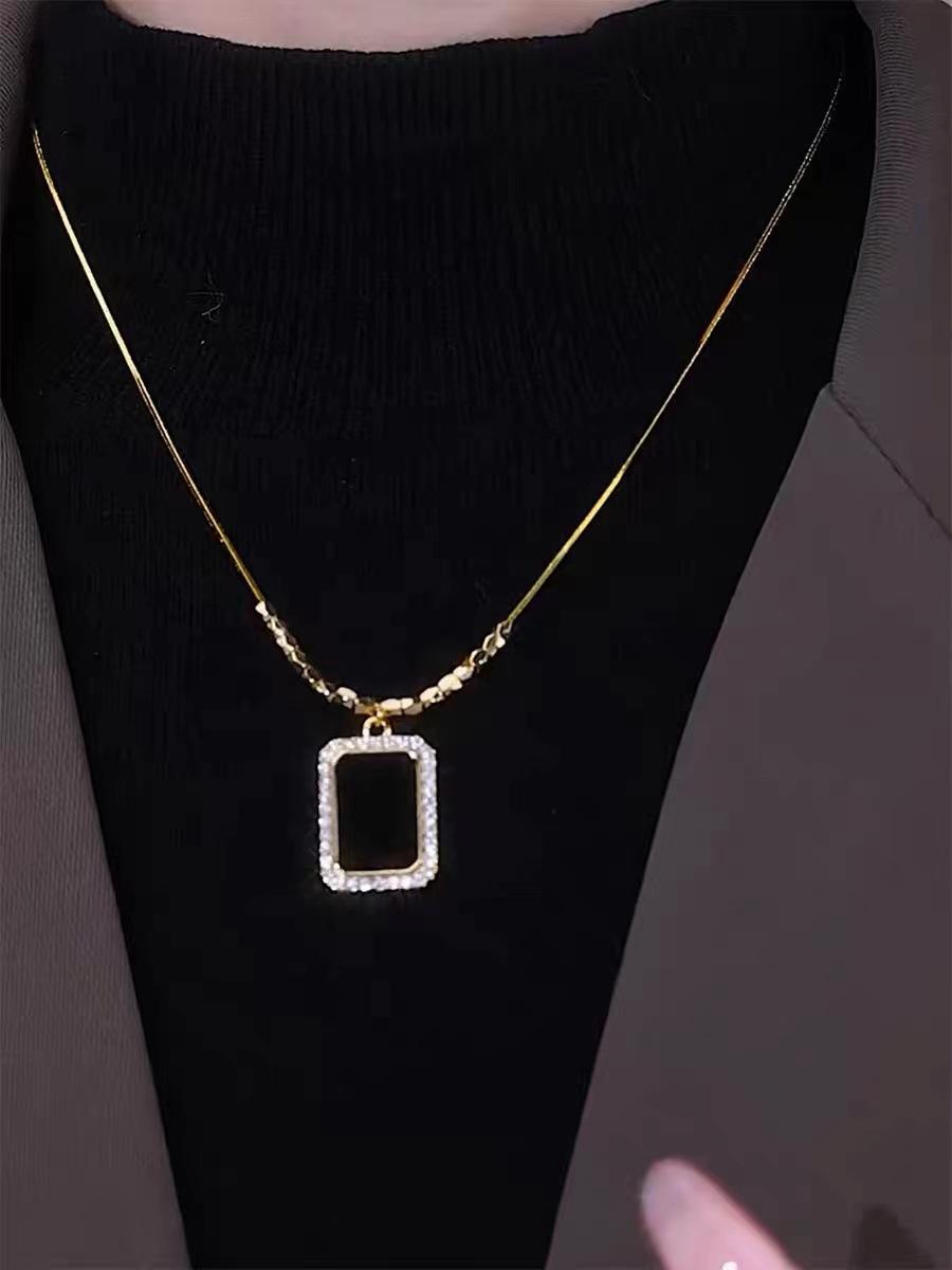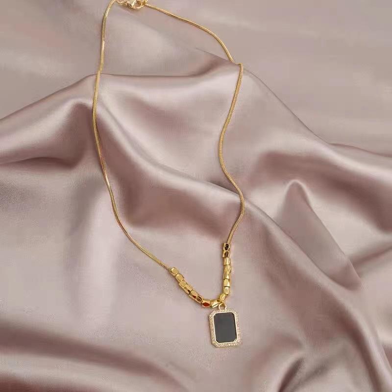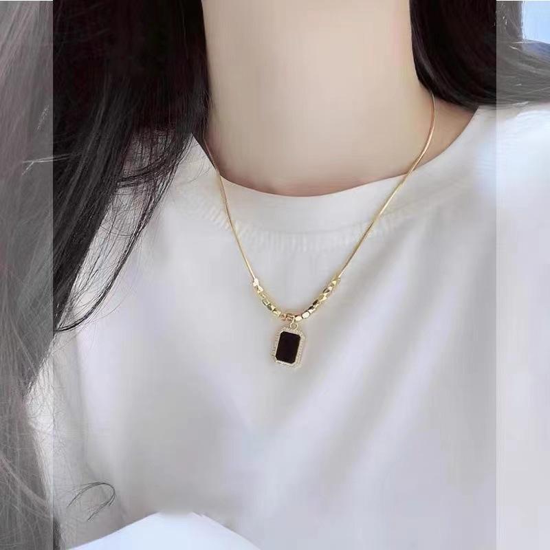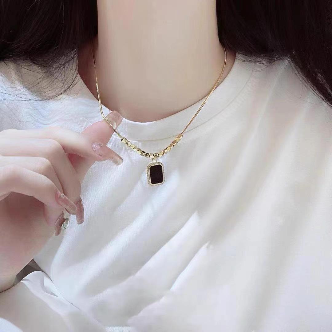 Nuevo Collar Rectangular Negro Popular para Mujer Cadena de Hueso de Serpiente de Acero Titánio Oro K Plata Rota Varios Dos Cadenas para Clavícula Colgante Simple