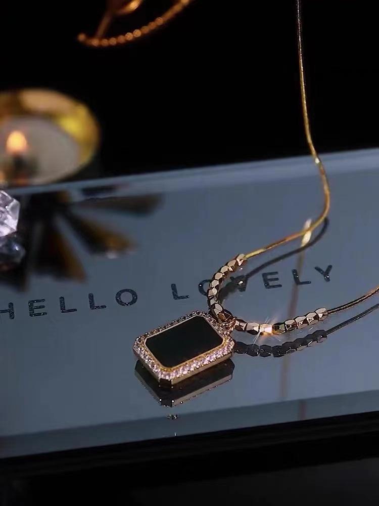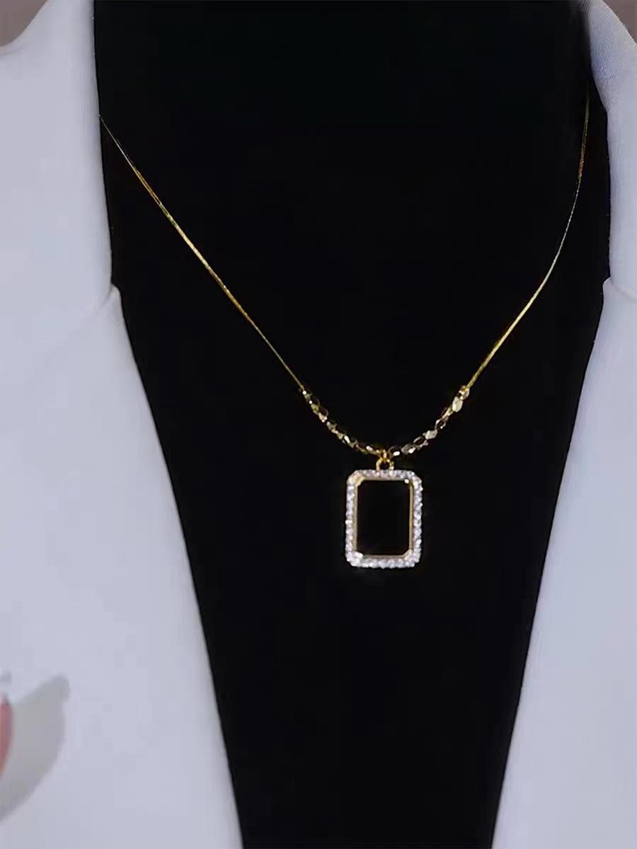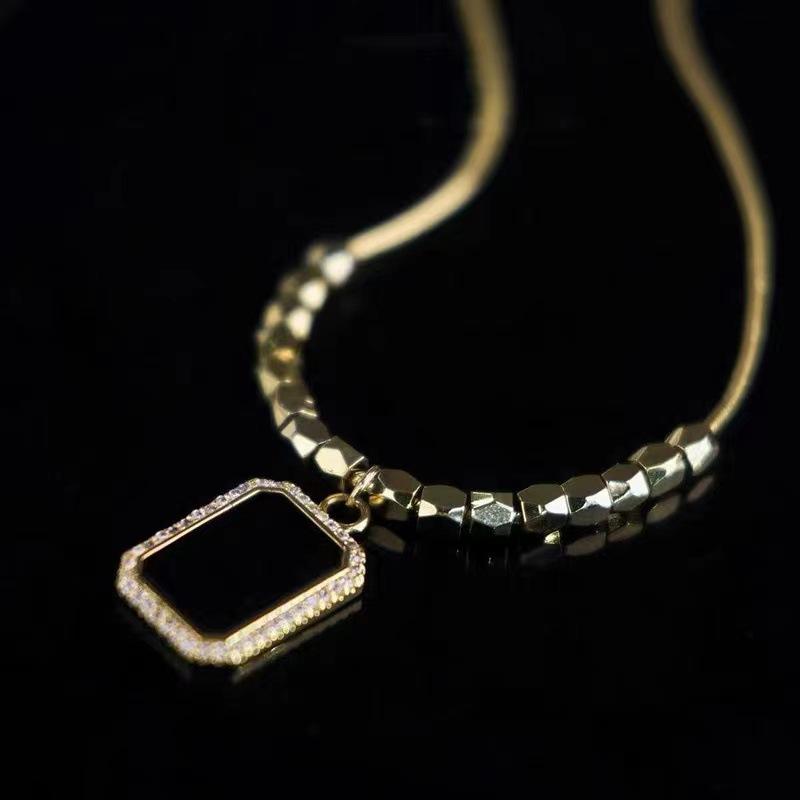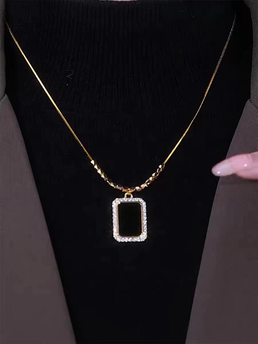 Nuevo Collar Rectangular Negro Popular para Mujer Cadena de Hueso de Serpiente de Acero Titánio Oro K Plata Rota Varios Dos Cadenas para Clavícula Colgante Simple