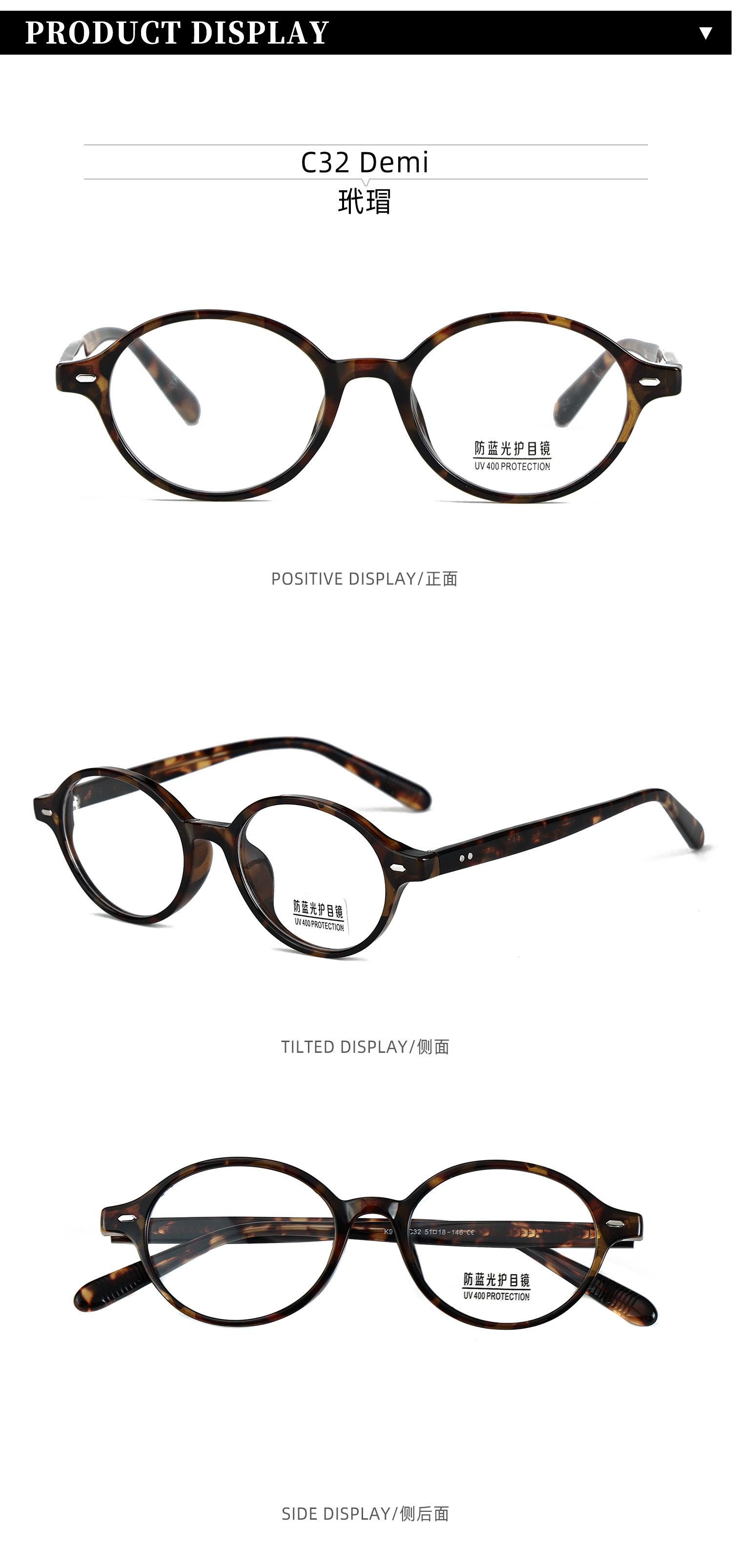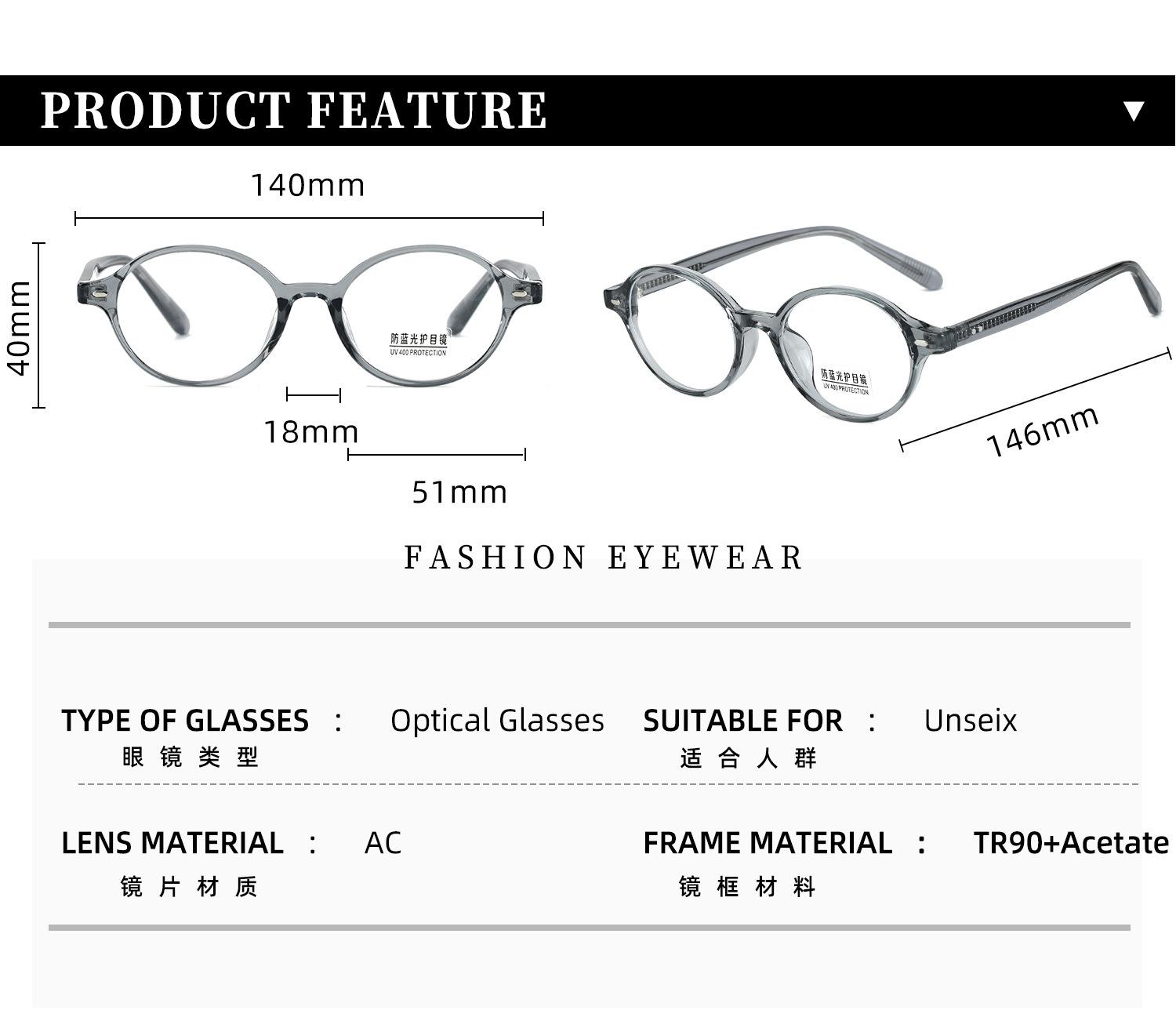 K9141 Nueva Moda Marco Pequeño Espejo Plano para Mujer Anti-Luz Azul Liso Marco Versátil Gafas con Armazón para Miopía