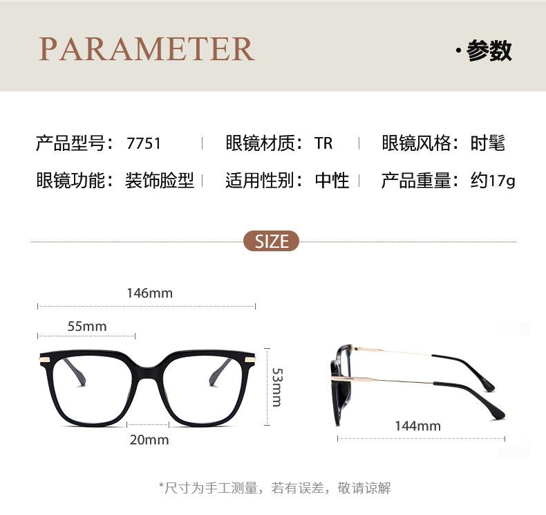 Nuevas gafas TR90 retro con montura grande y espejo plano para hombre, artísticas, adelgazantes, antiluz azul, para miopía de mujer 7751