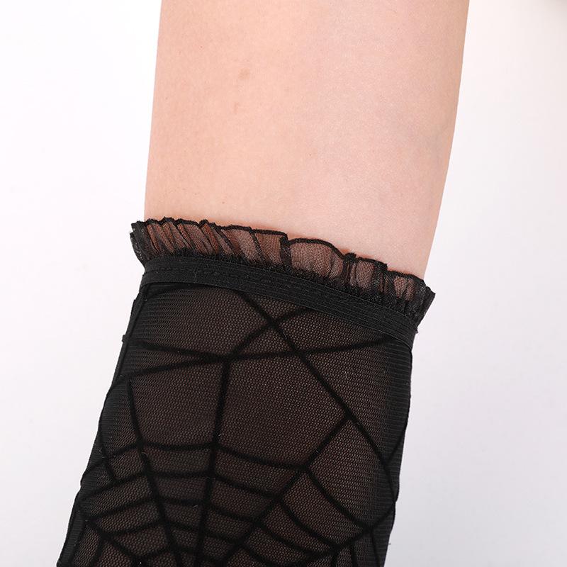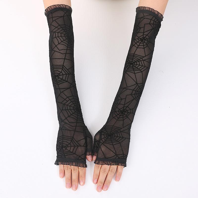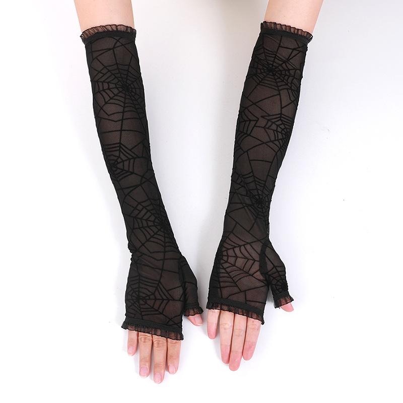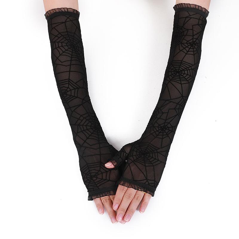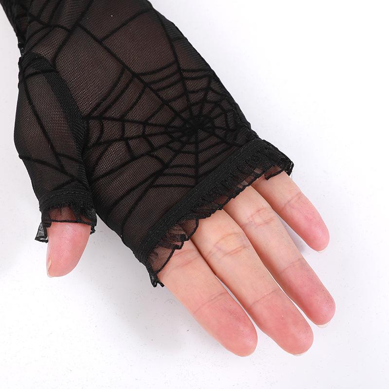 Guantes de Malla de Halloween de Telaraña Larga de Medio Dedo Protección Solar de Medio Dedo Guantes Sexy para Disparar Novia Actuación Escénica