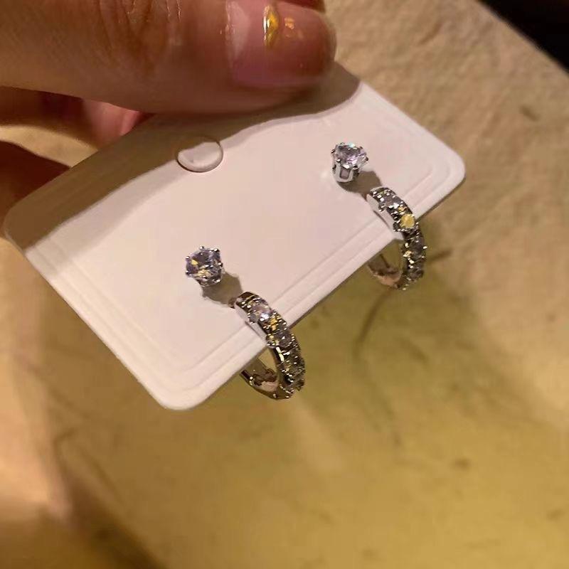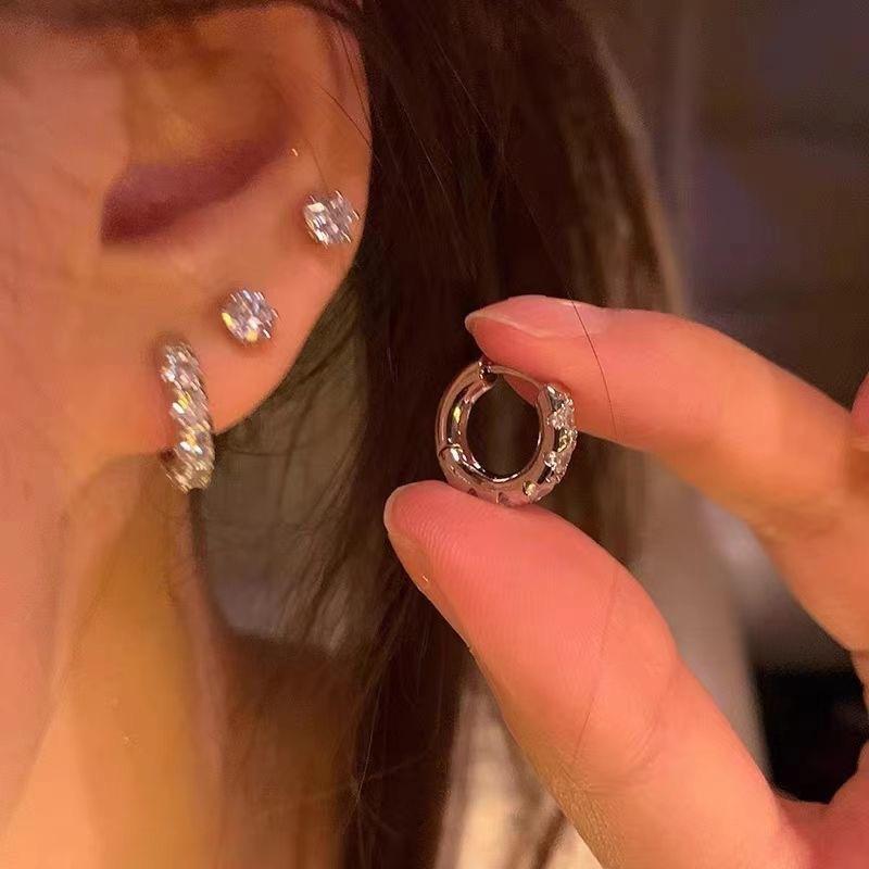 Shiny ear buckle four-piece set, Single Diamond Cup ear studs