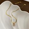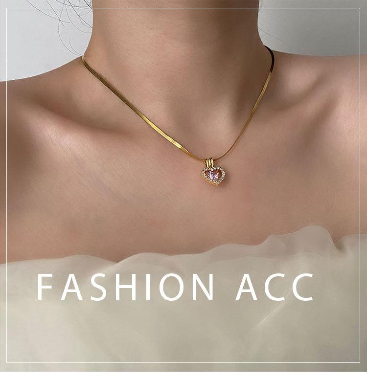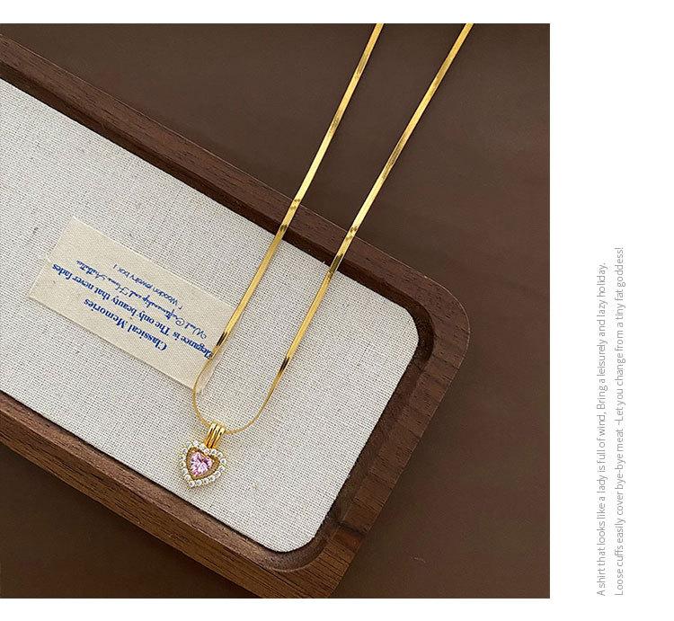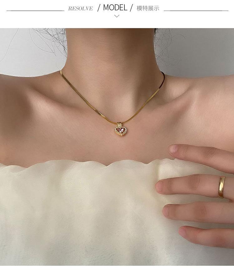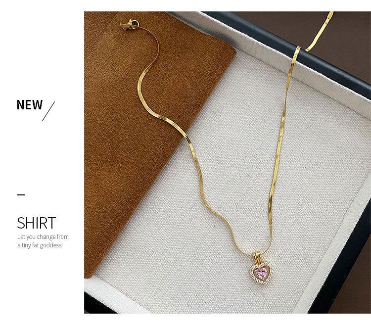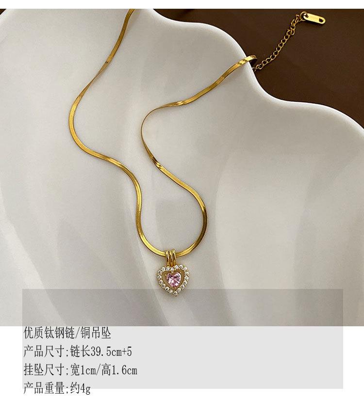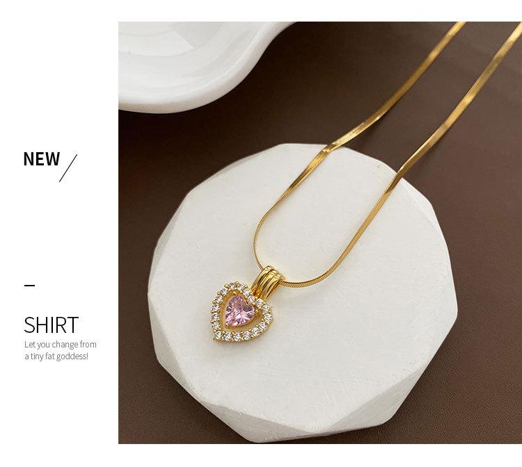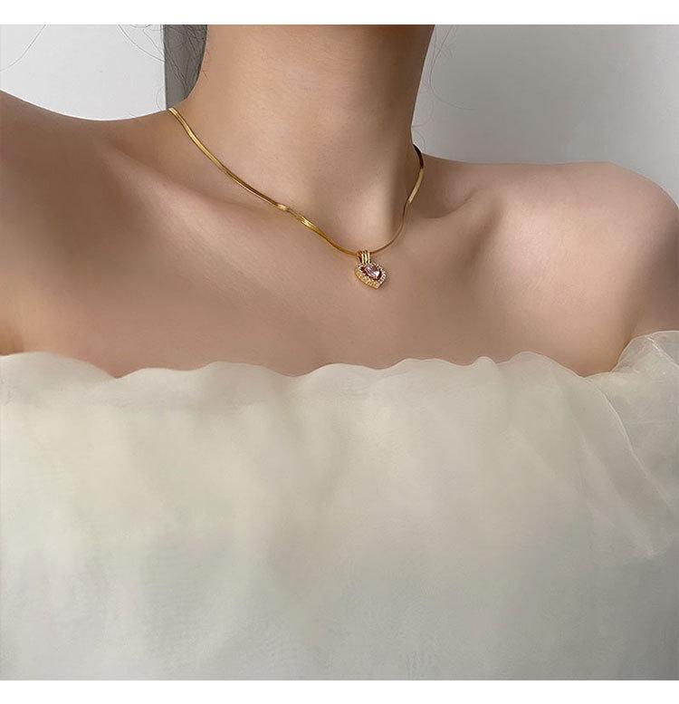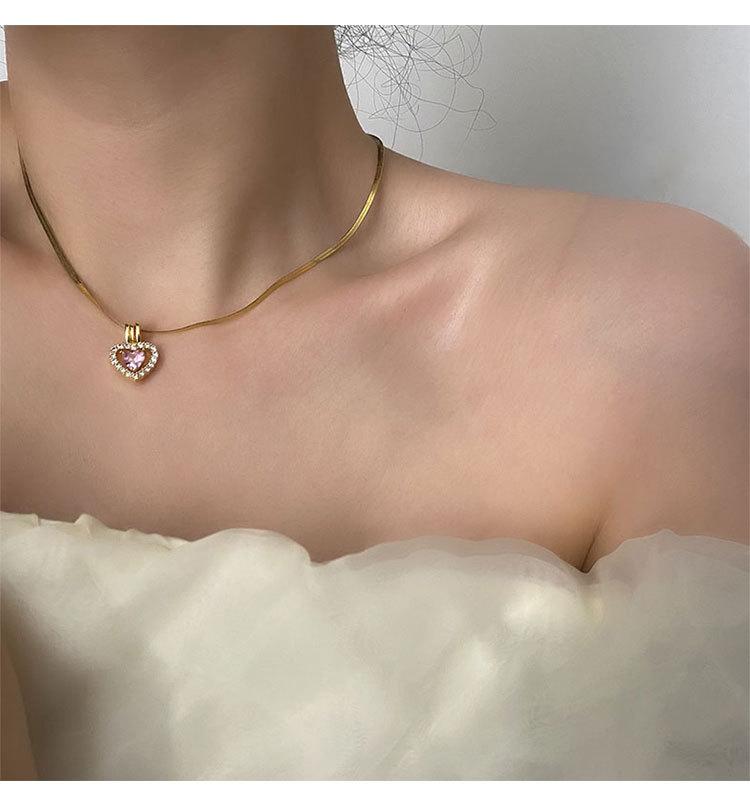 Collar con Colgante de Cobre Exquisito de Moda con Zircón Rosa en Forma de Corazón Estilo Japonés y Coreano Joyería de Cadena Clavicular Exquisita de Acero de Titanio para Mujer