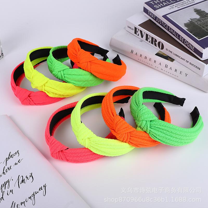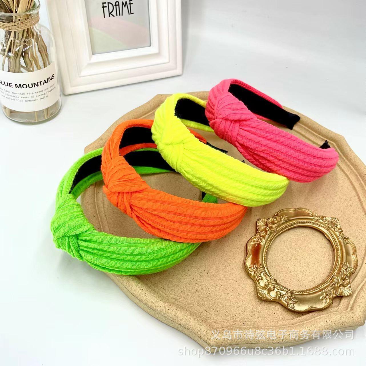 Diadema de color fluorescente nuevo, lazo de tela, diadema de ala ancha, color caramelo, pasador sencillo para dama, accesorios para el cabello, cueva para presionar el cabello
