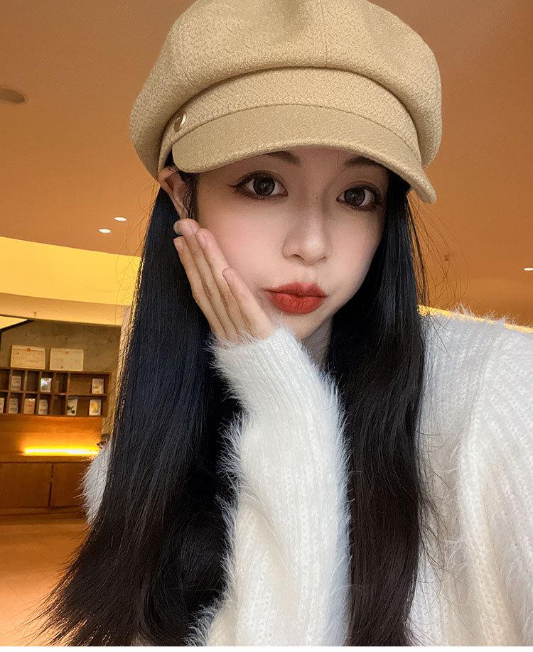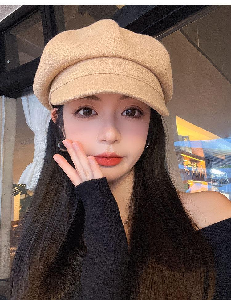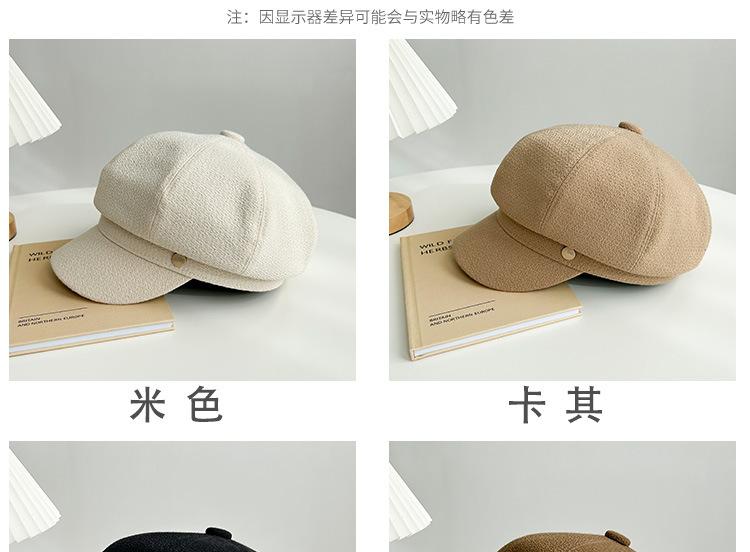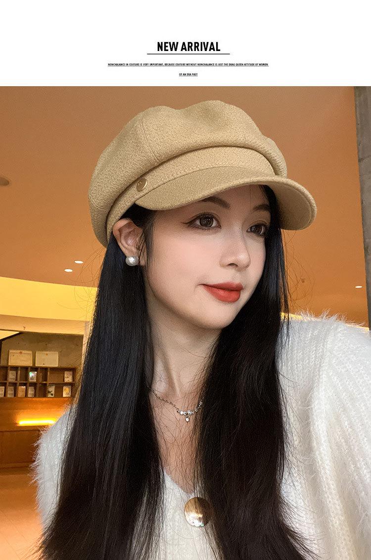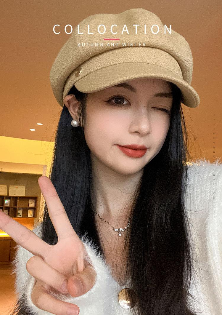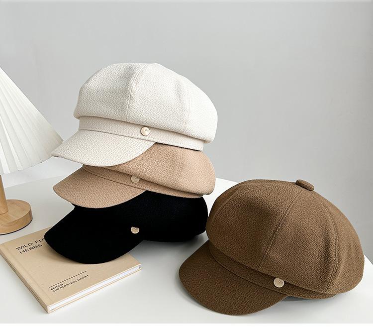 Sombrero octogonal de otoño e invierno para mujer, boina nueva pequeña con aspecto de cara a juego, sombrero de calabaza retro de celebridad de Internet, sombrero de temperamento casual