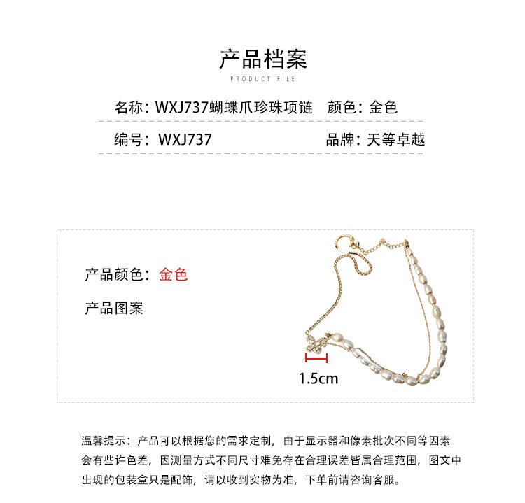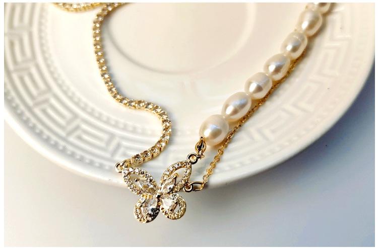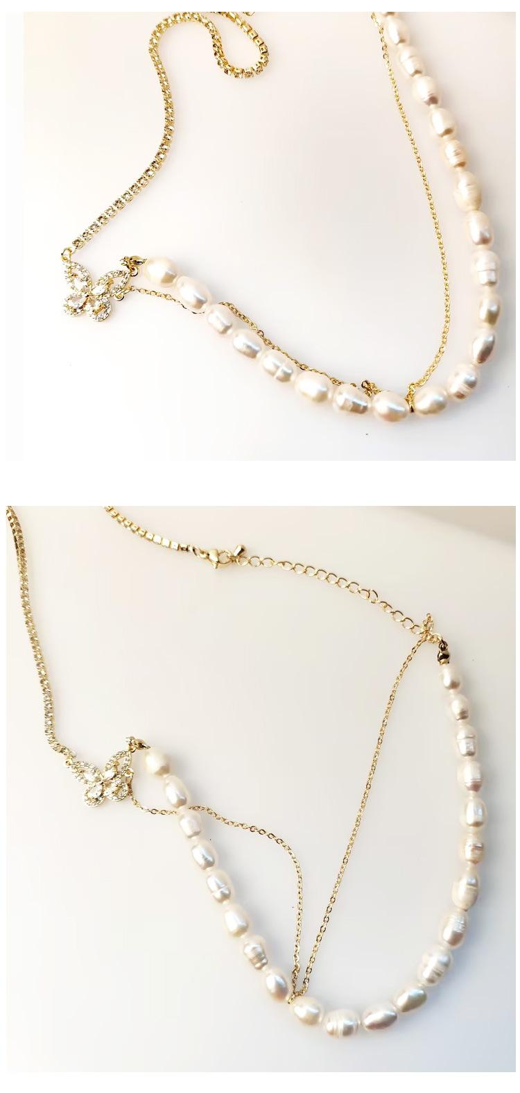 Collar de mariposa con perlas de agua dulce barrocas naturales para mujer, cadena de lana ligera de lujo con diseño personalizado a la moda para clavícula.