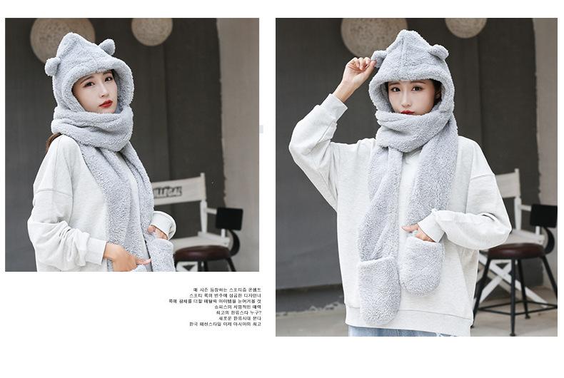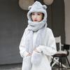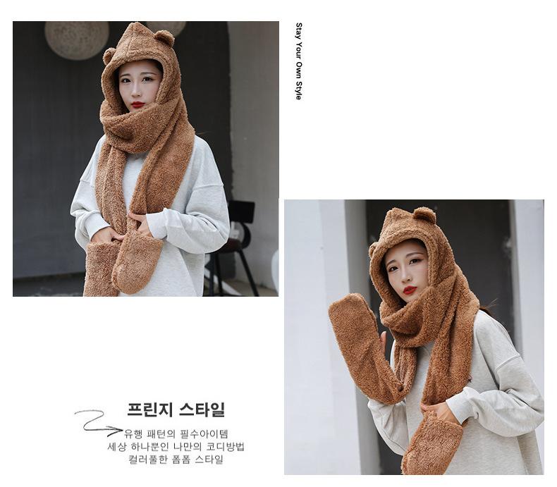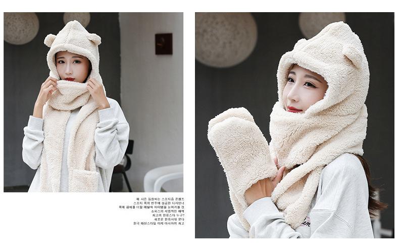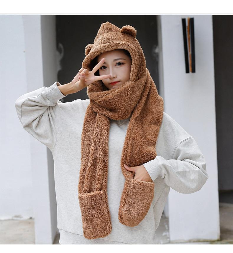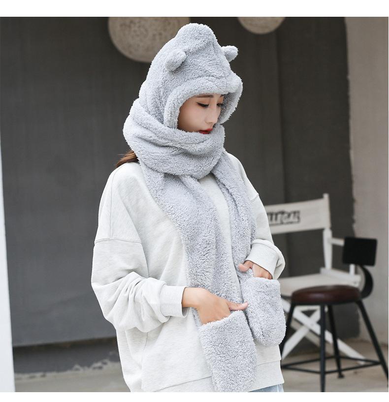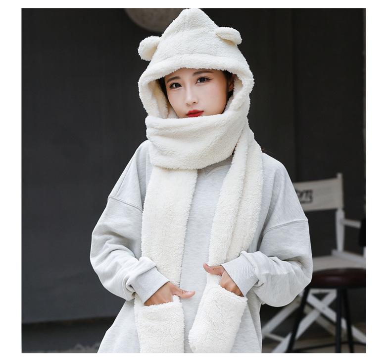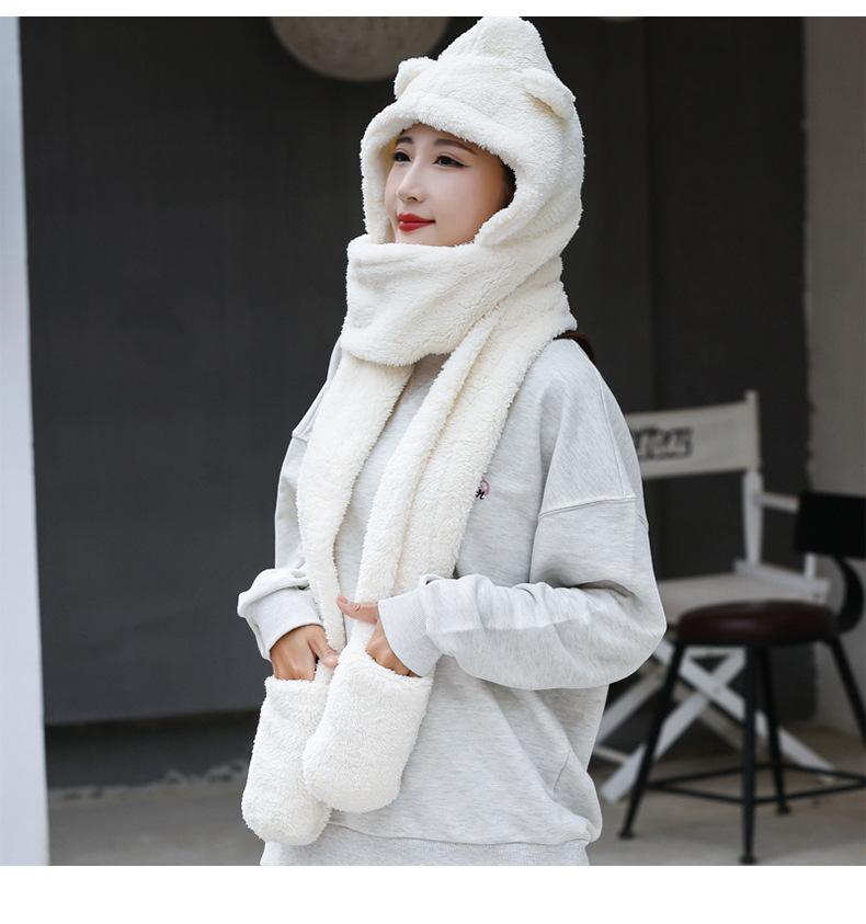 Lindo gorro de invierno para mujer con orejas de oso, cálido, doble capa gruesa, para otoño e invierno, conjunto de tres piezas: gorro, bufanda y guantes