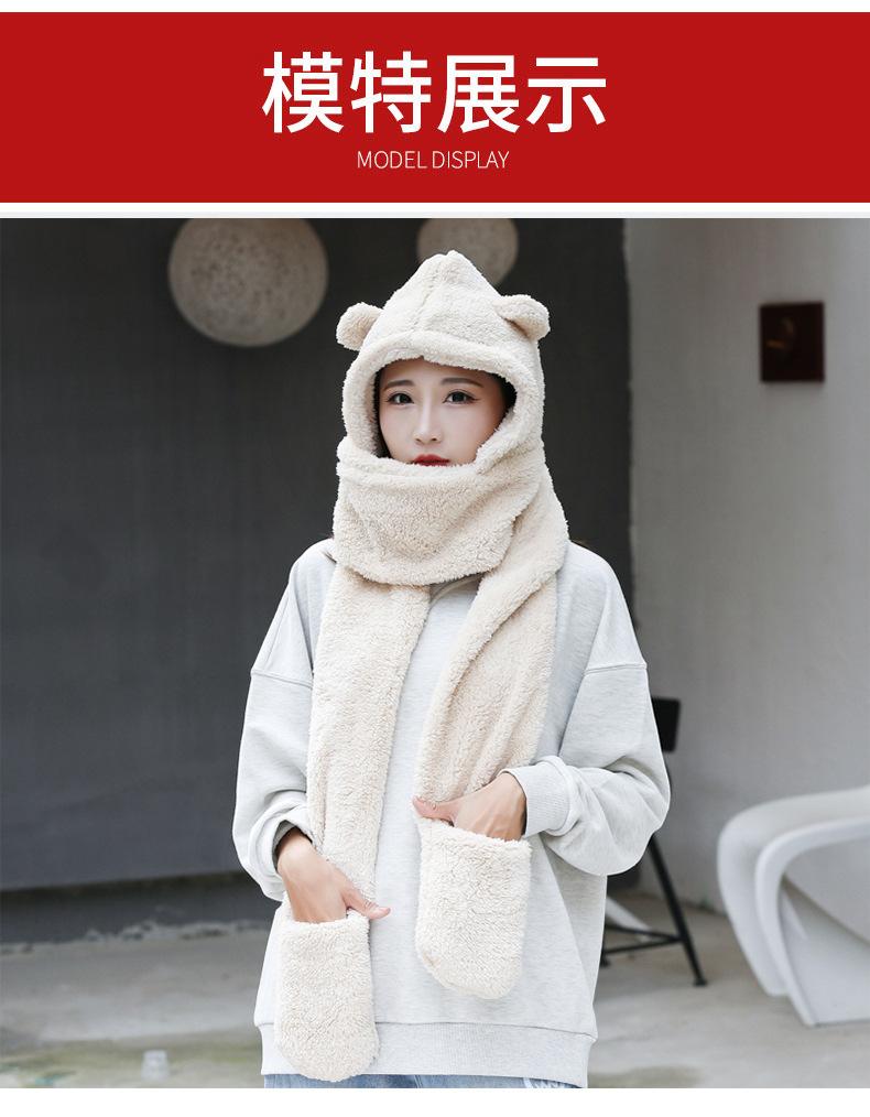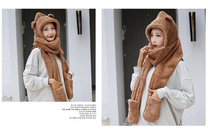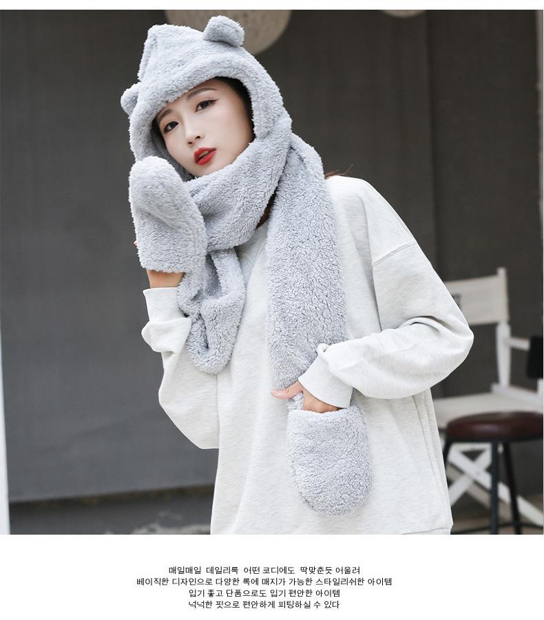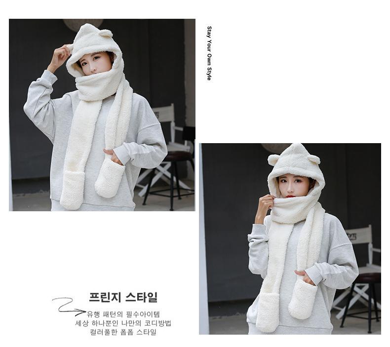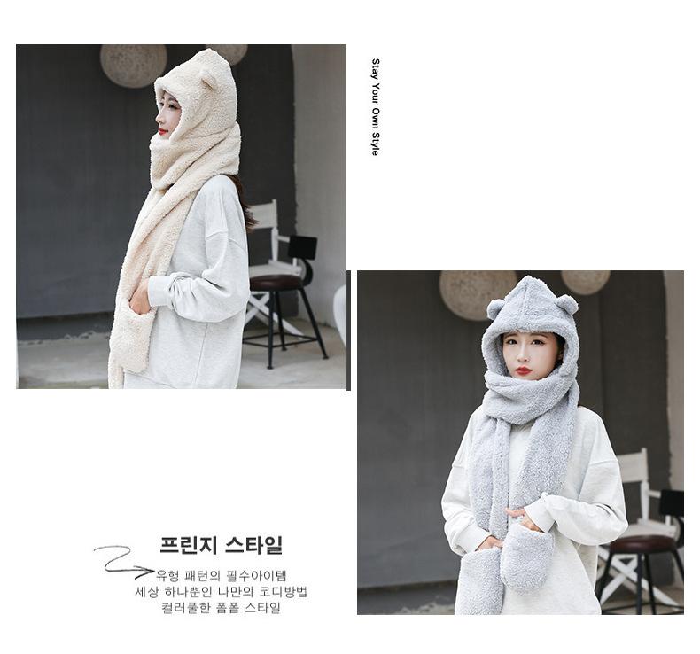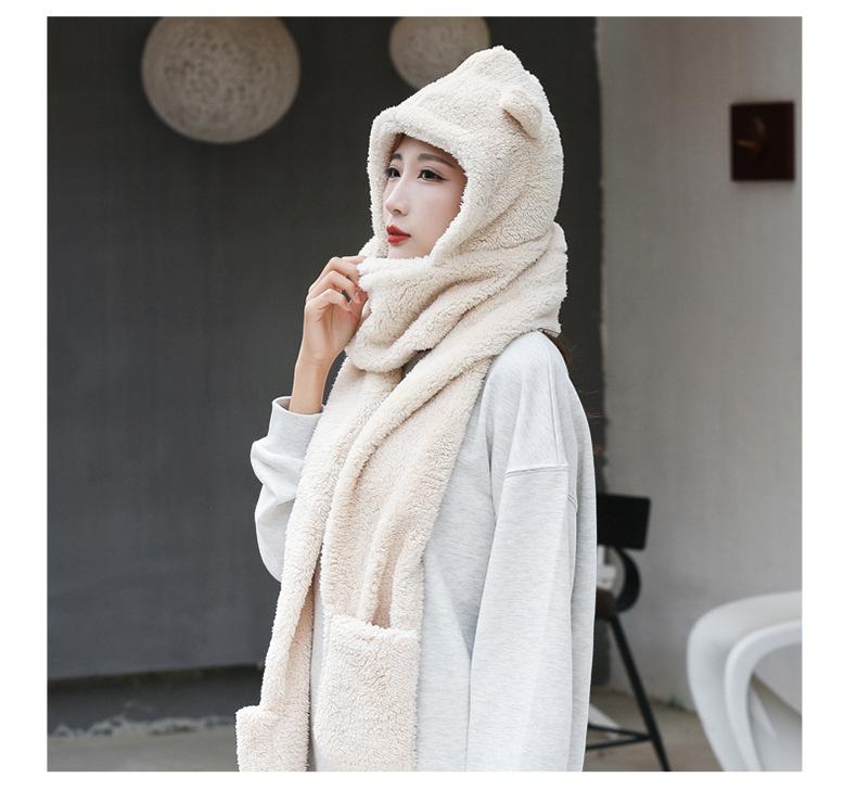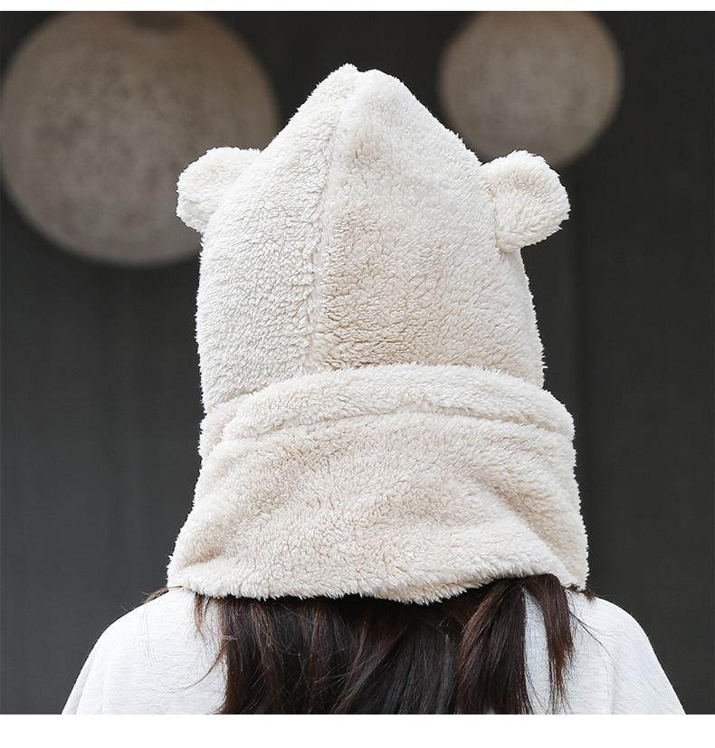 Lindo gorro de invierno para mujer con orejas de oso, cálido, doble capa gruesa, para otoño e invierno, conjunto de tres piezas: gorro, bufanda y guantes