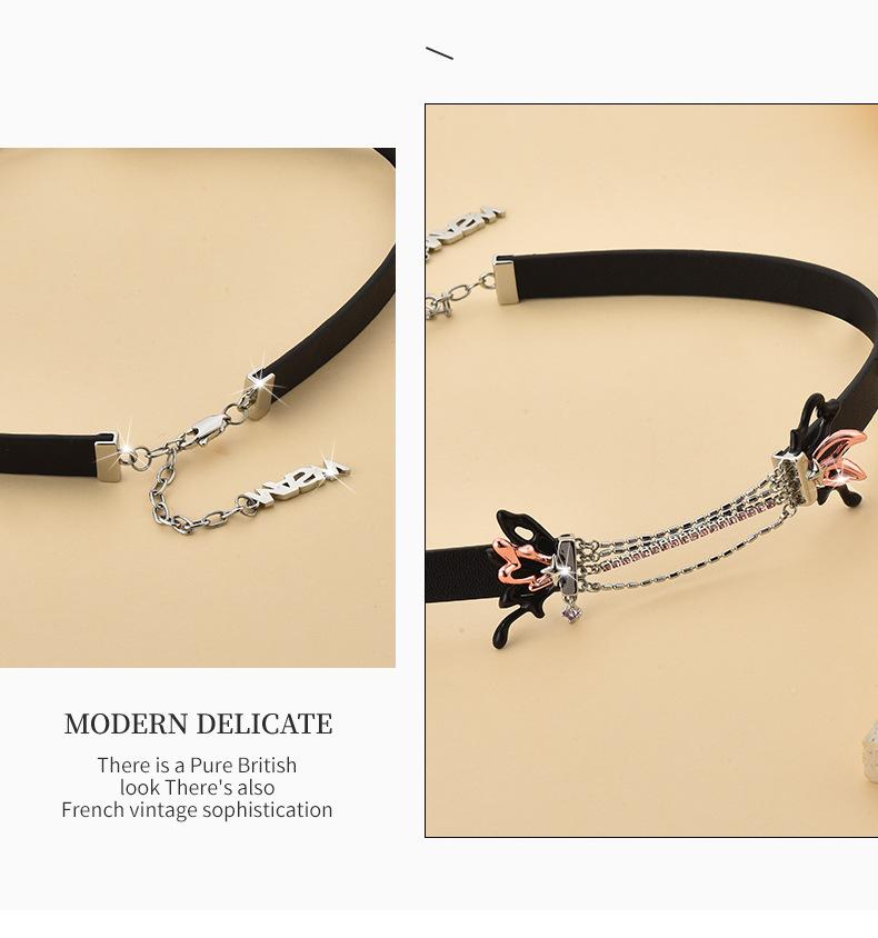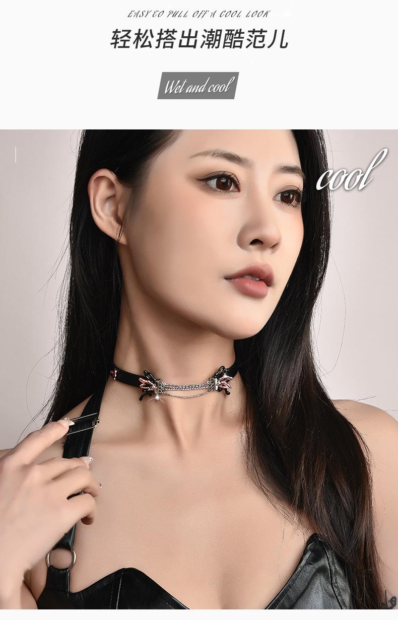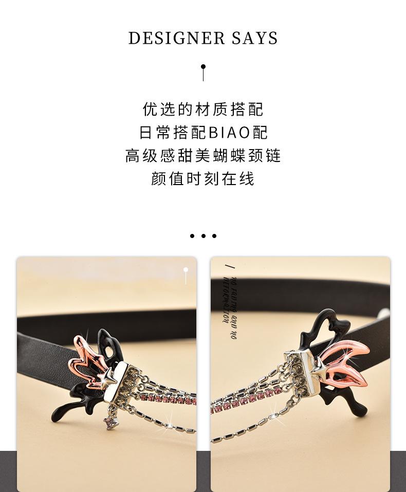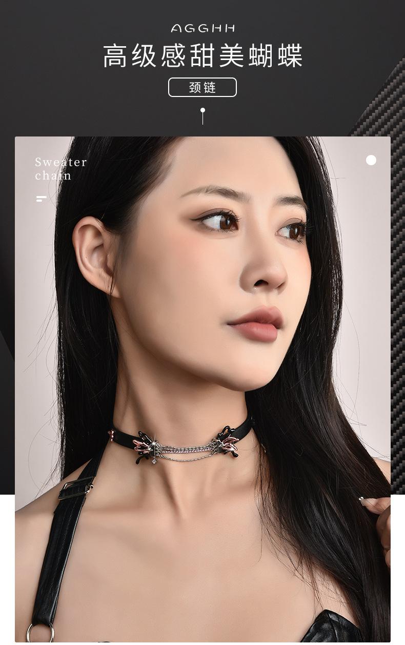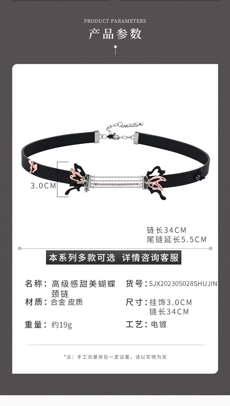 Collar de mariposa dulce con diseño de nicho directo de fábrica, collar de cuero PU con especias frescas y dulces de gran sentido, venta al por mayor para mujeres