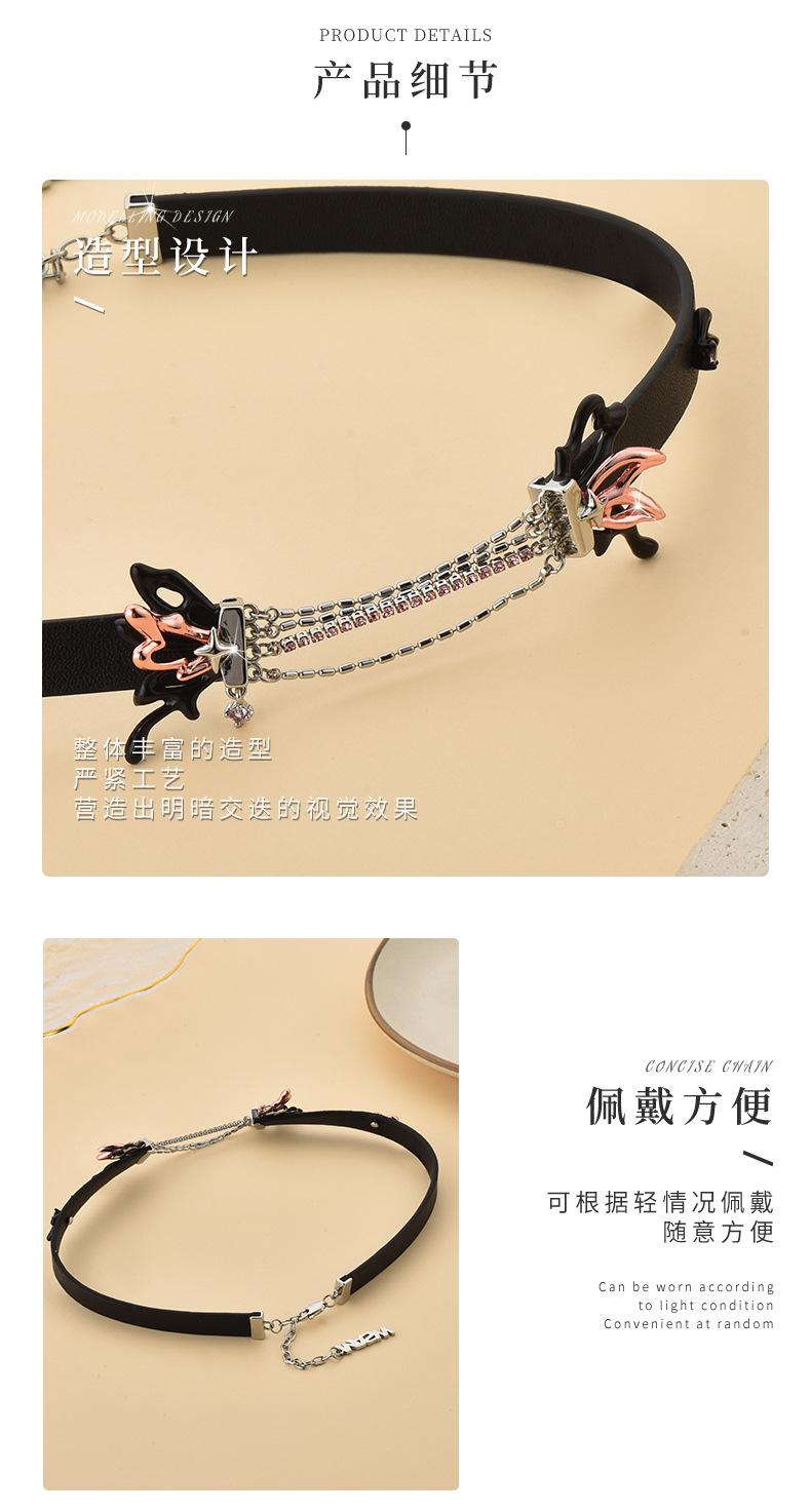 Venta directa de fábrica, collar con cinturón personalizado, cadena de clavícula, accesorios sin género, gargantilla, estilo punk oscuro, combina con todo, tendencia de cuero