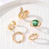 Anillo articulado combinado de diamantes nuevos transfronterizo europeo y americano, retro esmeralda en forma de serpiente, conjunto de 5 piezas