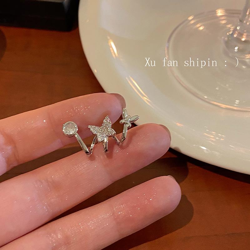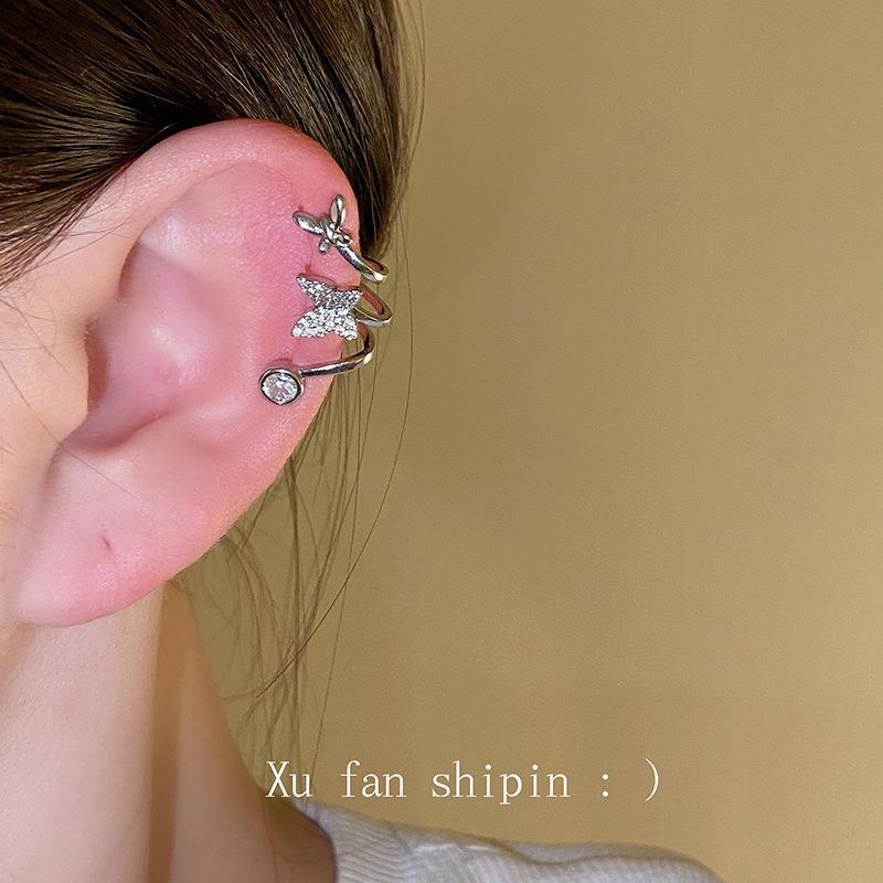 Pendientes Tiktok con forma de mariposa de circonita y clip para oreja para mujer, sin perforaciones, ligeros, de lujo, con temperamento personalizado, al por mayor