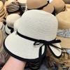 Sombrero de Paja con Lazo Trasero Dividido Sombrero de Verano para Mujer Viaje Vacaciones Protección Solar Sombrero de Sol Playa Exterior Sombrero de Playa