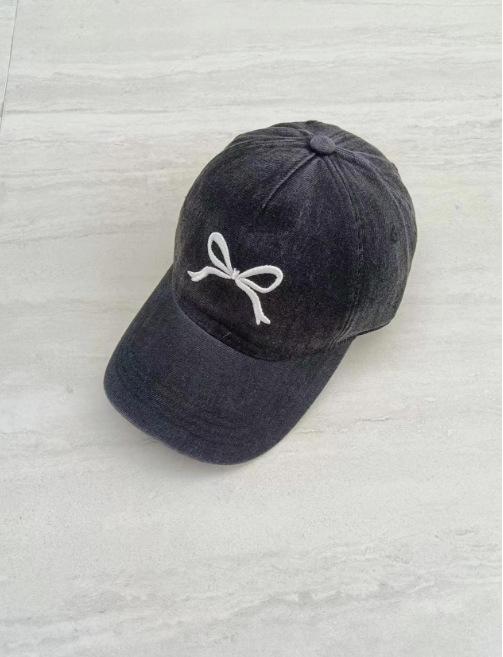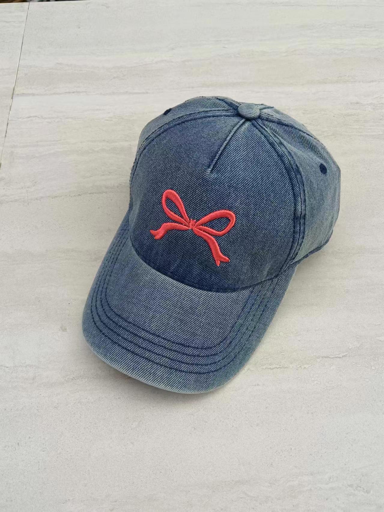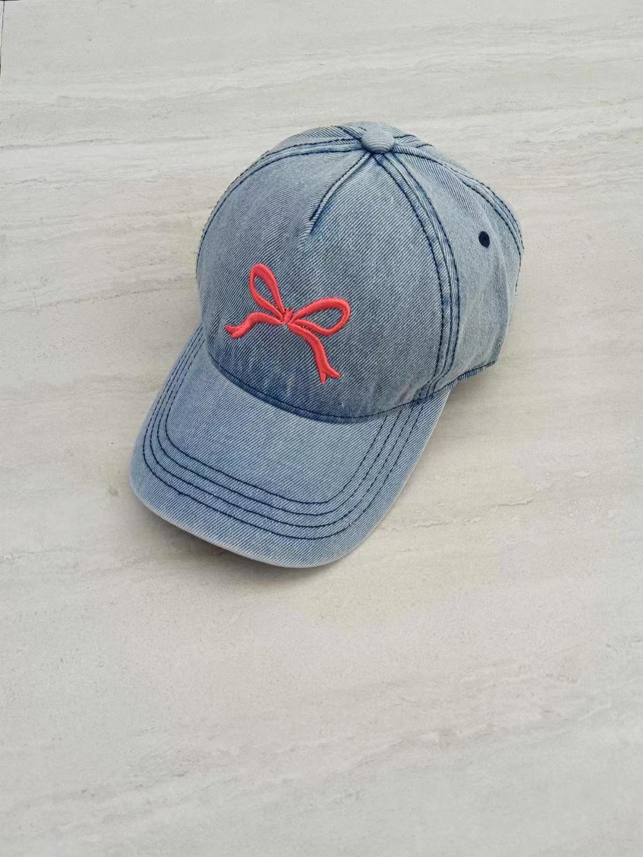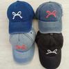 Gorra con visera bordada con lazo estilo ins coreano para mujer 2024 primavera nuevo sombrero de mezclilla que hace que la cara se vea pequeña gorra de béisbol moda
