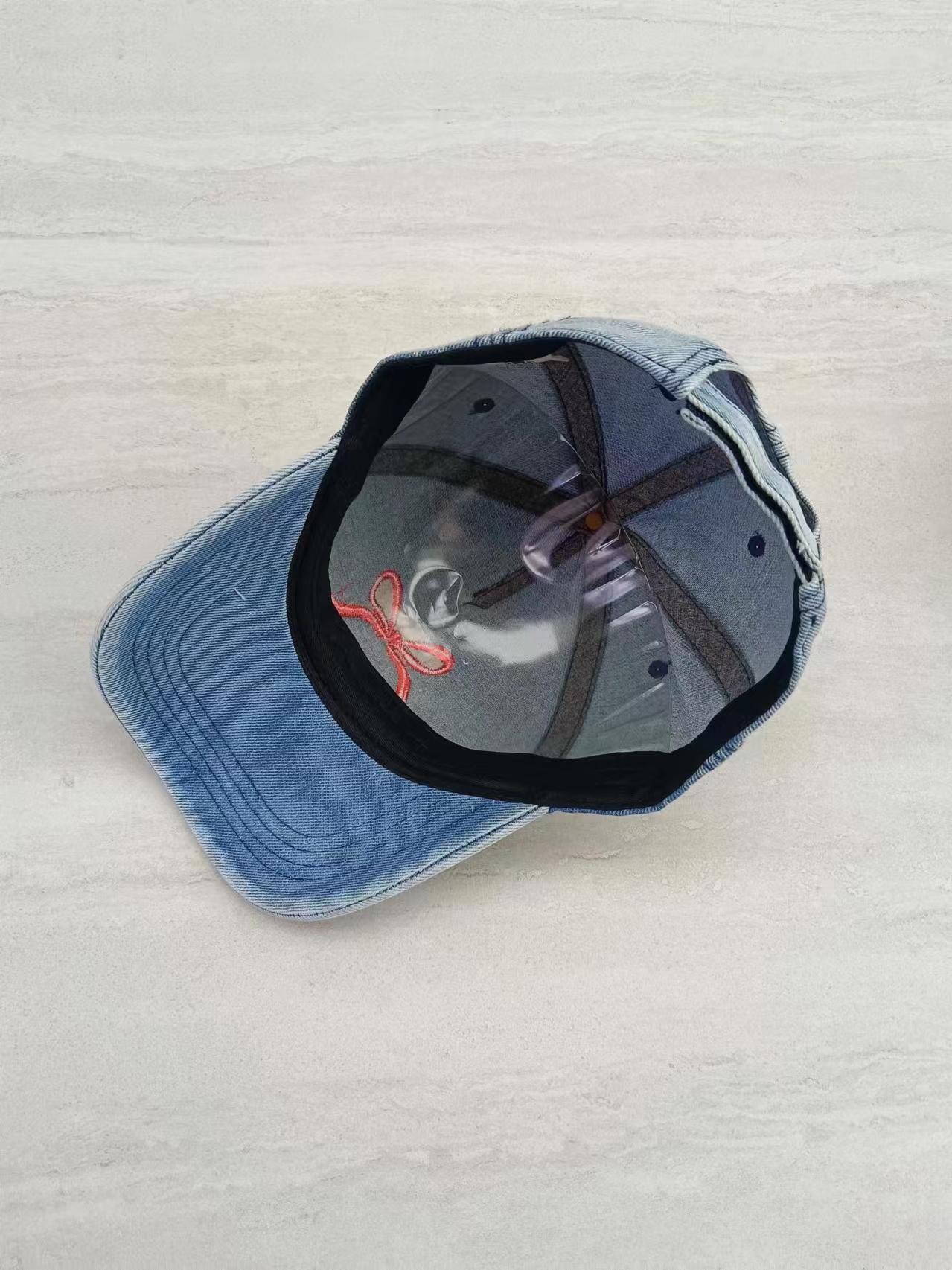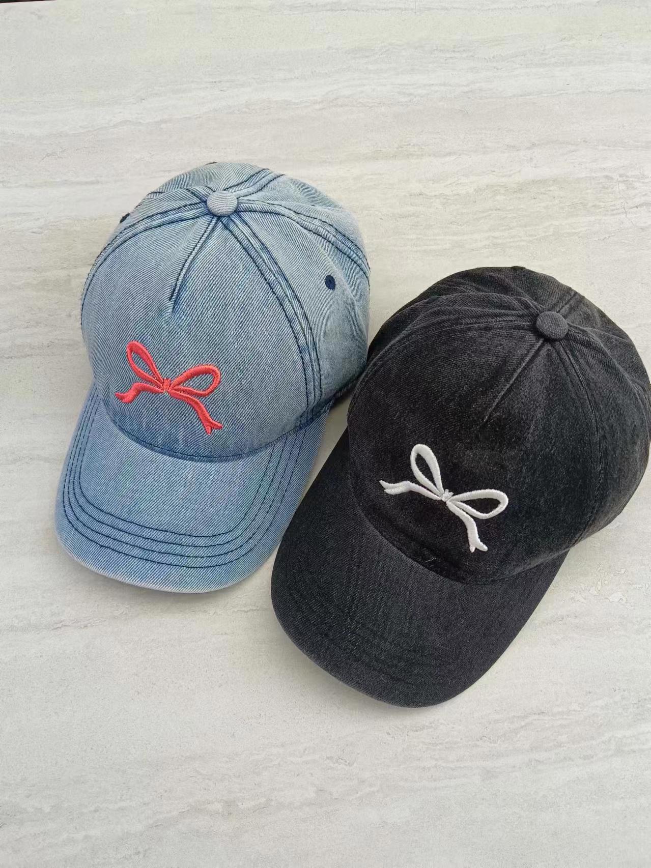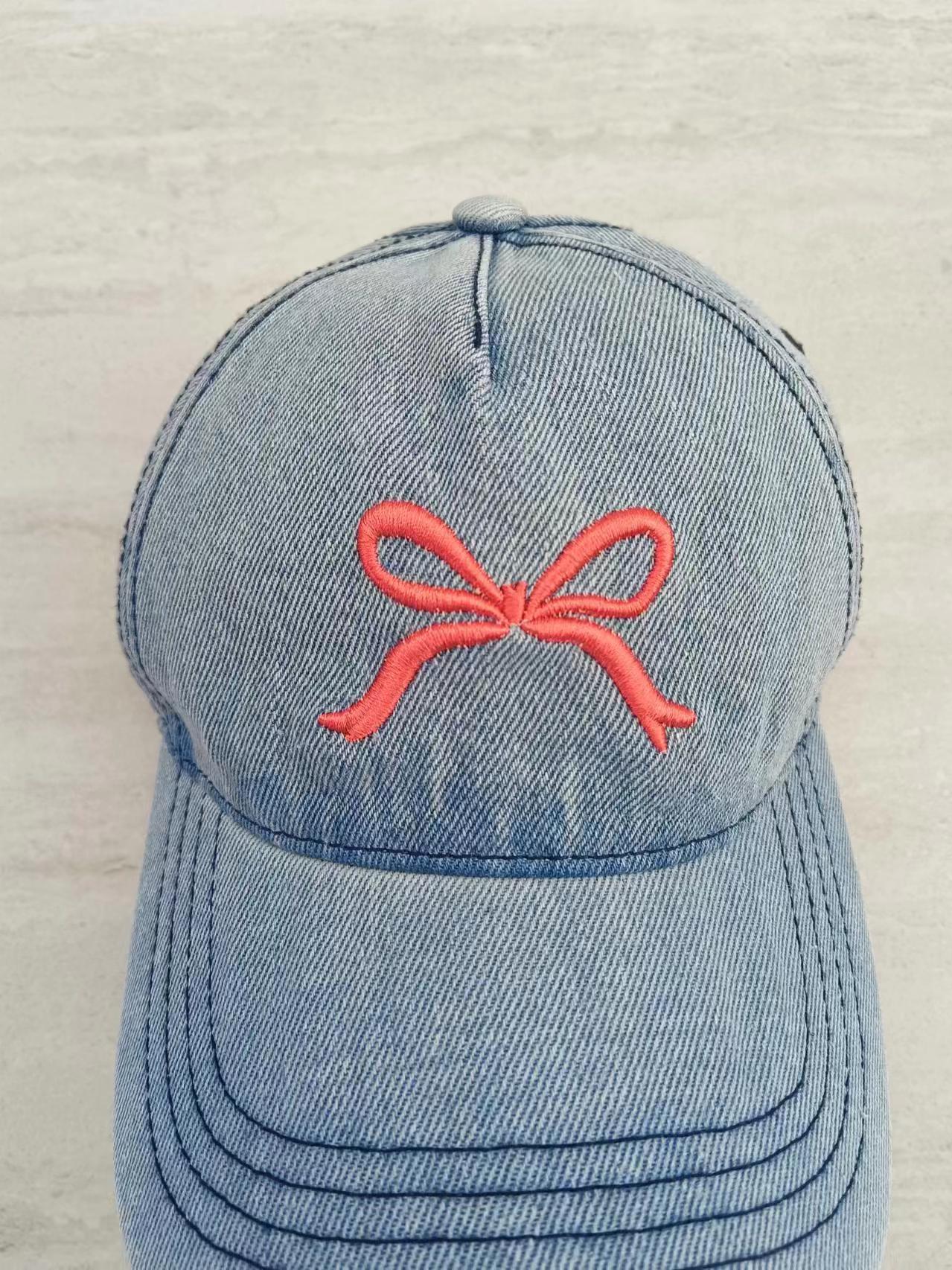 Gorra con visera bordada con lazo estilo ins coreano para mujer 2024 primavera nuevo sombrero de mezclilla que hace que la cara se vea pequeña gorra de béisbol moda