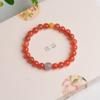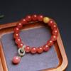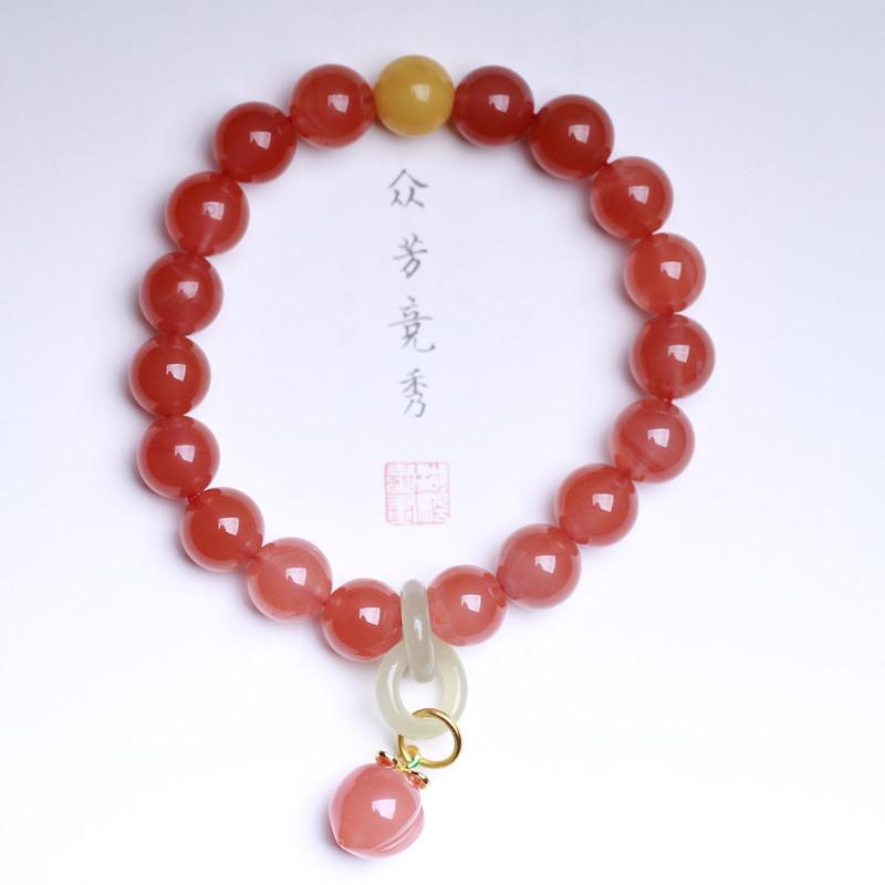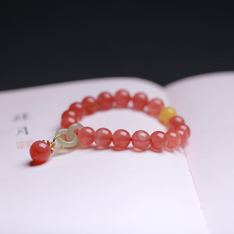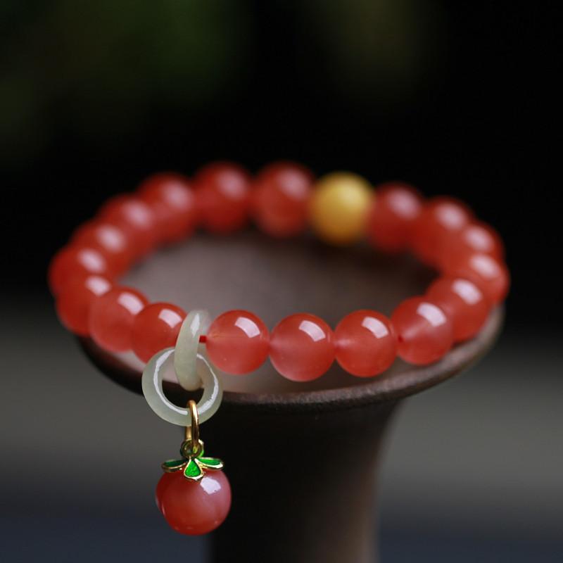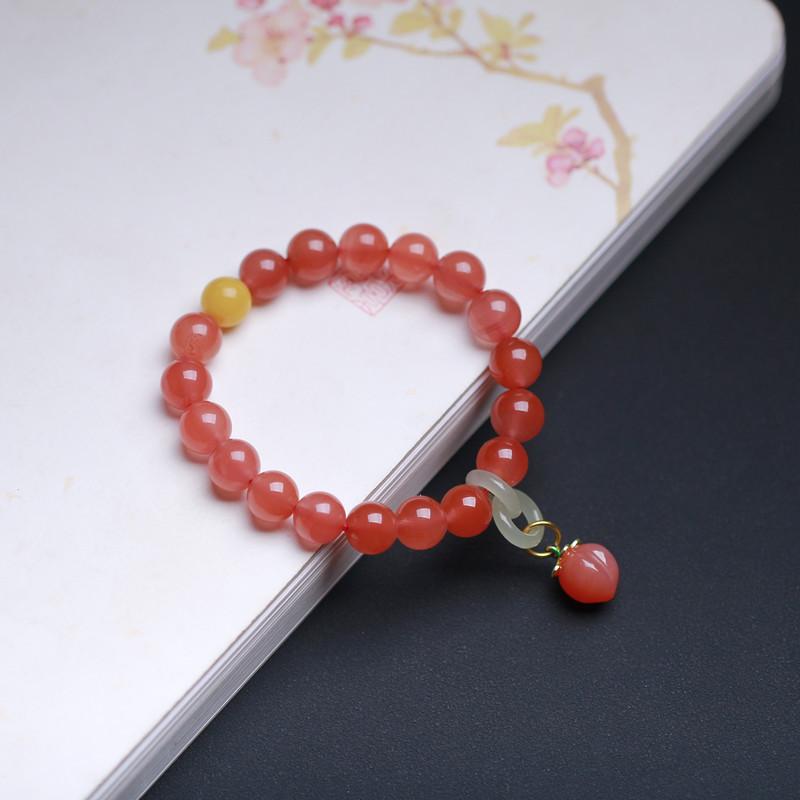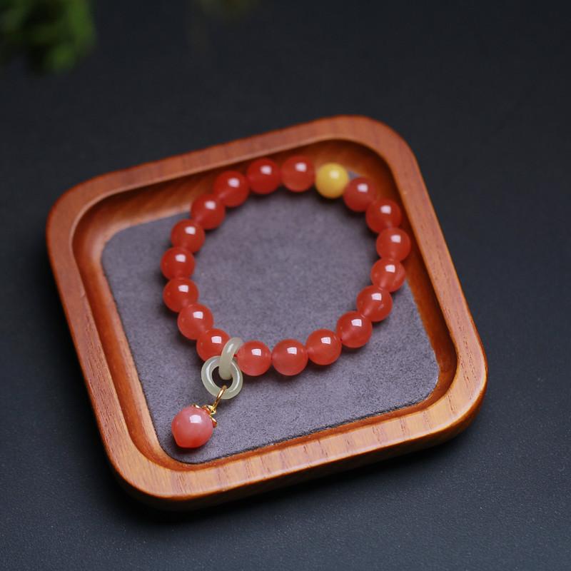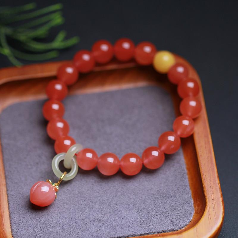Pulsera Roja del Sur Natural con Jade Hetian Anillo de Agua Soleado Cuentas Redondas de Cera de Abeja Enlazadas Melocotón Rojo del Sur para Niños y Niñas