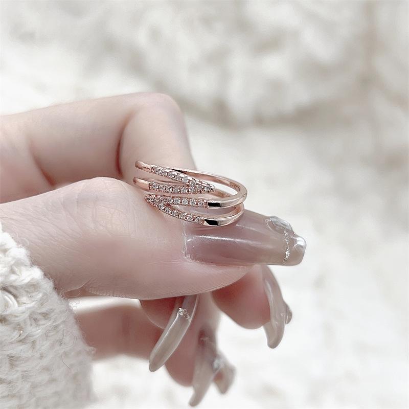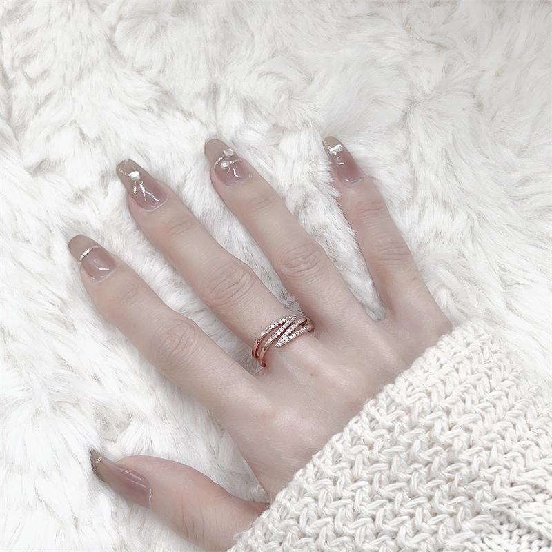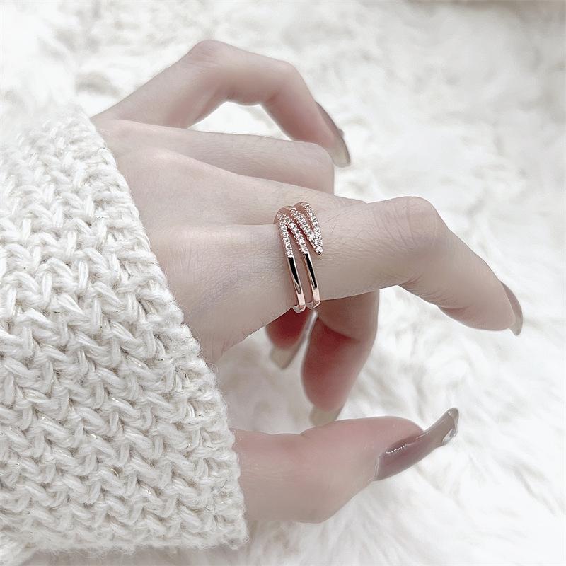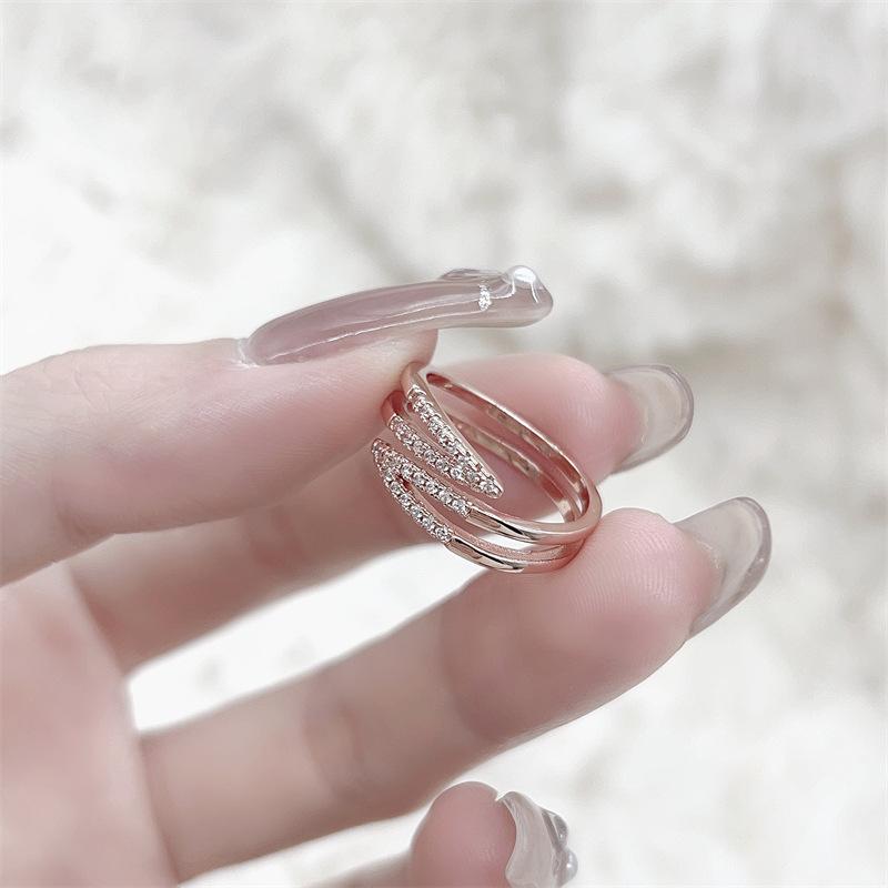 Anillo cruzado de lujo japonés y coreano, elegante anillo de comida para mujer, anillo de cola de viento frío de nicho, joyería de mano abierta al por mayor
