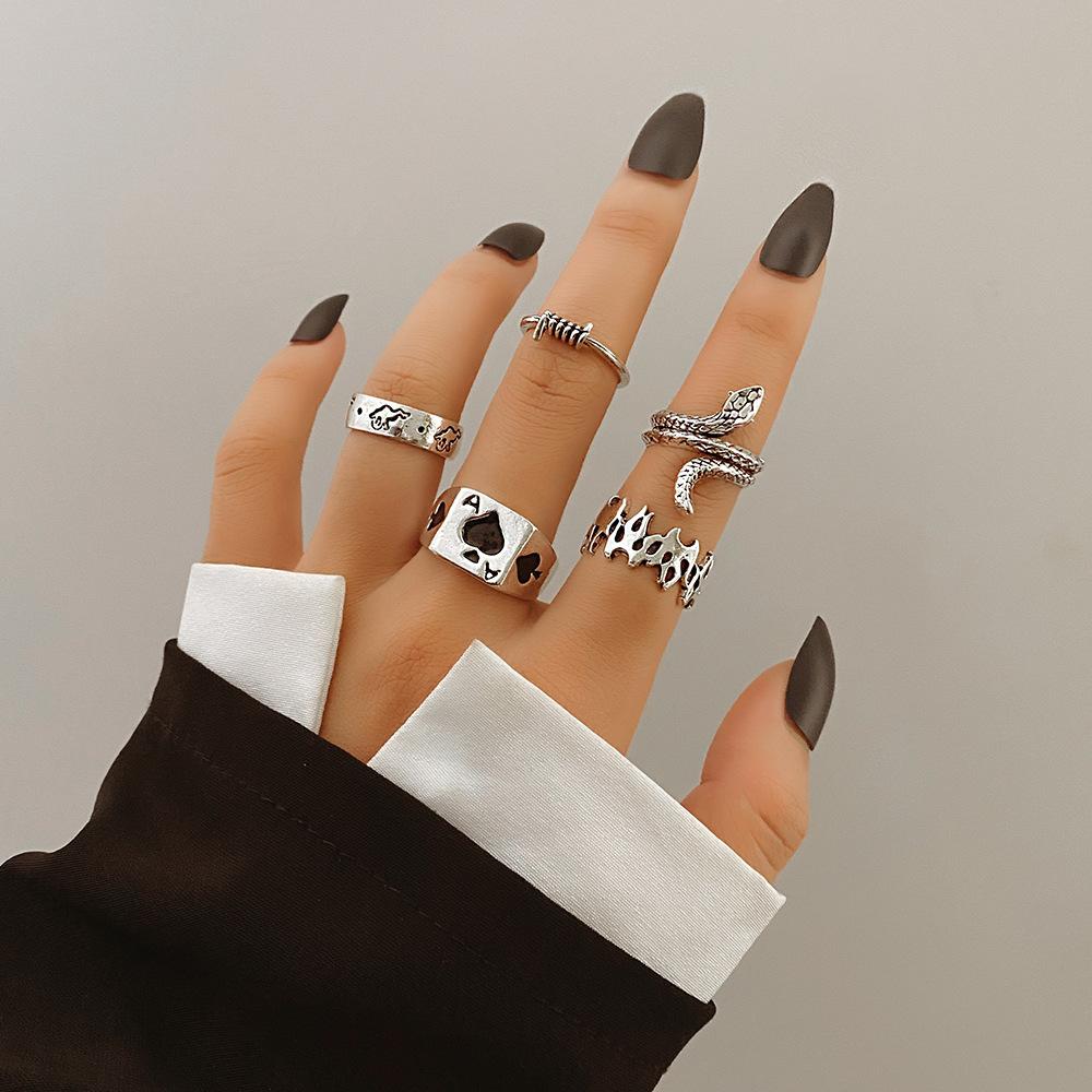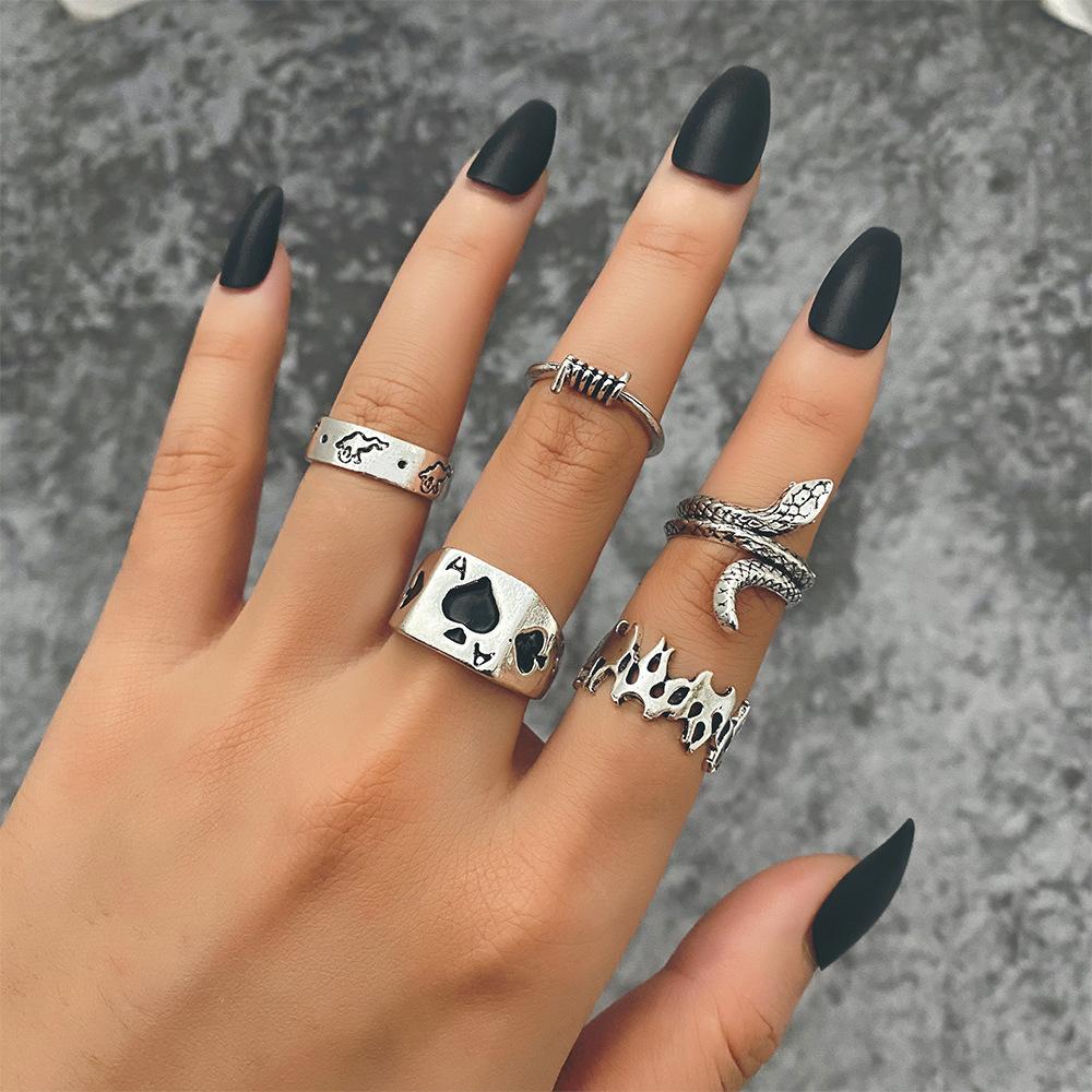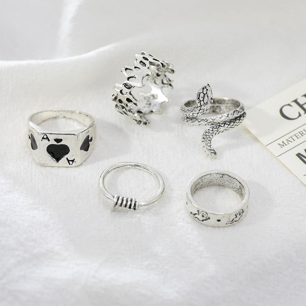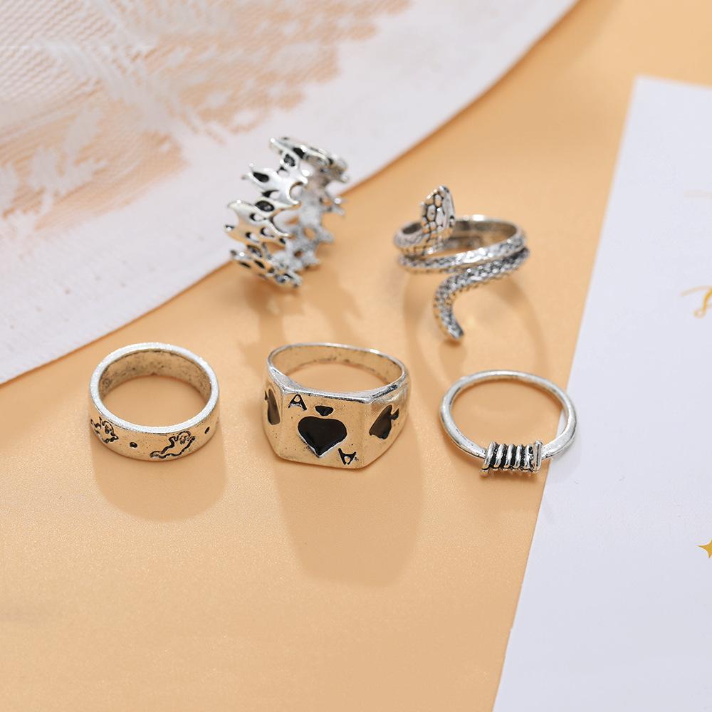 Europa y Estados Unidos transfronterizo para el nuevo anillo de póquer fantasma retro combinación de 5 piezas anillo de serpiente anillo sinuoso