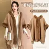 Abrigo de lana con cuello de piel y bola de piel para mujer, estilo cálido, para otoño e invierno, nueva bufanda, chal, capa