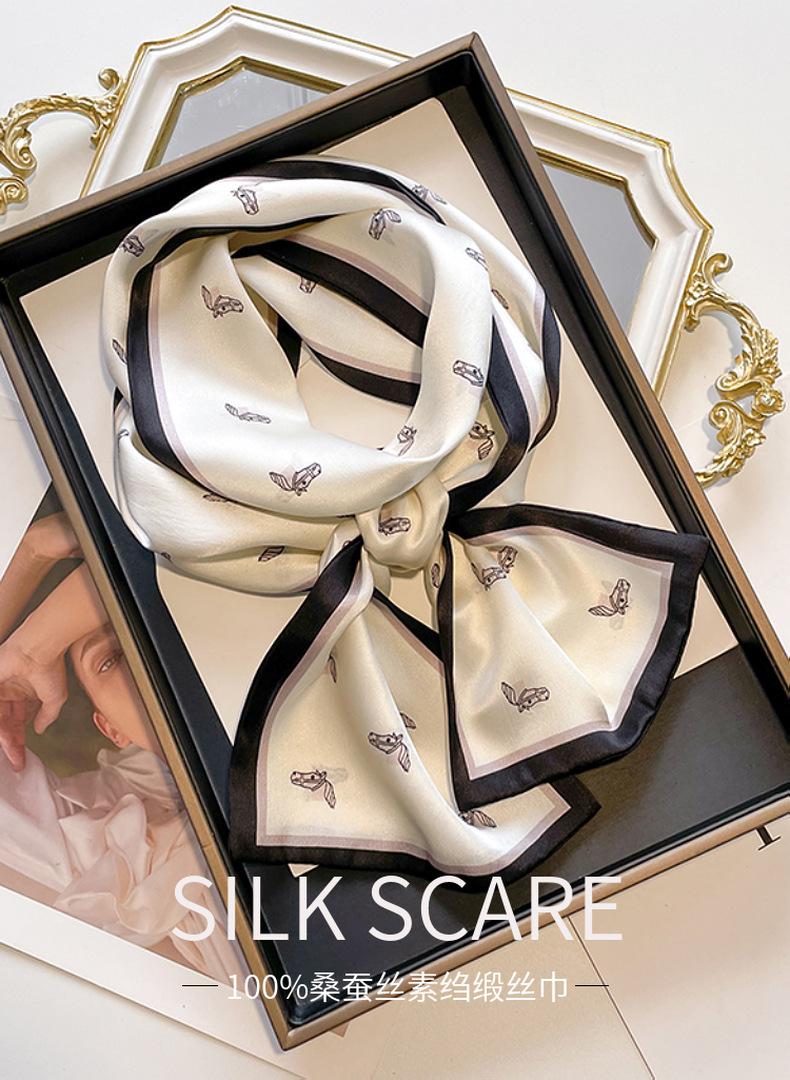 Bufanda de seda para mujer, bufanda larga de seda morera, primavera y otoño, elegante, combinable con todo, fina, para camisas, protección para el cuello.