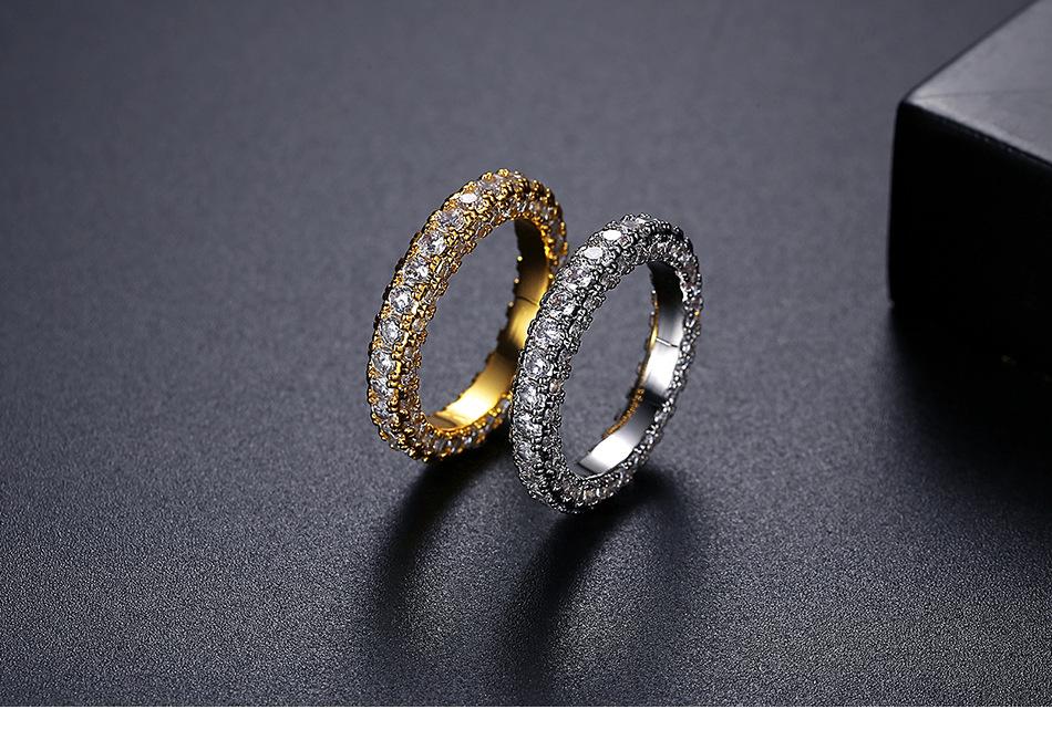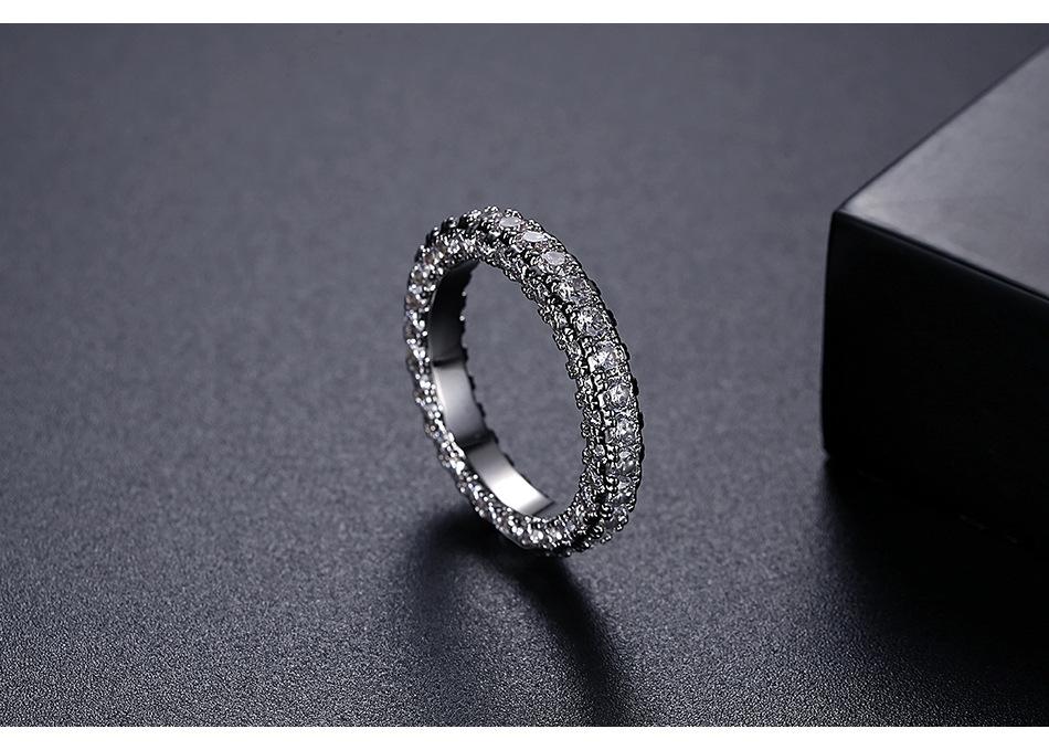 Anillo Jinse de circonita micro incrustada para mujer, moda de lujo ligero, anillo de diamantes completo, latón, diseño de nicho ins, joyería de diamantes de una sola fila