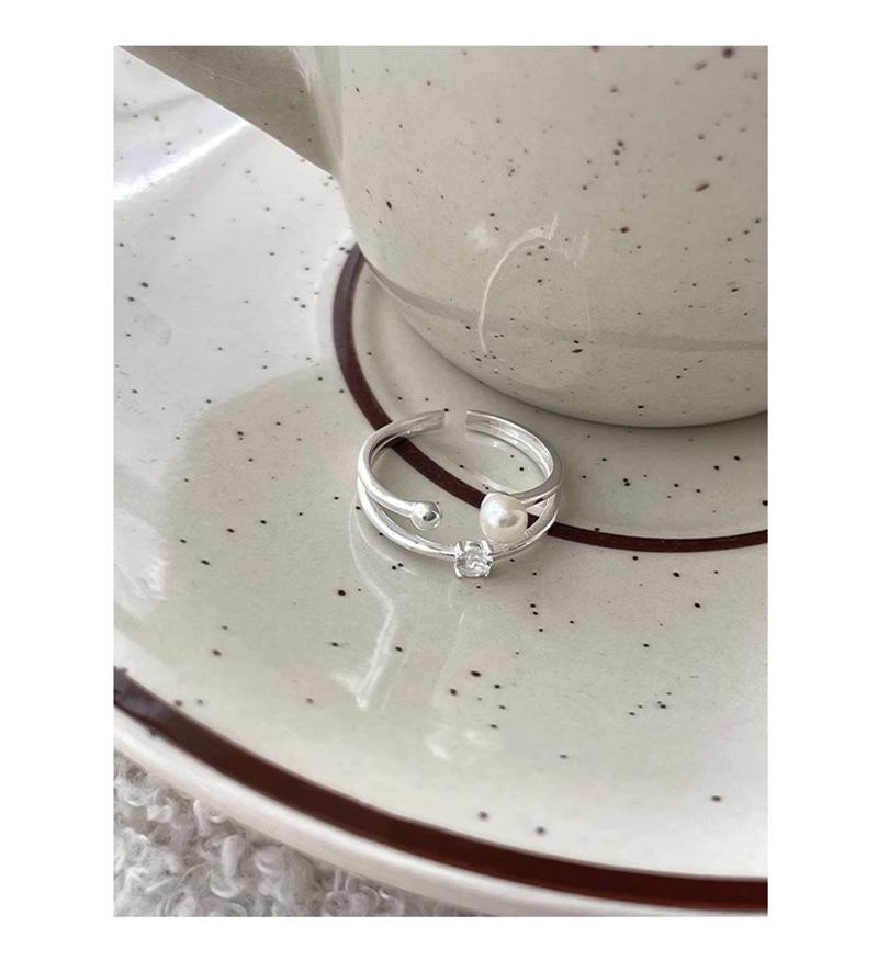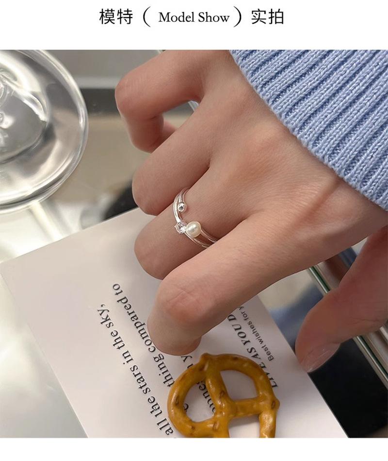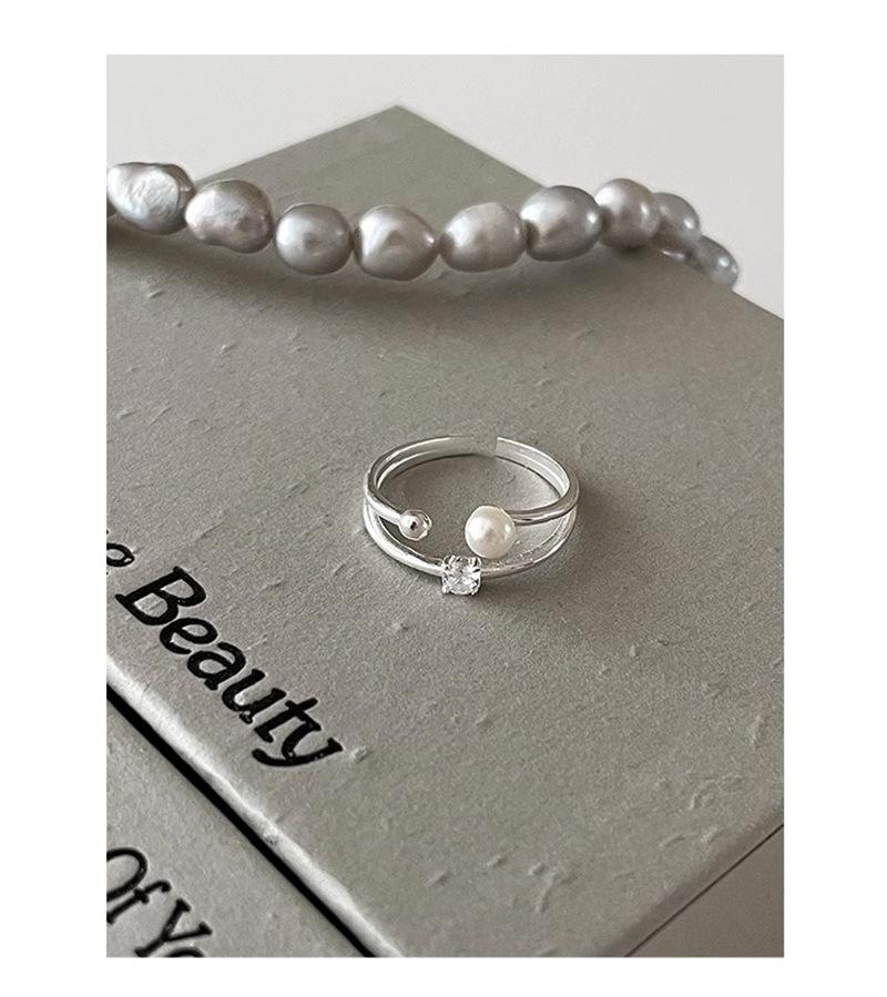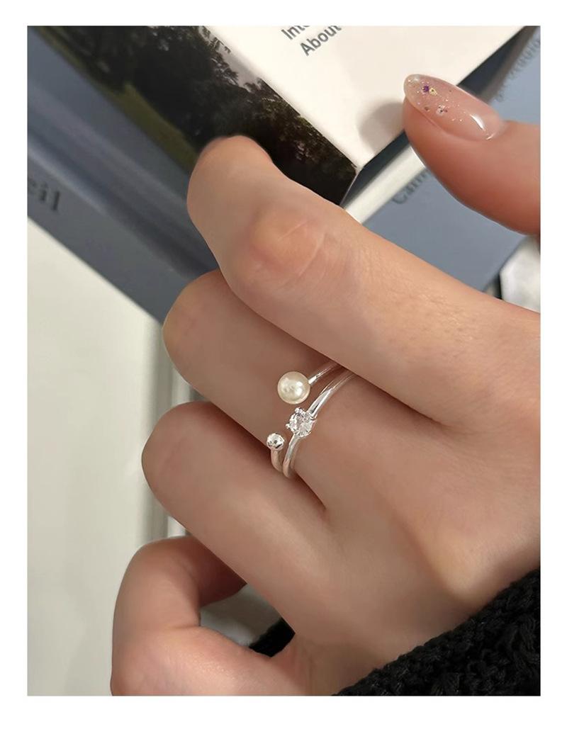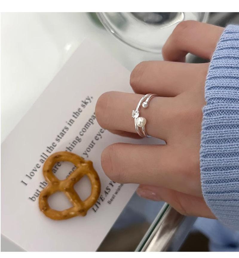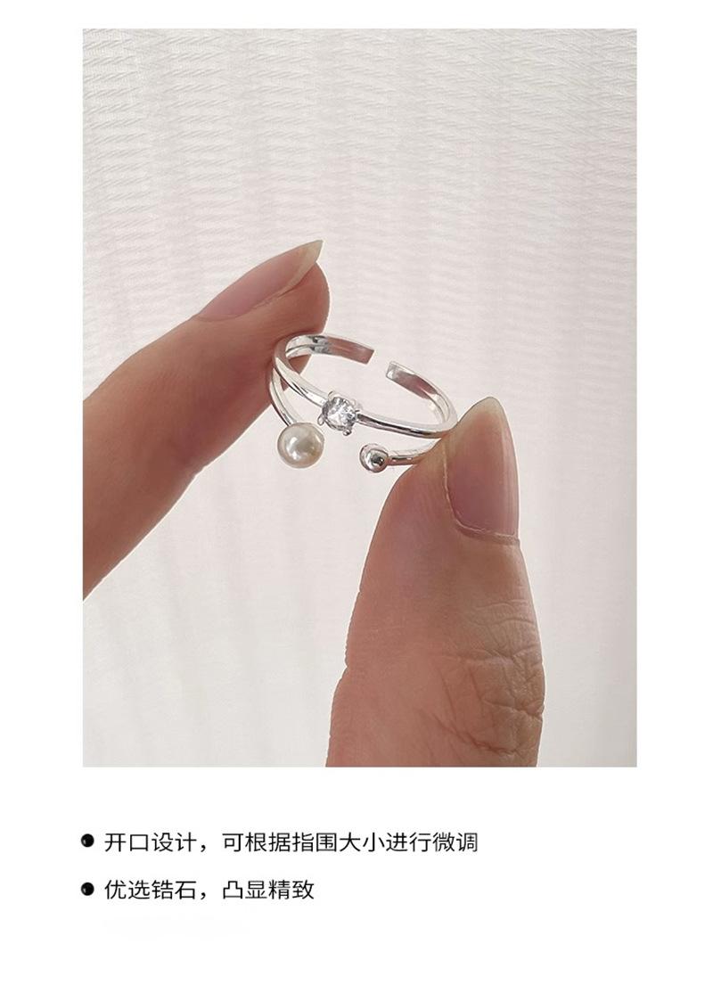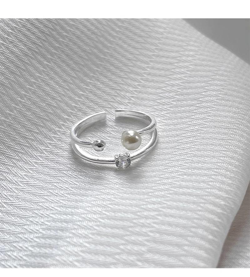 Anillo de Perla de Imitación de Zircón de Doble Capa para Mujer, Diseño Nicho de Lujo Ligero, Diamante Brillante, Estilo Commuter, Anillo Abierto Ajustable para el Dedo Índice