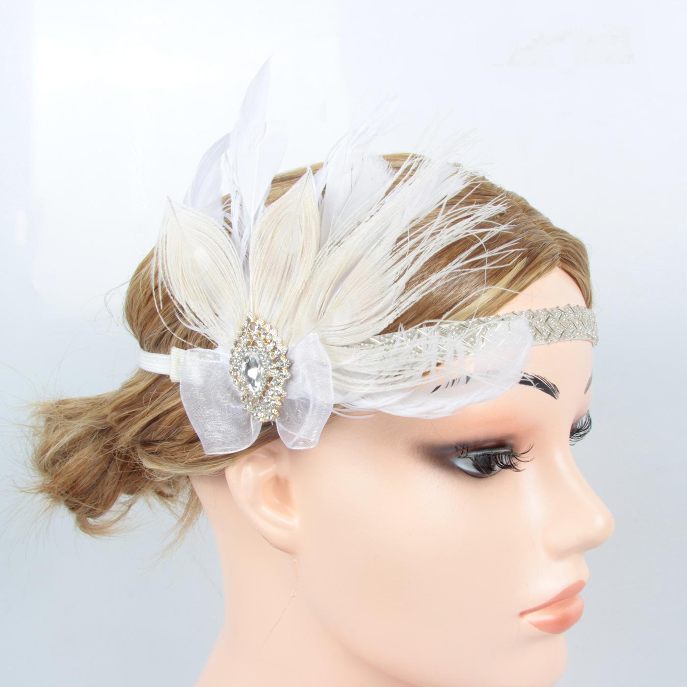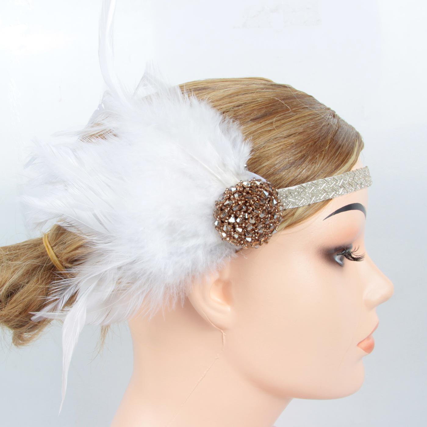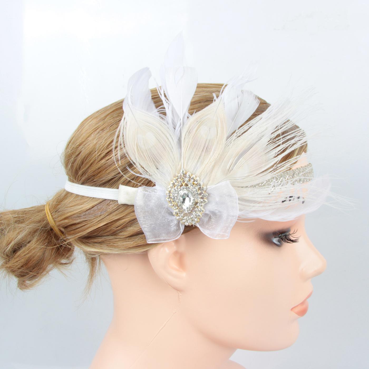 Diadema de plumas, tocado de novia, diadema estilo Gatsby. Las plumas son largas y cortas, ¡no tomes fotos si te importa!