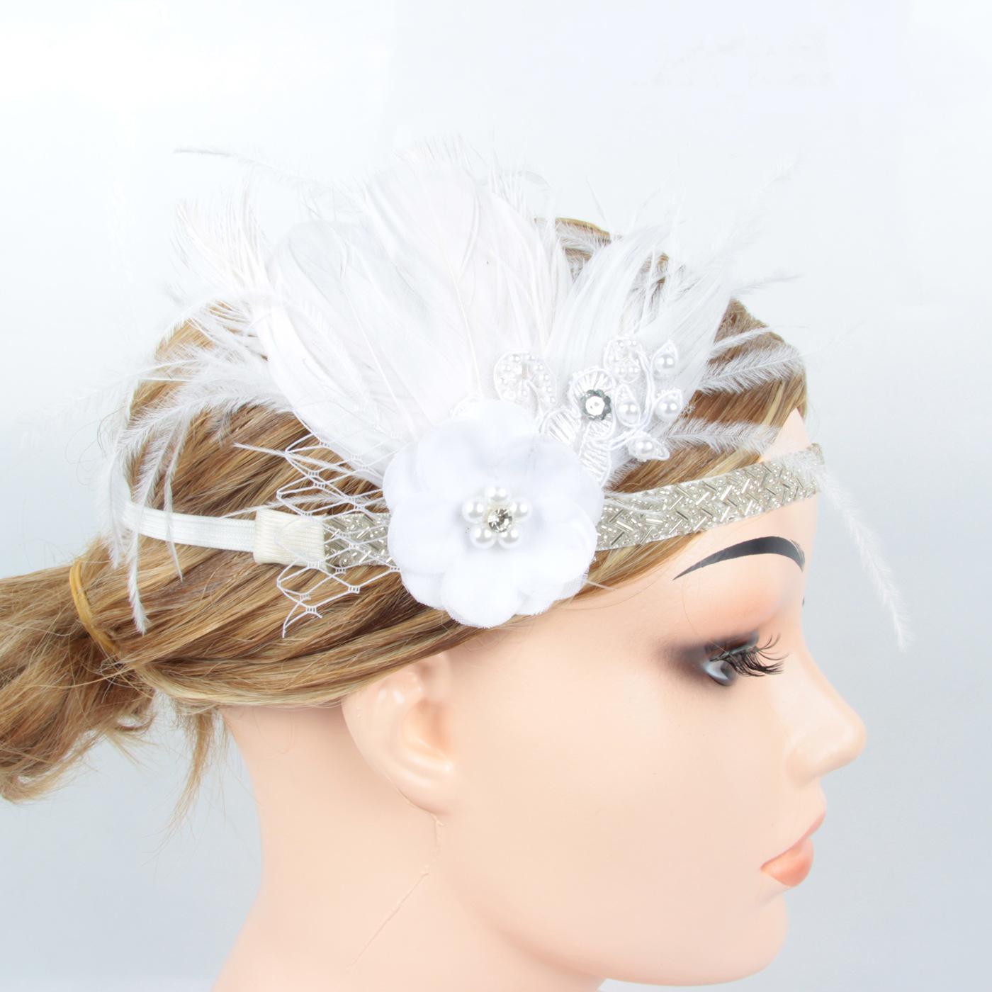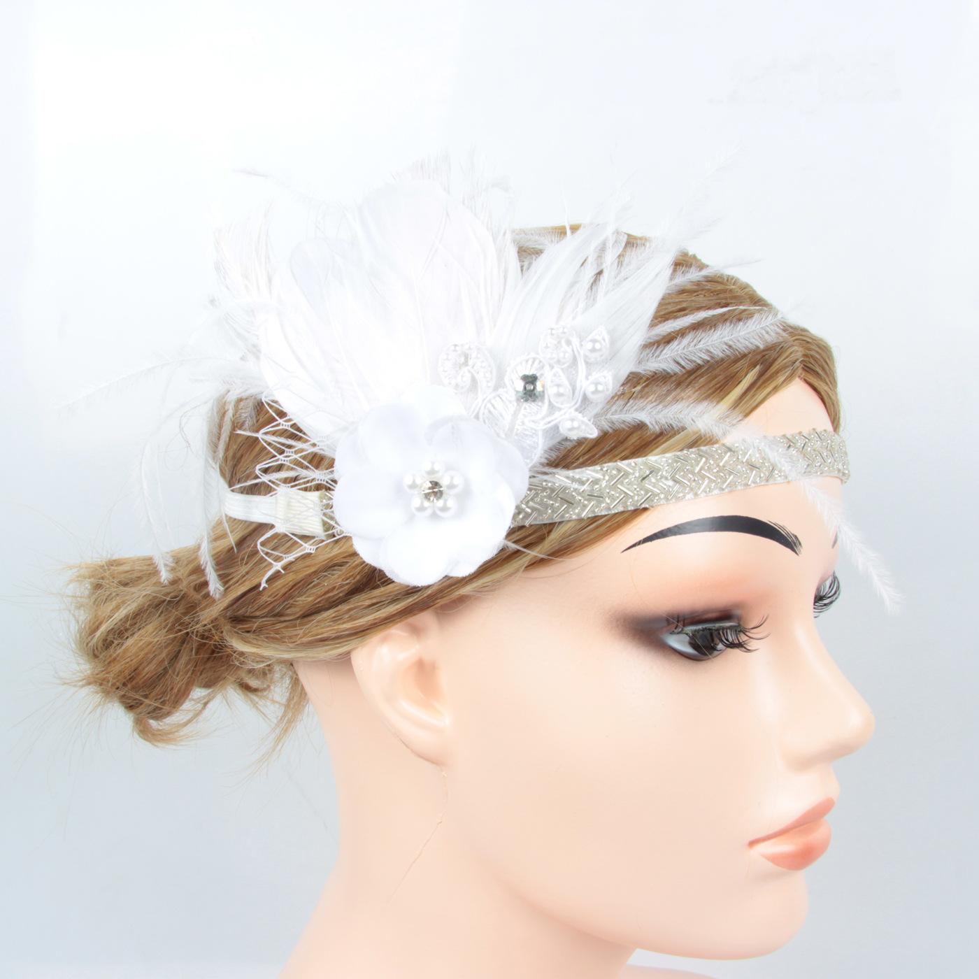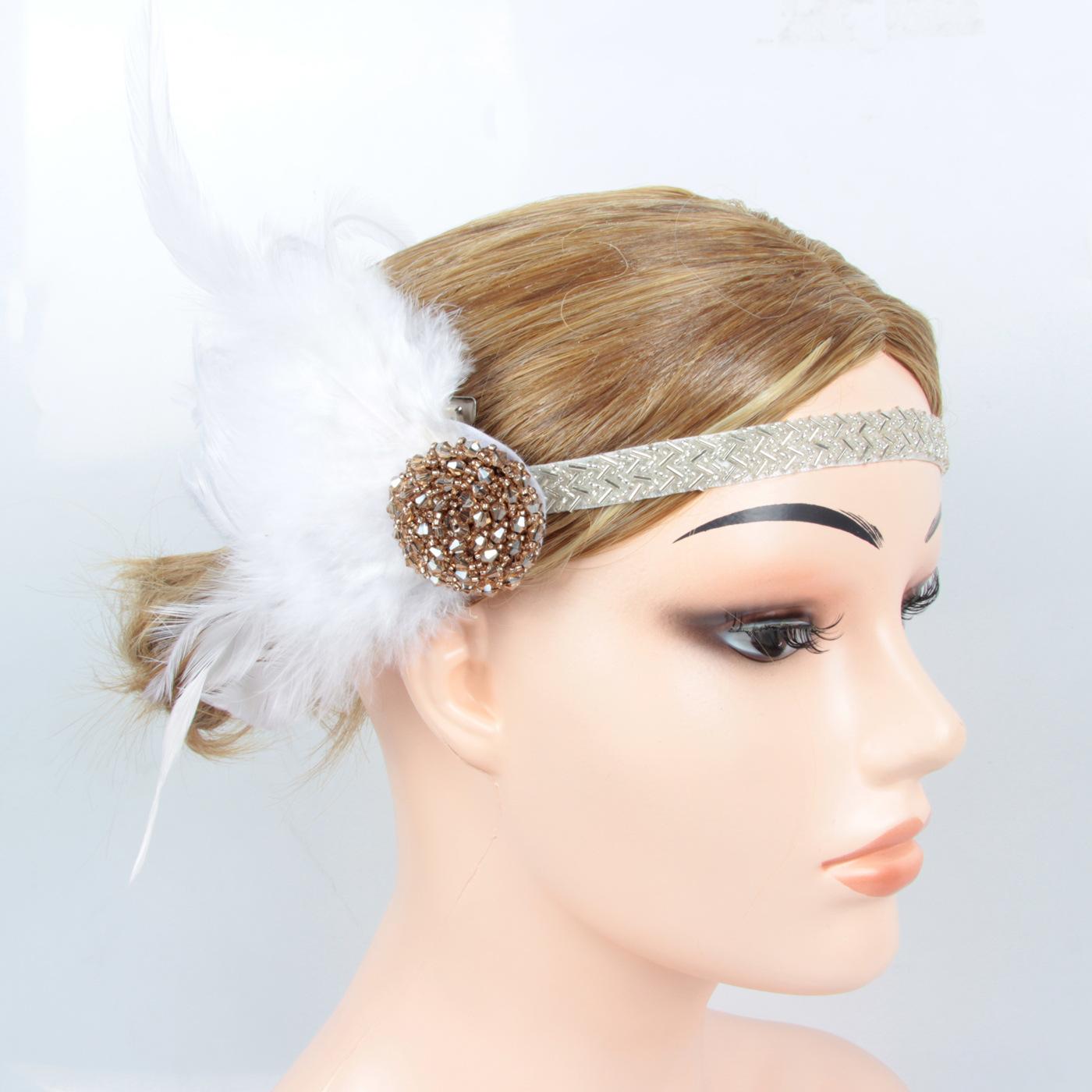 Diadema de plumas, tocado de novia, diadema estilo Gatsby. Las plumas son largas y cortas, ¡no tomes fotos si te importa!