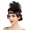 Tocado de plumas negras estilo europeo y americano de los años 20, tocado de plumas para banquete de baile de Gatsby