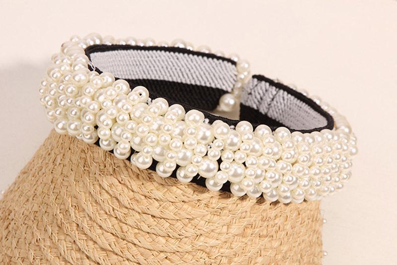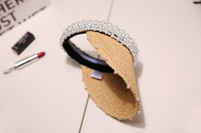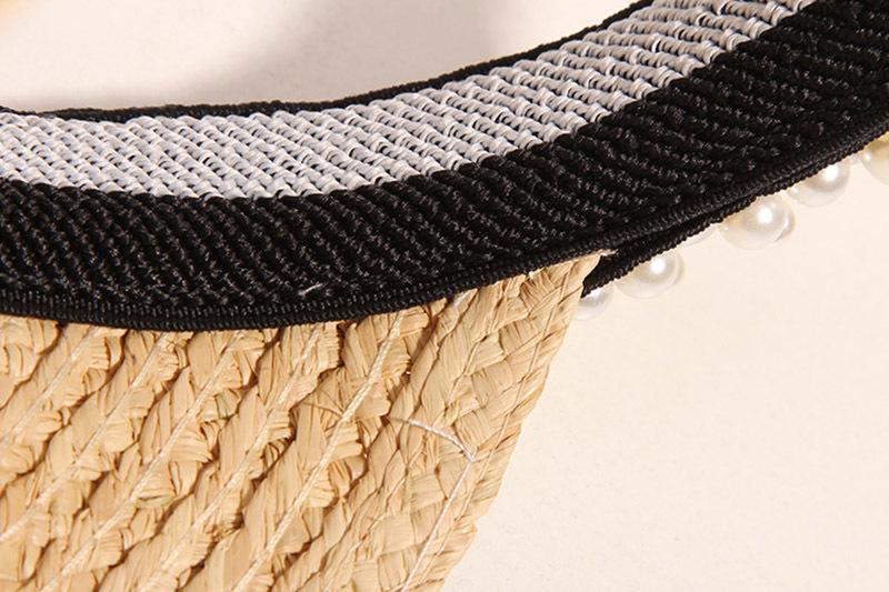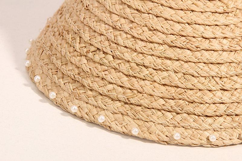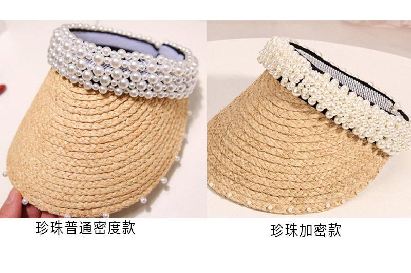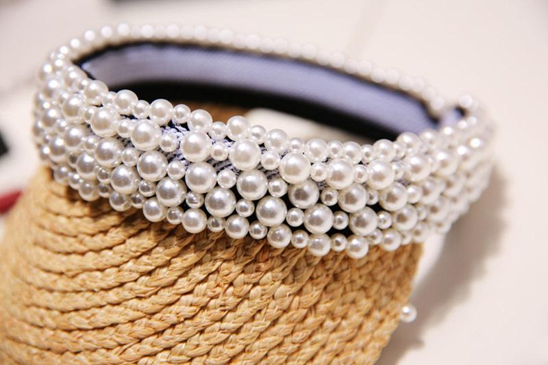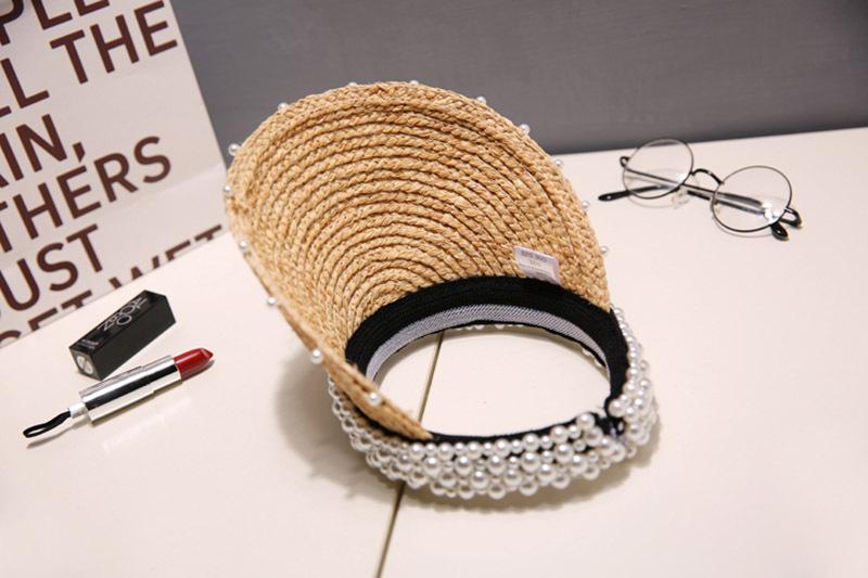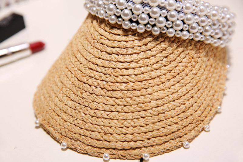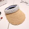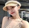 Sombrero Visera de Rafia con Perlas Hecho a Mano para Mujer, Sombrero para el Sol, Gorra de Béisbol, Sombrero de Paja Coreano Cubre Rostro con Ala Ancha