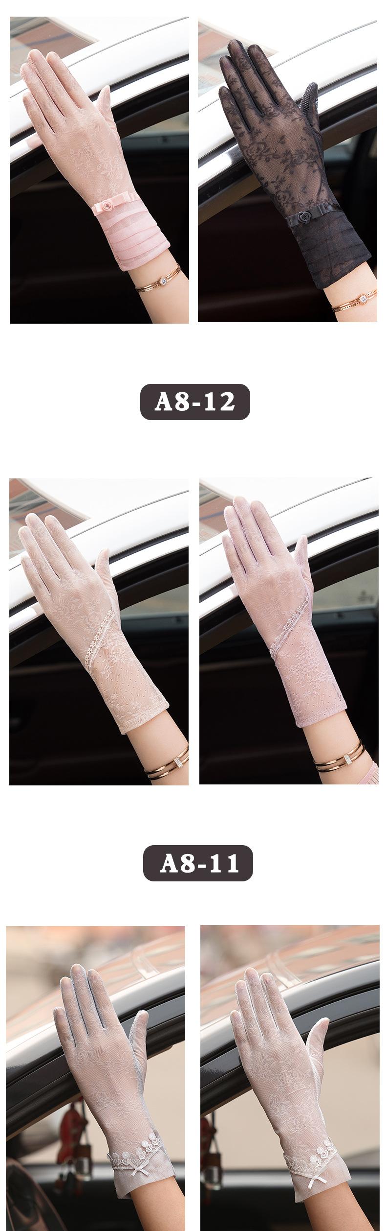 Guantes de protección solar para mujer en primavera y verano, guantes de lazo de encaje fino para ciclismo al aire libre, guantes de seda helada con protección solar.