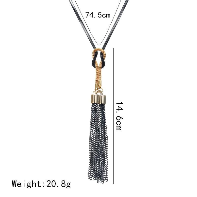 Versión coreana del nuevo collar de nudo de borla de moda, cadena de suéter larga, ropa de Joker, fabricantes de joyas para mujer al por mayor