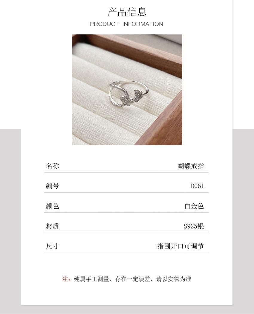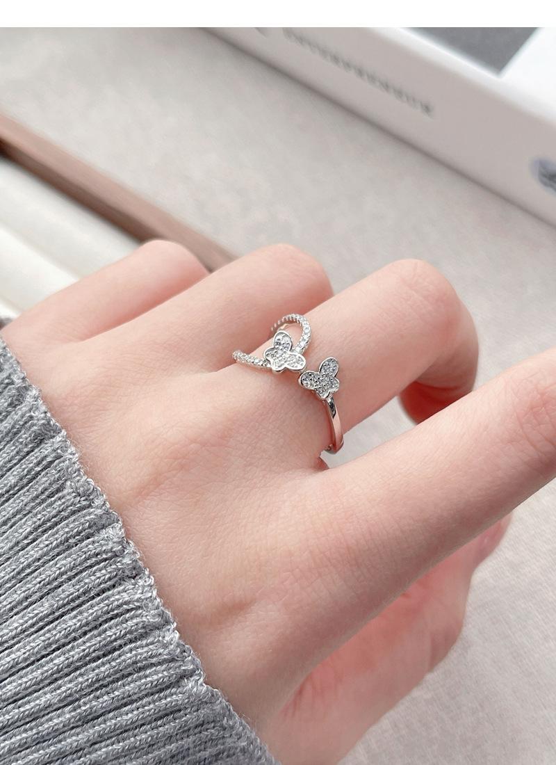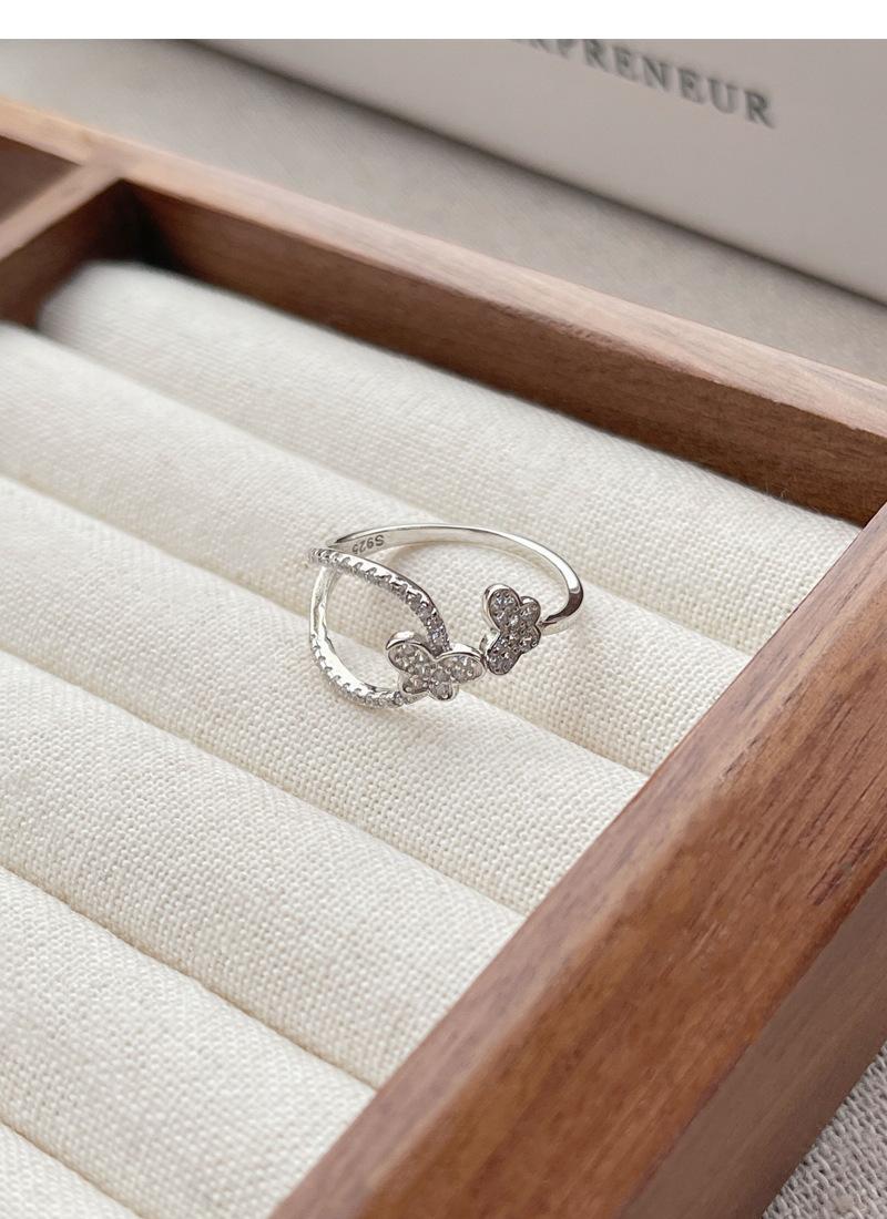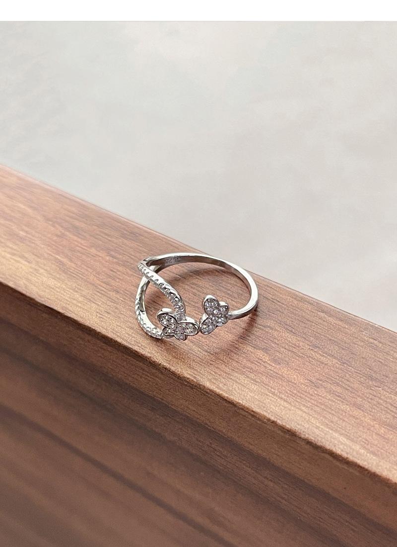 Anillo de mariposa de plata esterlina S925 para mujer, anillo abierto personalizado simple, ligero, de lujo, con diseño de nicho, anillo para dedo índice de alta calidad.