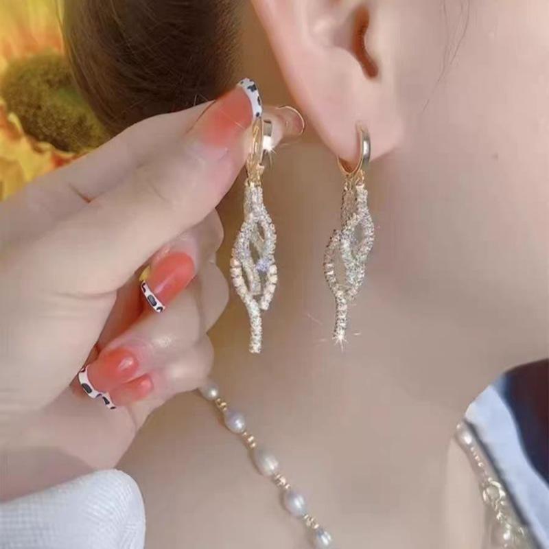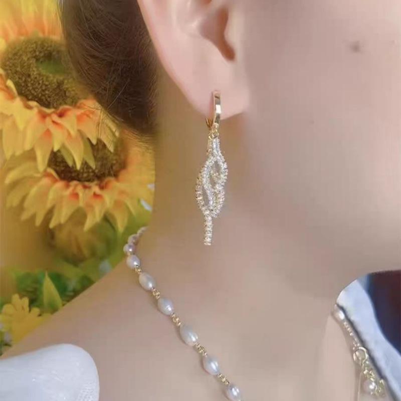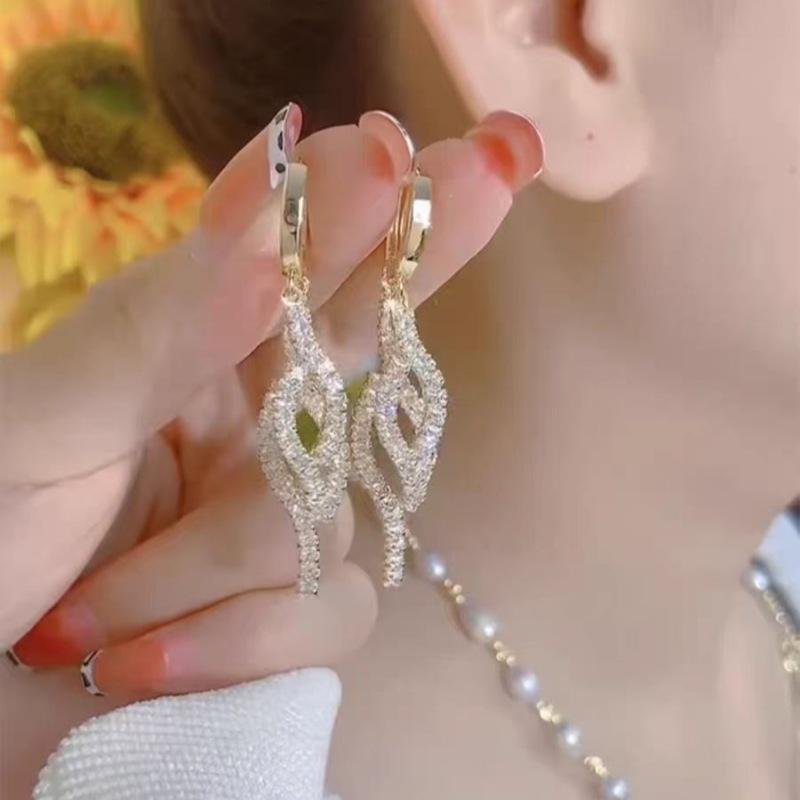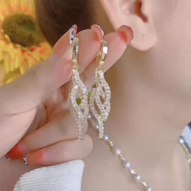 Pendientes de lujo ligeros de alta gama con borlas de diamantes, hebillas para las orejas, circonitas brillantes, nuevos y elegantes, para mujer.