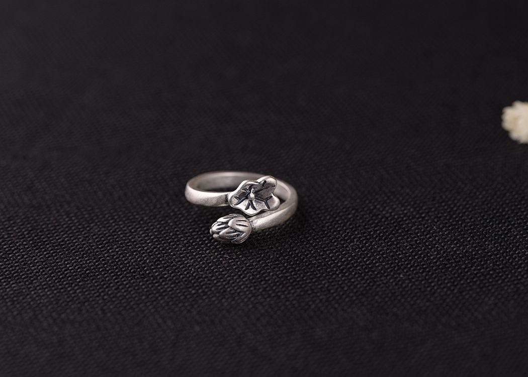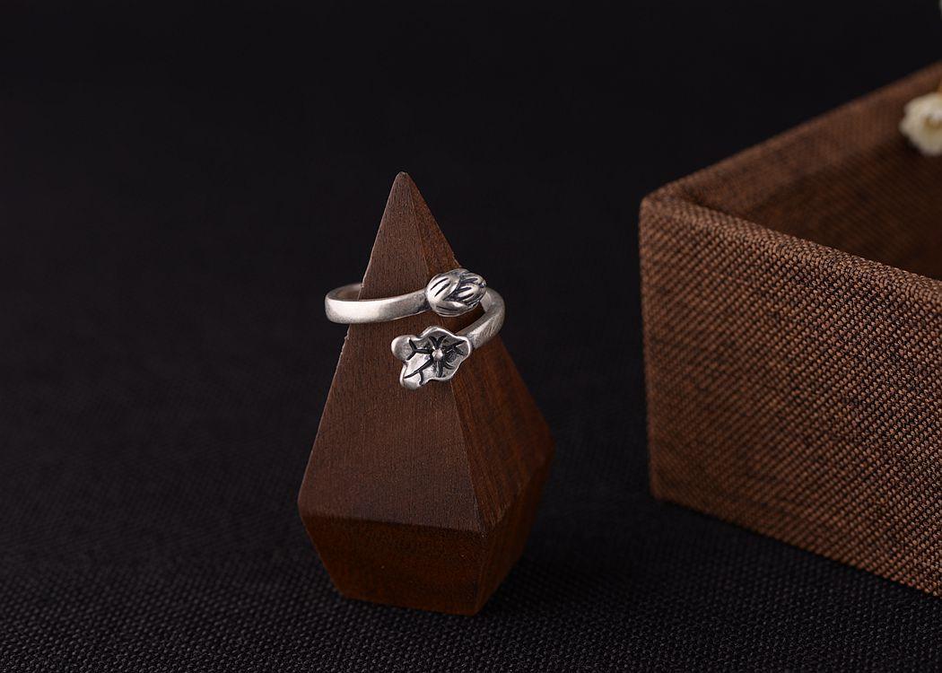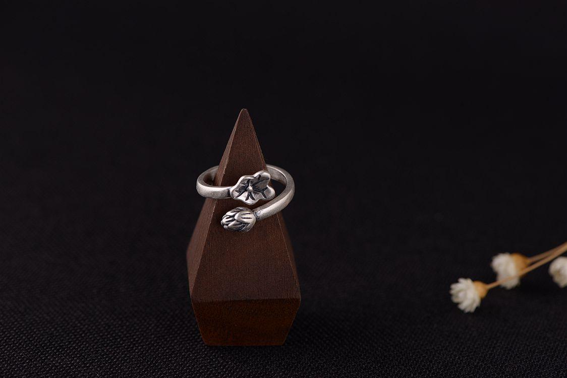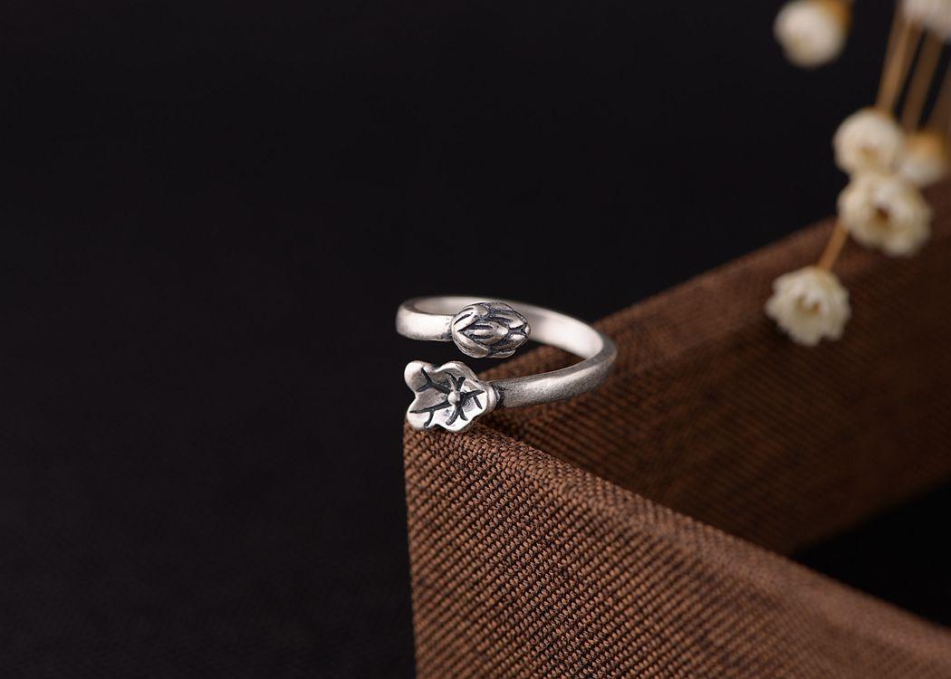 Anillo de plata tailandesa vintage de plata S925 con diseño de ciervo dorado y hoja de loto para mujer, venta al por mayor
