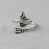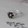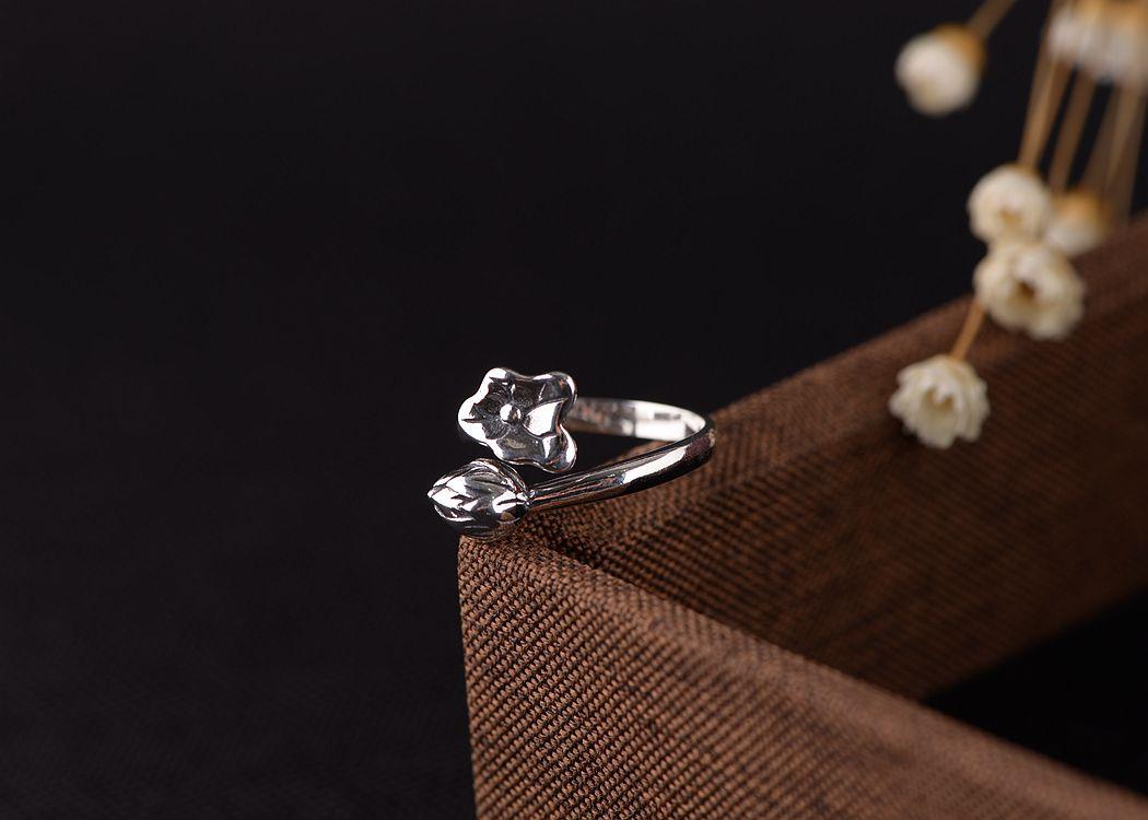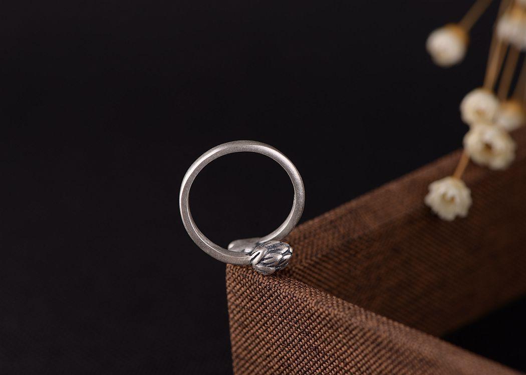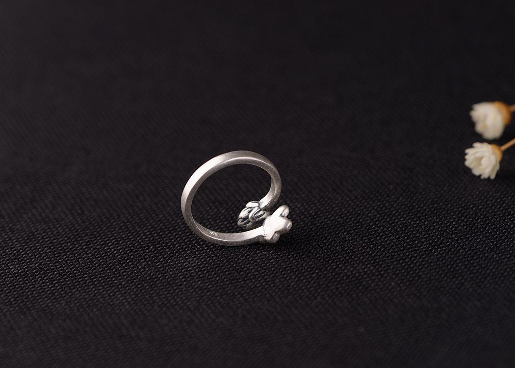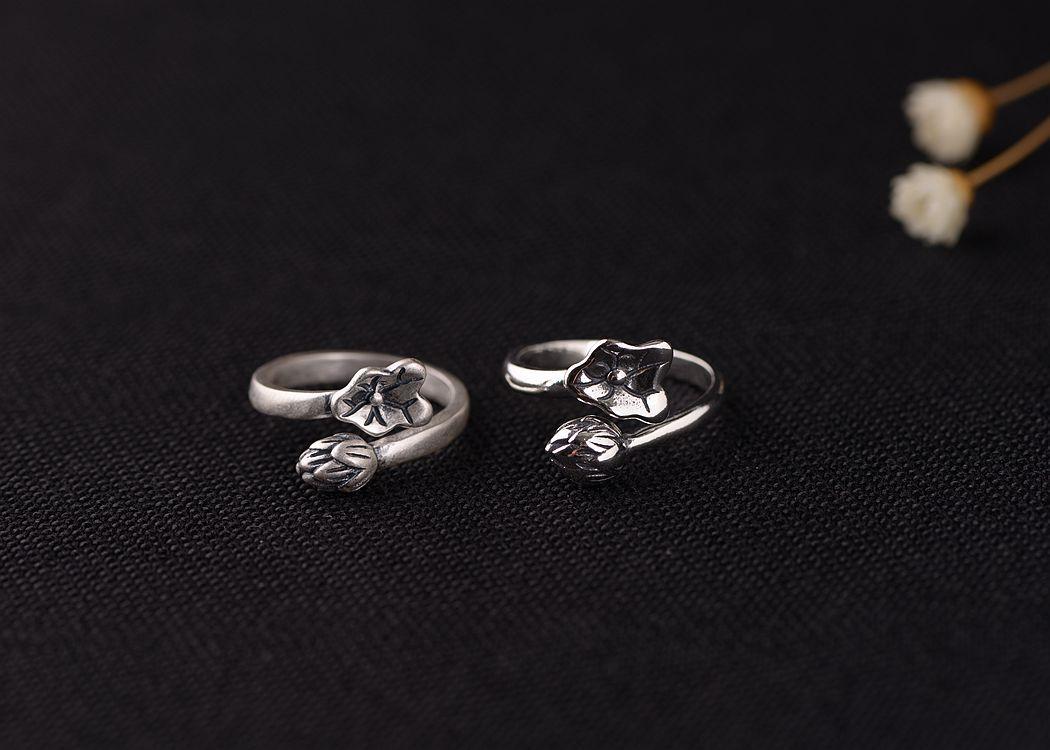 Anillo de plata tailandesa vintage de plata S925 con diseño de ciervo dorado y hoja de loto para mujer, venta al por mayor