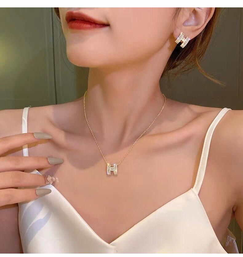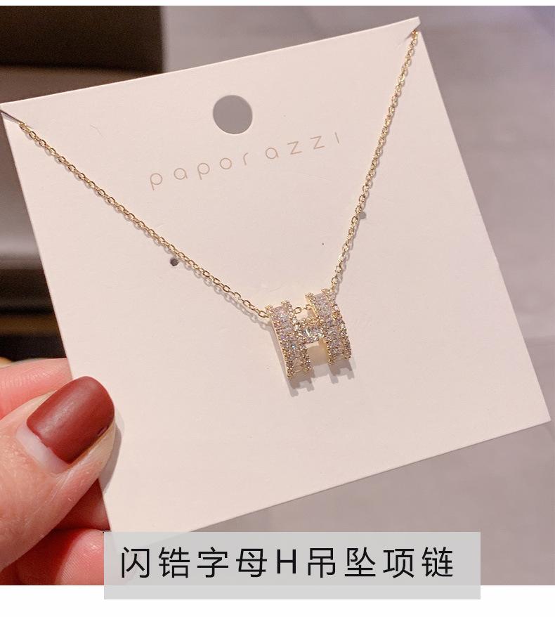 Nuevo Collar de Letras de Zirconia Accesorios para Mujer Versátil Nicho de Alta Gama Cadena Clavicular Otoño e Invierno Colgante Cadena de Cuello Joyería