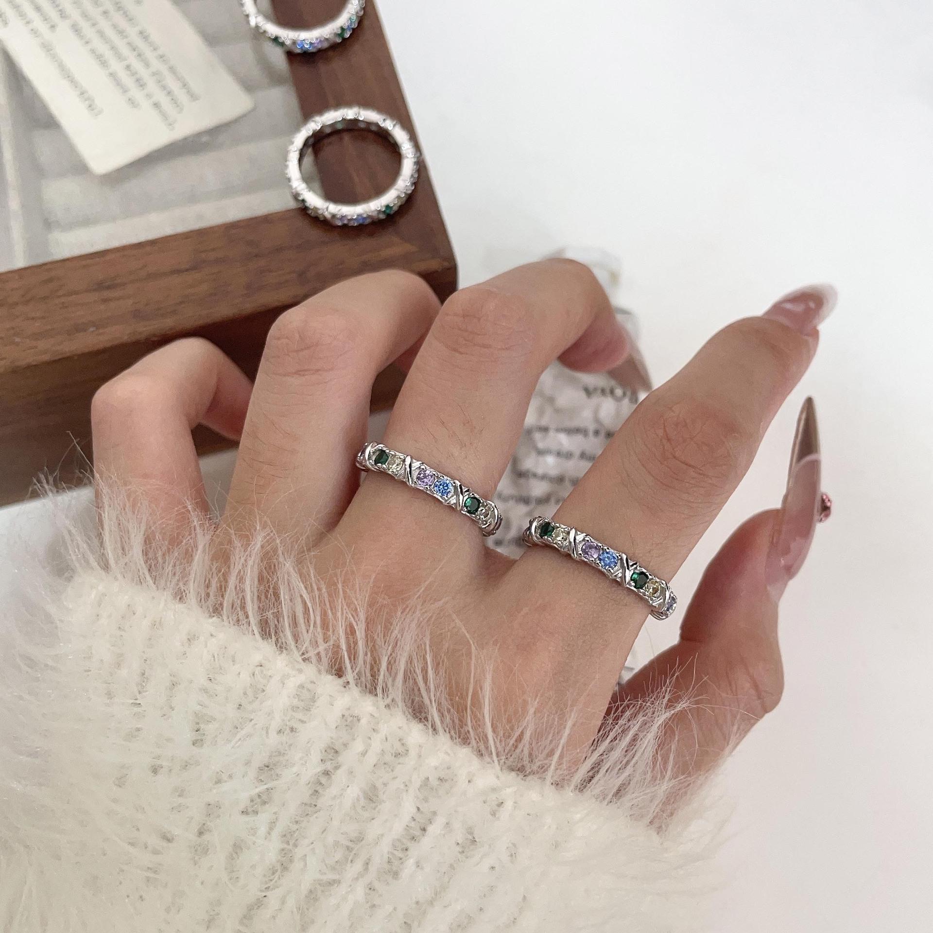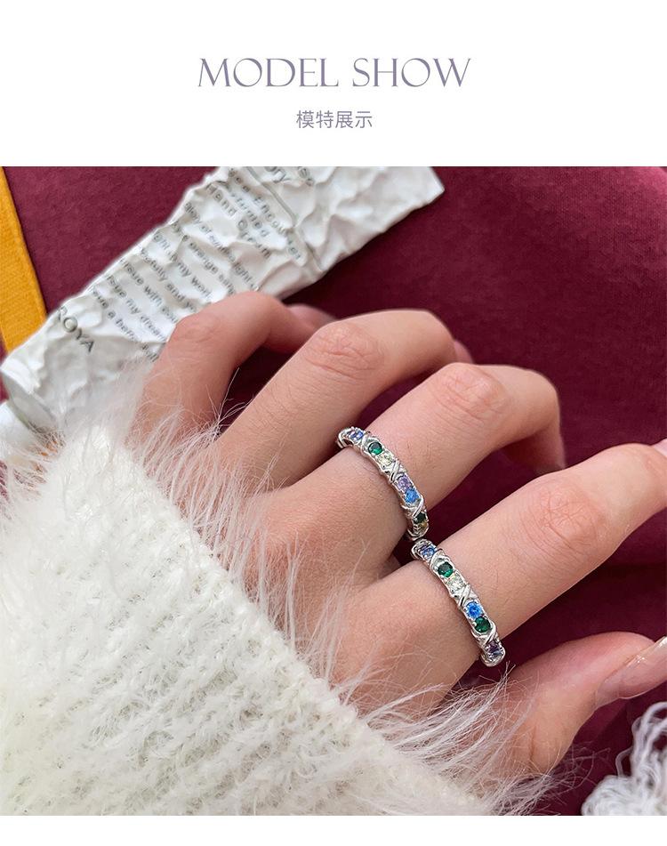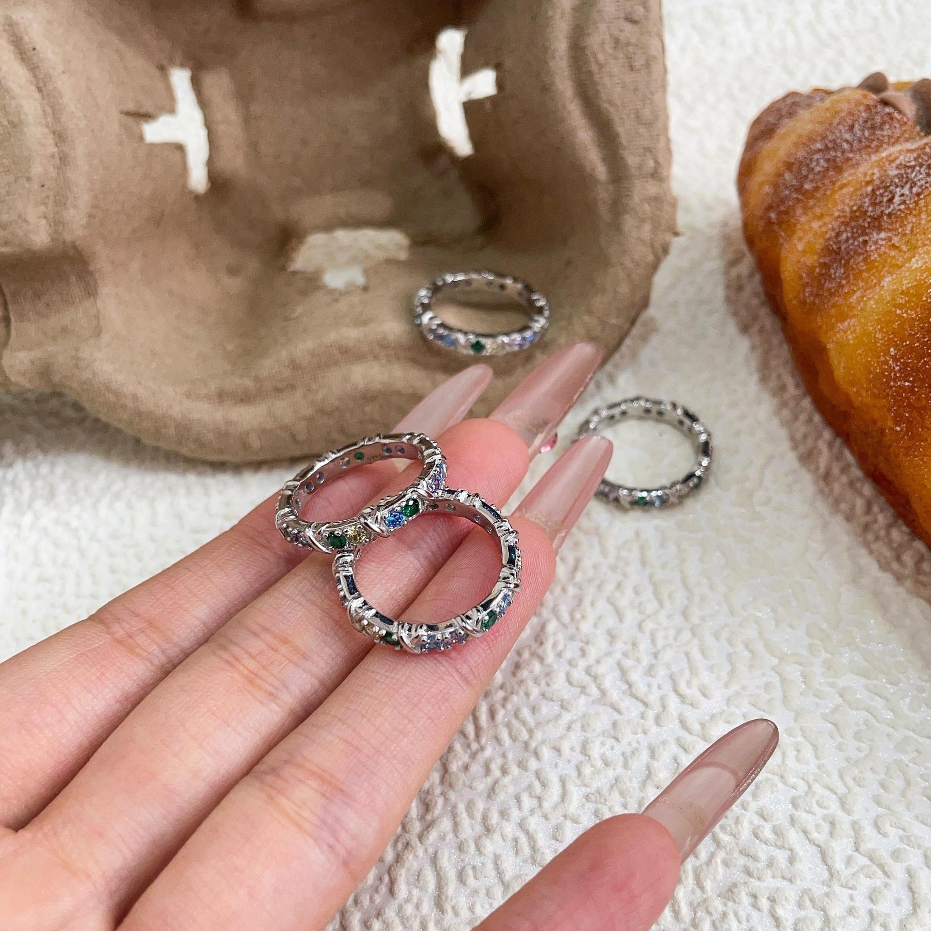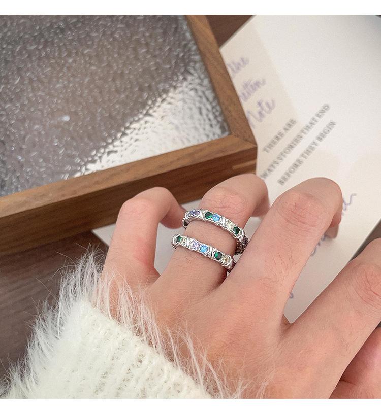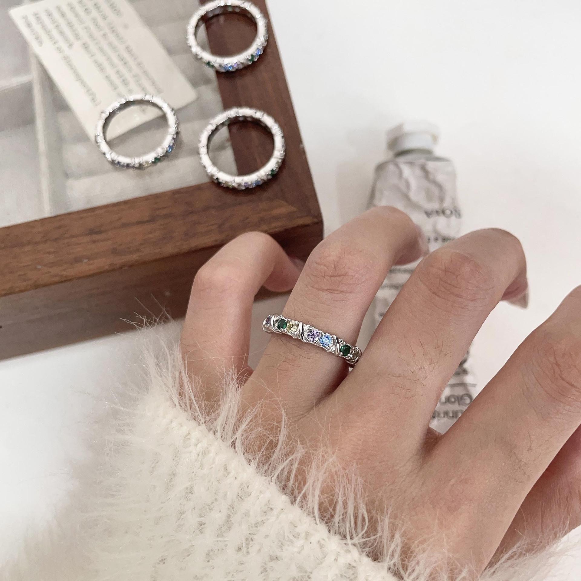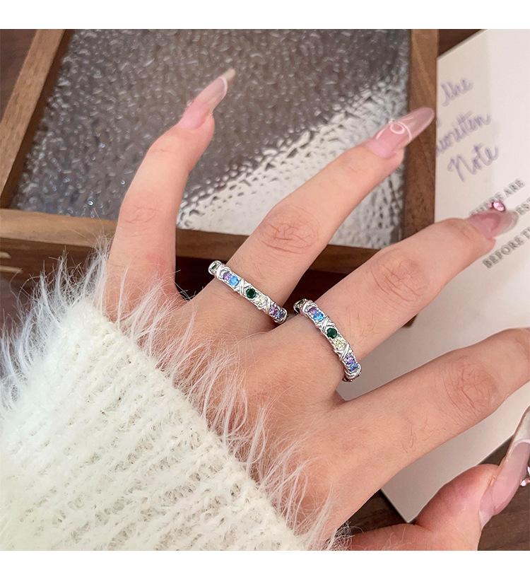 Anillo de circonitas de colores en plata esterlina S925 japonesa y coreana para mujer, con incrustaciones exquisitas, estilo Chanel, de alta gama, de diseñador.