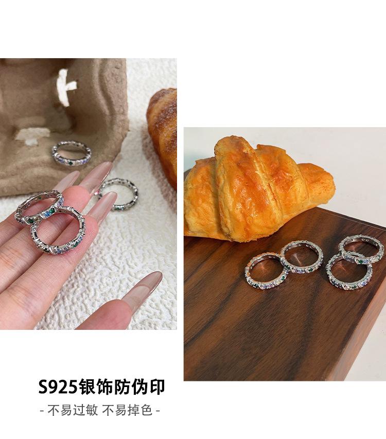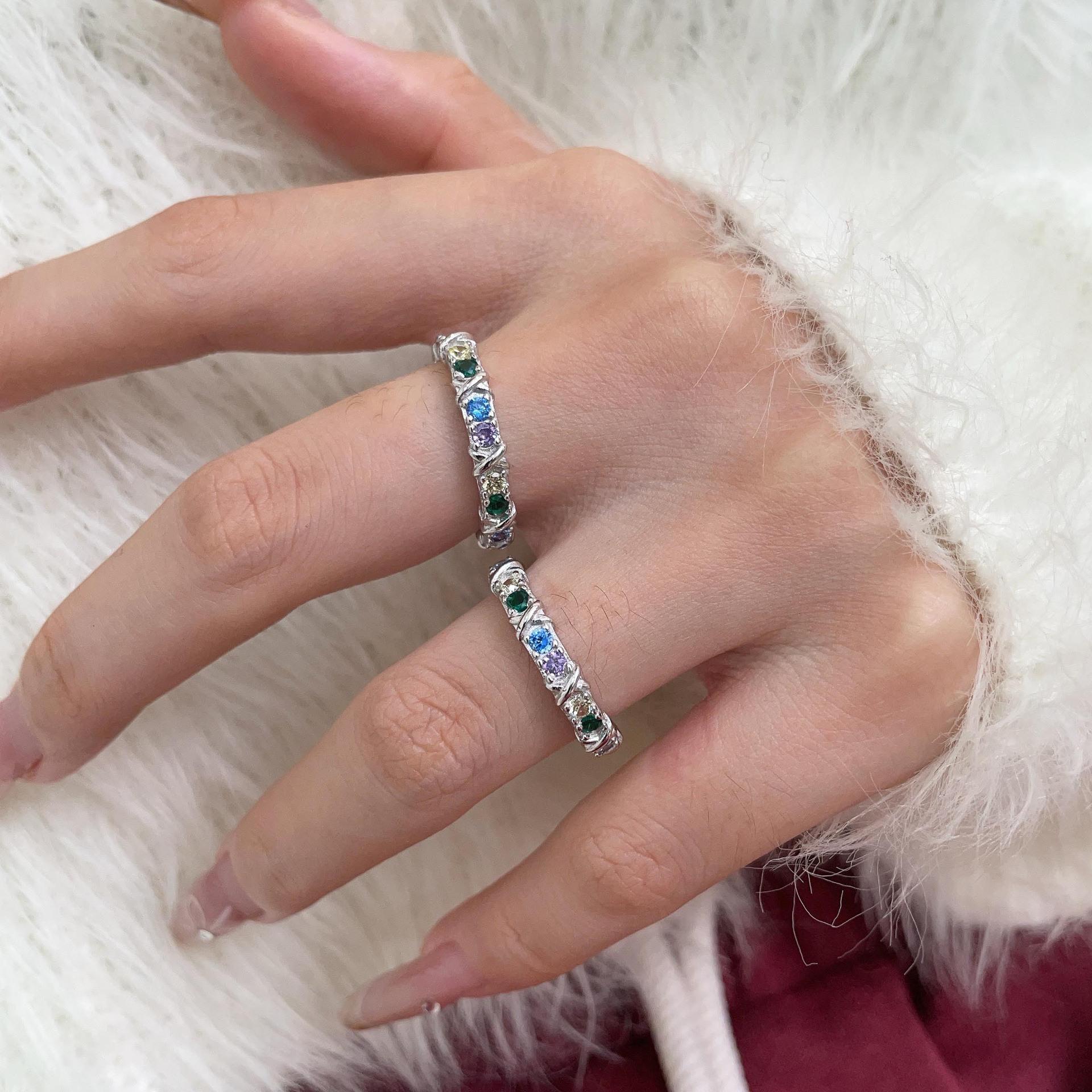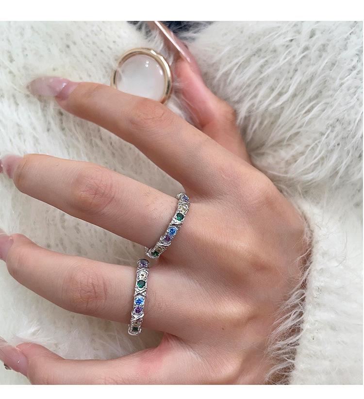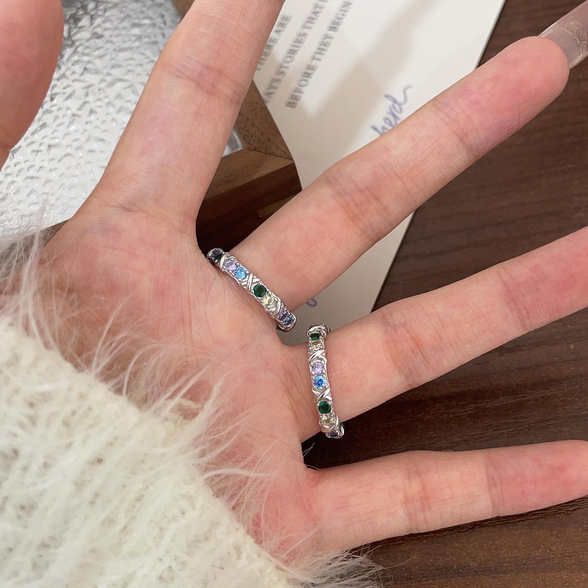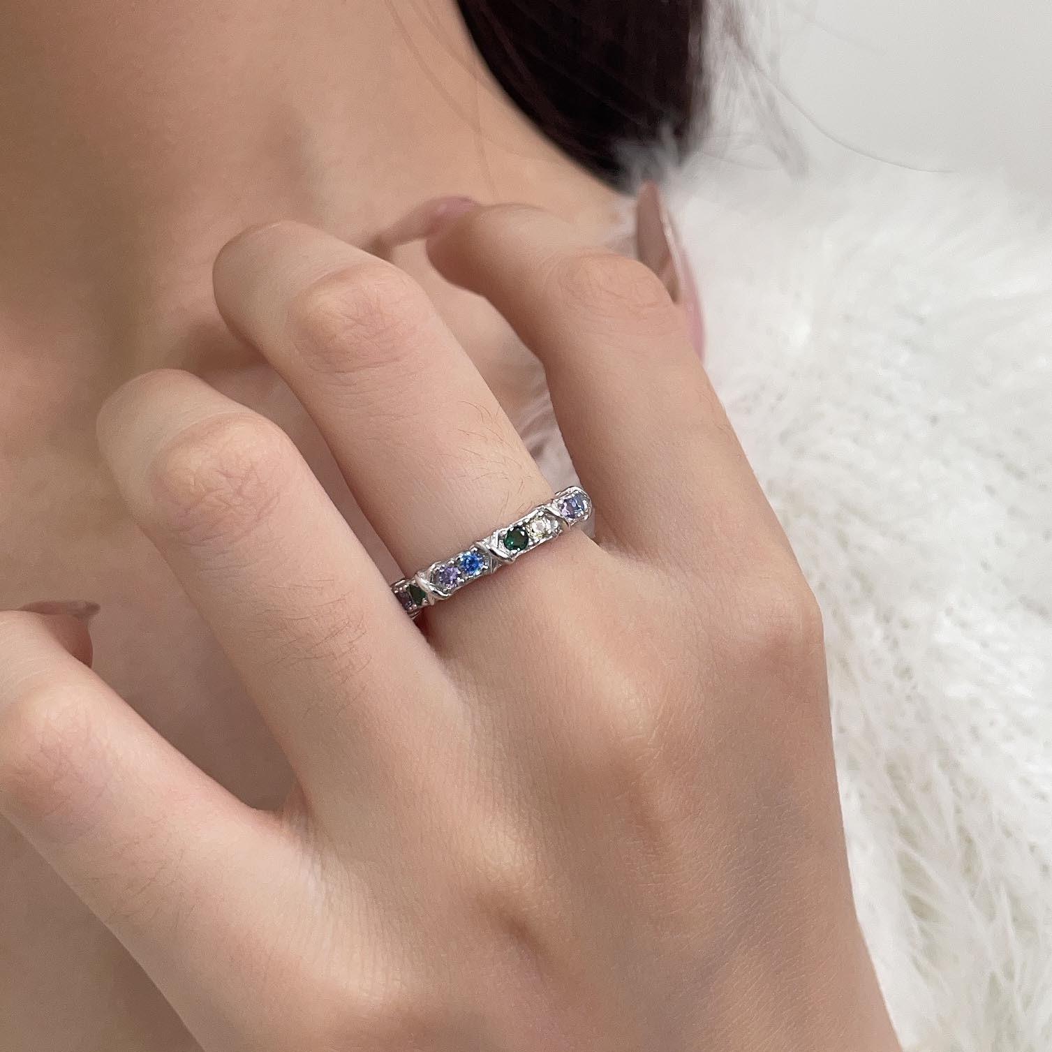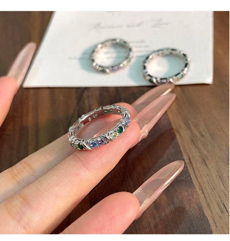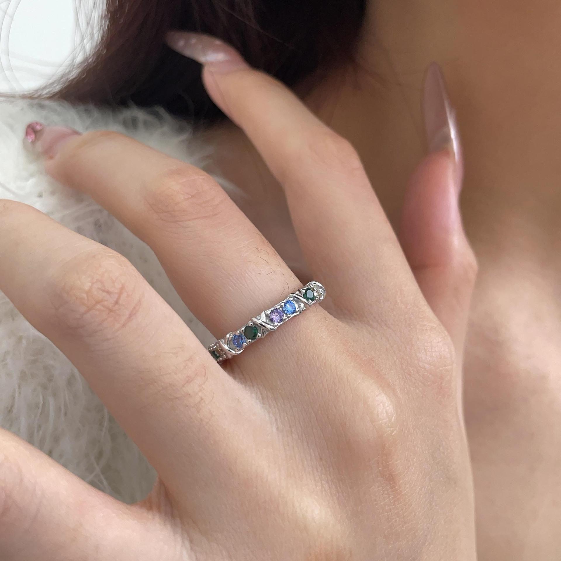 Anillo de circonitas de colores en plata esterlina S925 japonesa y coreana para mujer, con incrustaciones exquisitas, estilo Chanel, de alta gama, de diseñador.