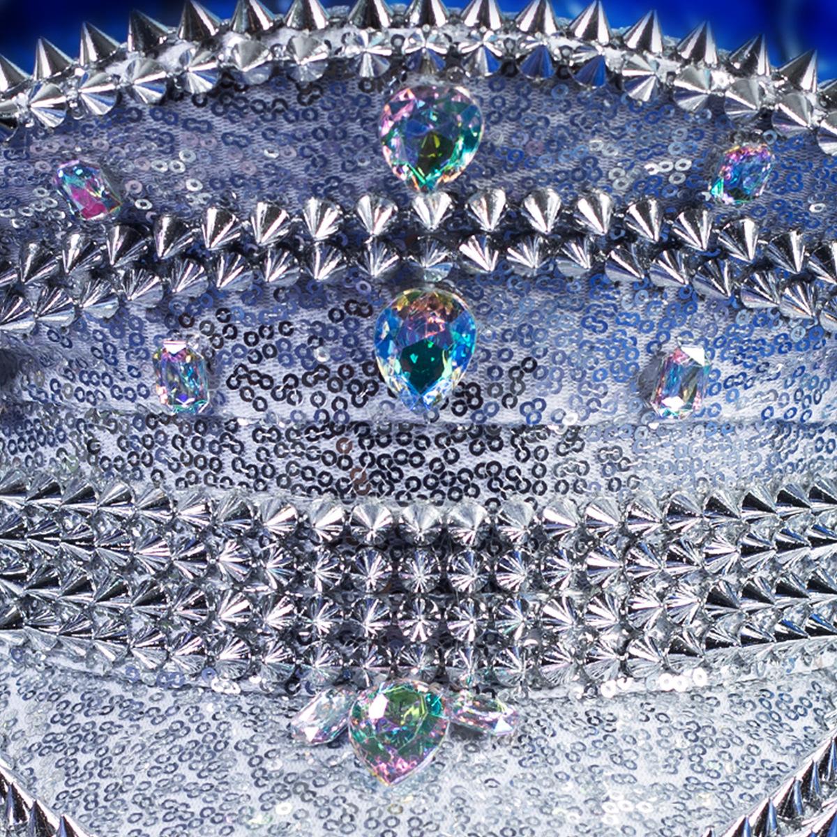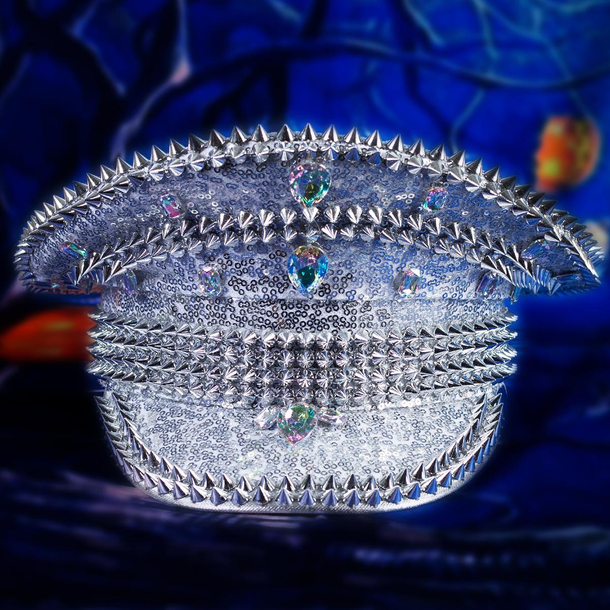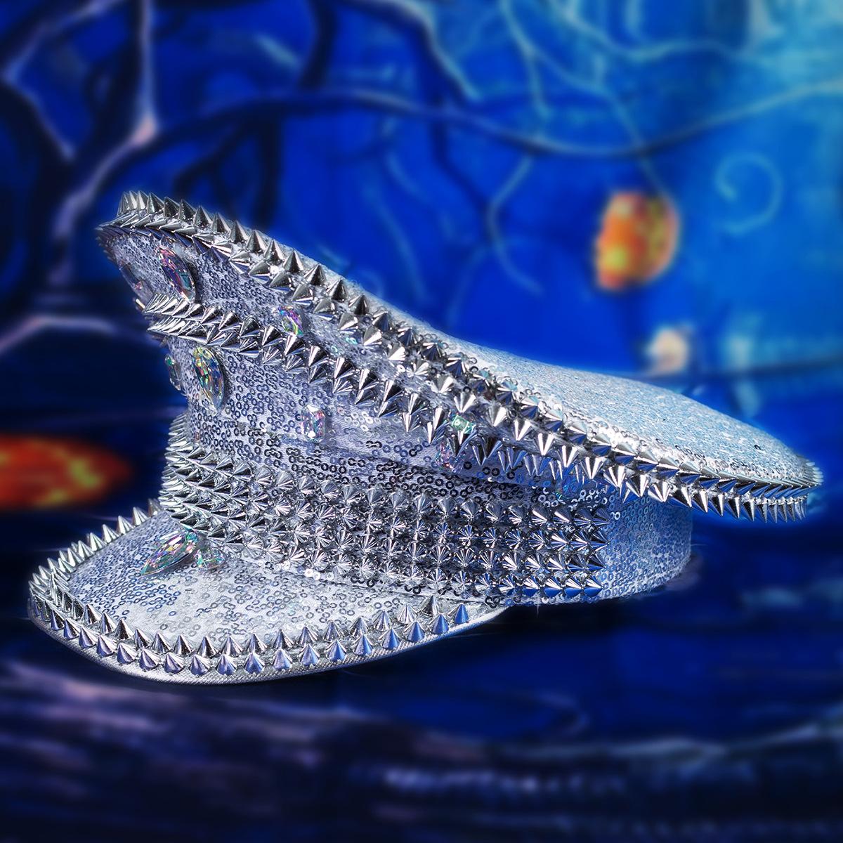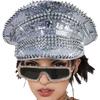 Sombrero de boda para mujer, con lentejuelas plateadas y diamantes incrustados, para fotografía, gorra con visera, para fiesta, carnaval, parte superior plana, sombrero dorado de alto rendimiento
