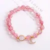 Pulsera de cristal floral color fresa estilo coreano ins de una sola vuelta moda para mujer pulsera de luna joyería al por mayor