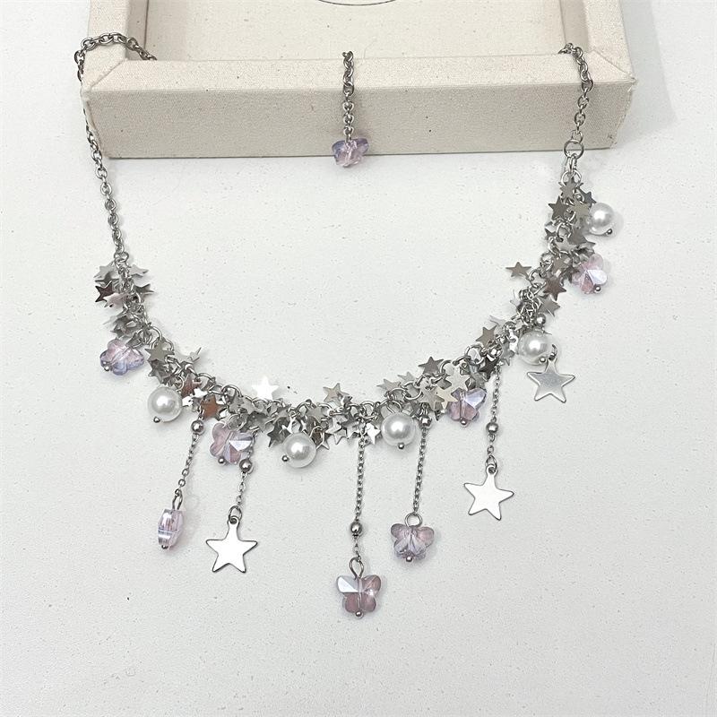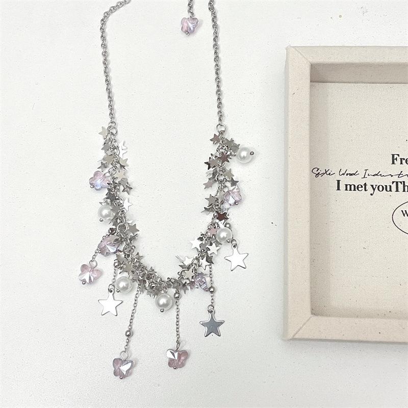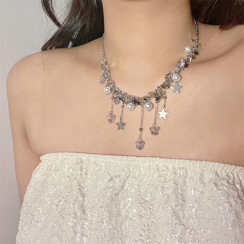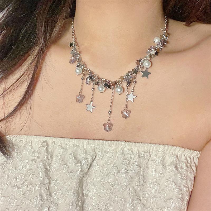Collar con borlas y estrellas, accesorios para mujer, cadena de clavícula, diseño de nicho de lujo ligero, nuevo estilo 2024