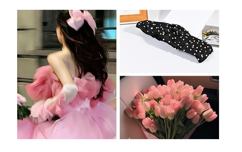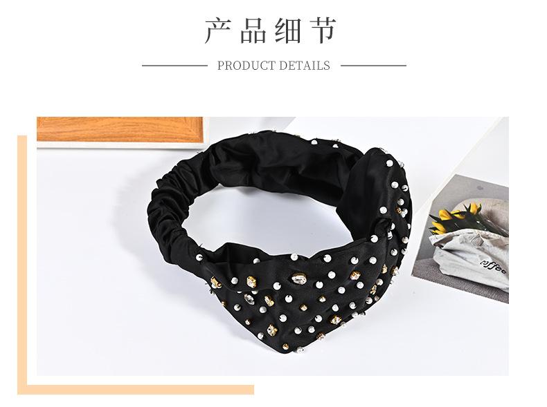 Estilo Comercio Exterior Personalizado Simple Moda Perla Pedrería Cosido a Mano Algodón Seda Transfronterizo Europeo y Americano Banda para el Cabello Accesorios para el Cabello