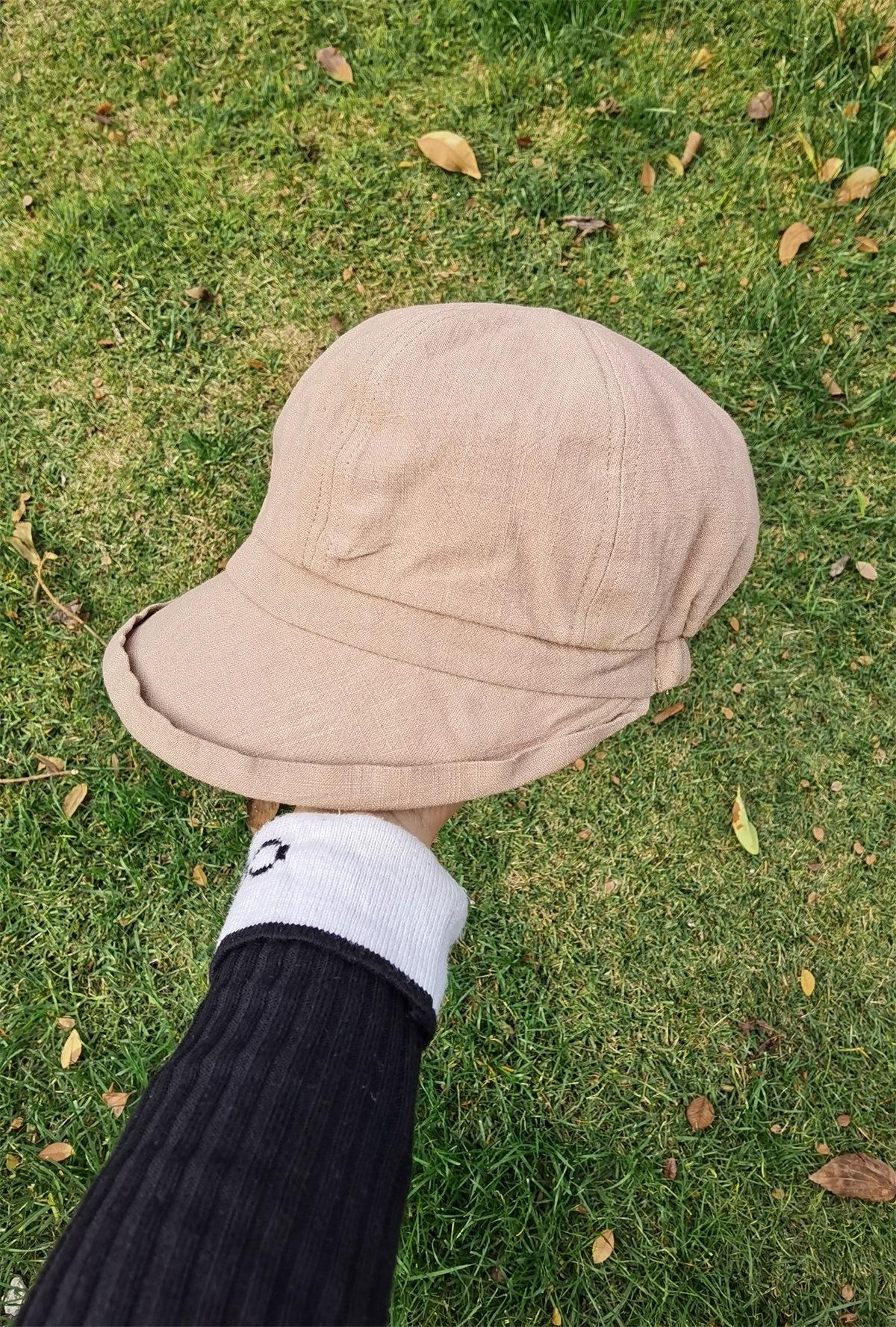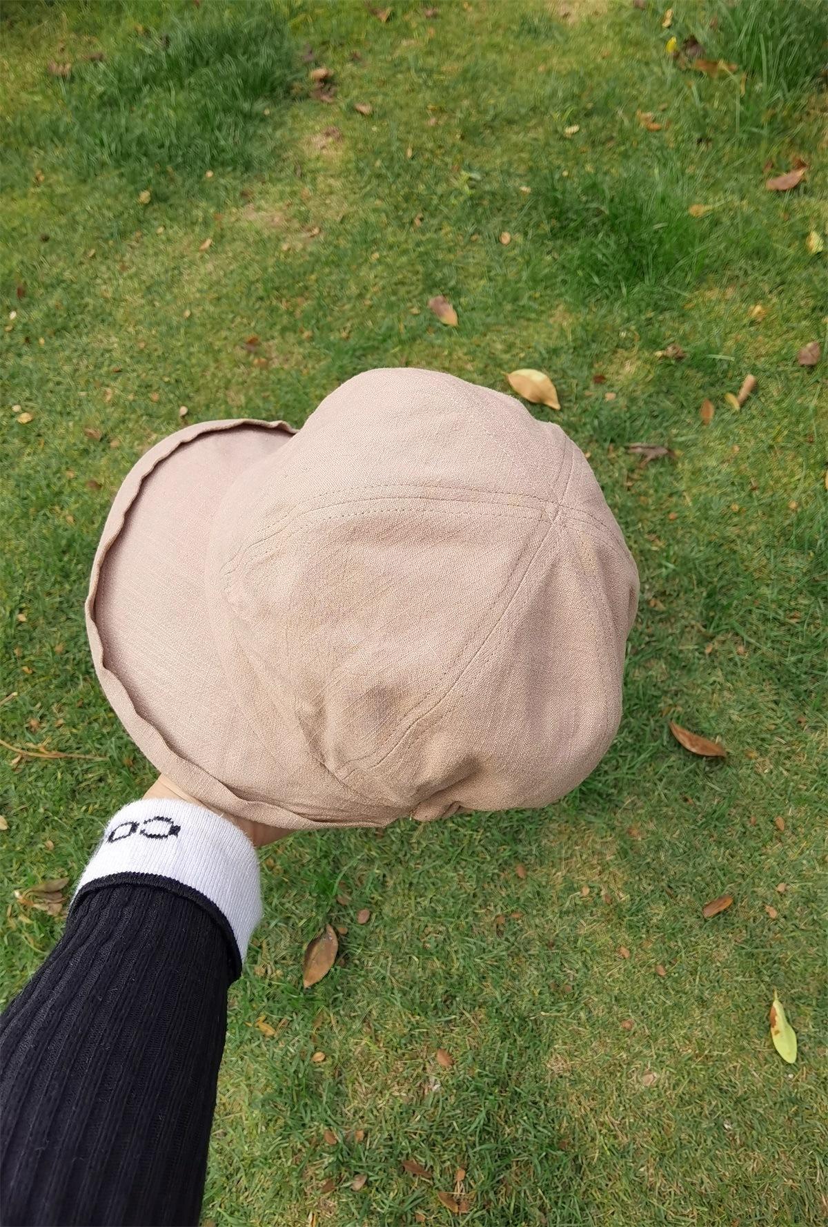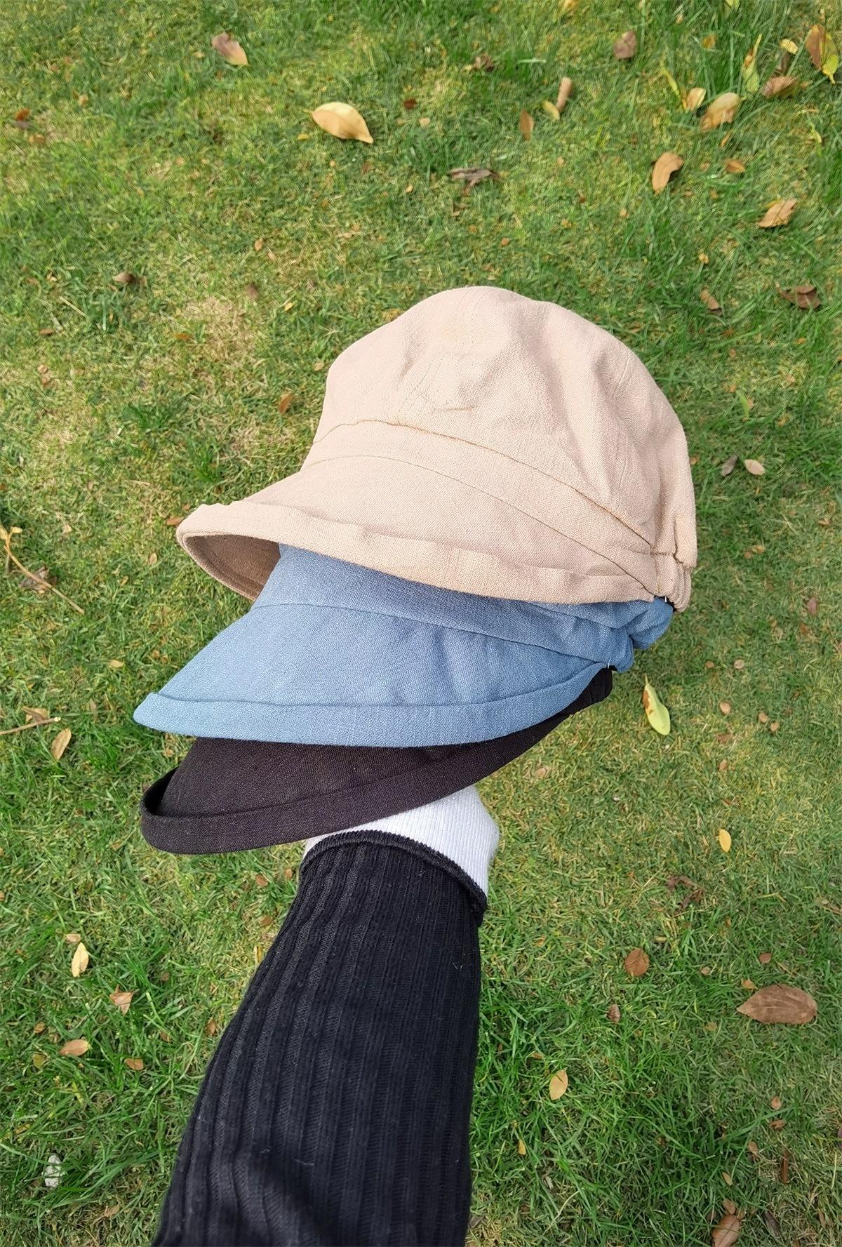 Sombrero de Pescador de Algodón y Lino de Color Sólido Estilo Japonés para Mujer Primavera y Verano Estilo Coreano Combinable Muestra la Cara Pequeña Sombrero de Cubeta Protector Solar para Viaje