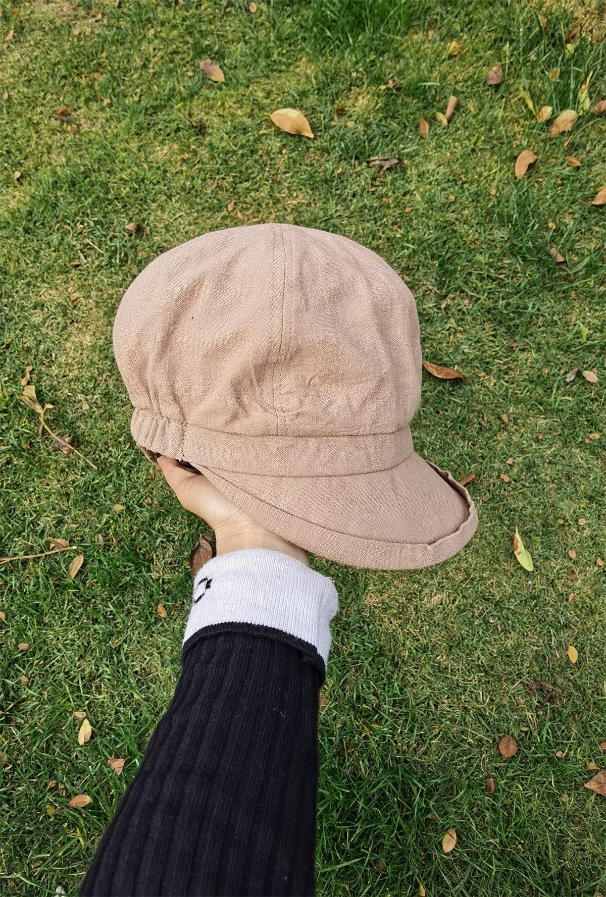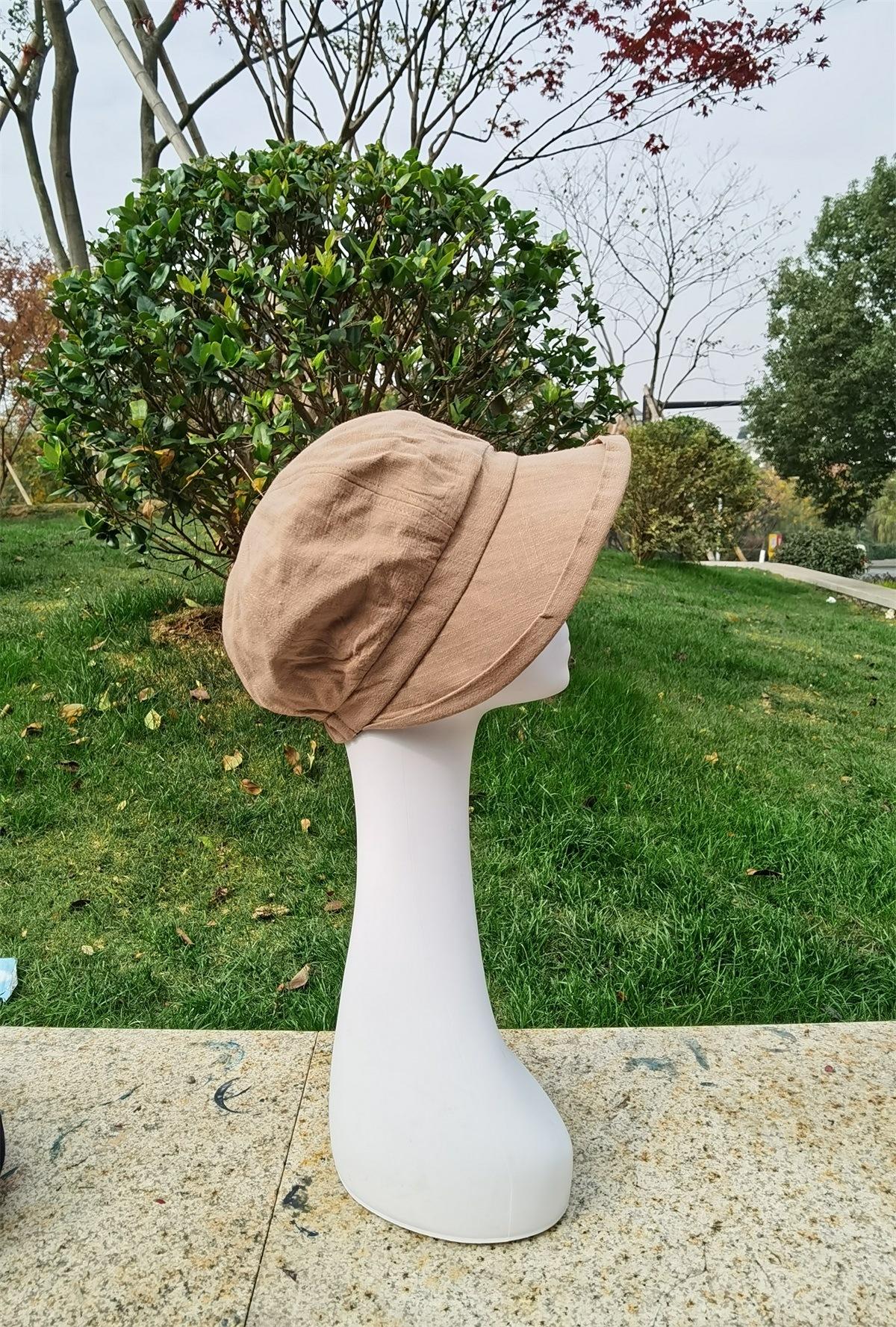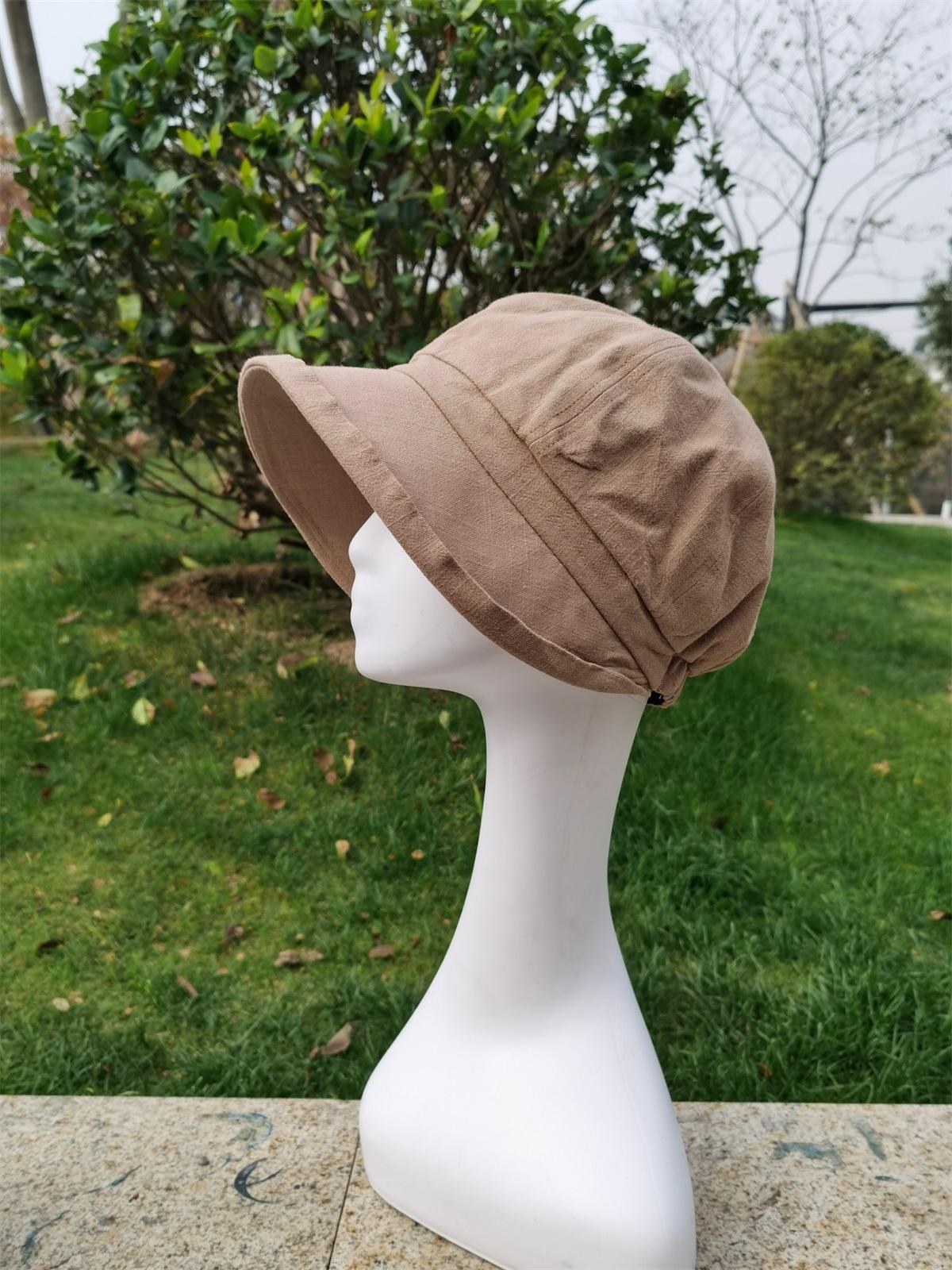 Sombrero de Pescador de Algodón y Lino de Color Sólido Estilo Japonés para Mujer Primavera y Verano Estilo Coreano Combinable Muestra la Cara Pequeña Sombrero de Cubeta Protector Solar para Viaje