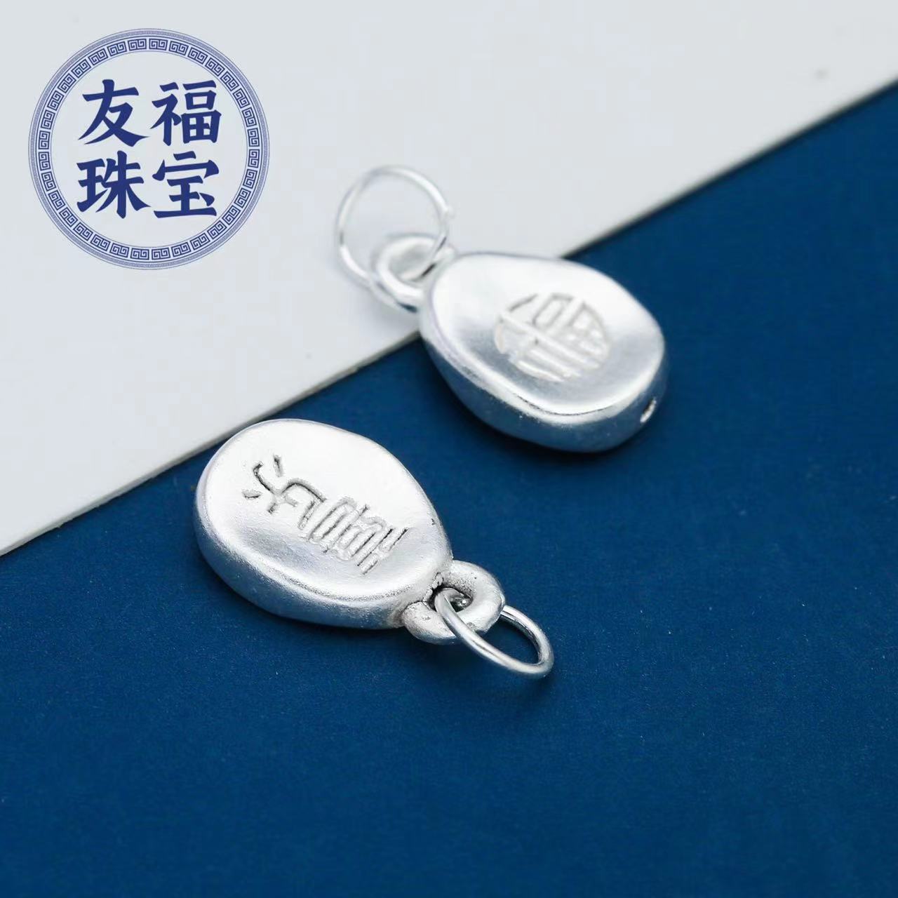 Pulsera colgante cóncava Ping An Fu de la marca Xile Fu de plata pura 999, pulsera de cuerda trenzada con cuentas hecha a mano, accesorios colgantes