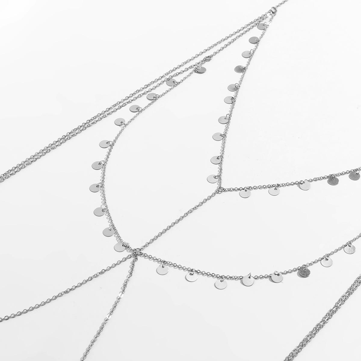 Cadena de pecho con borlas de lentejuelas sexy, joyería transfronteriza europea y americana, cadena de ropa, cadena cruzada sencilla para mujer, cadena de cuerpo hueco