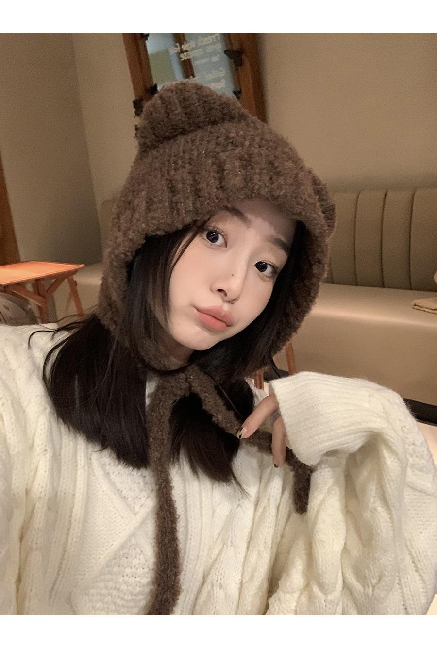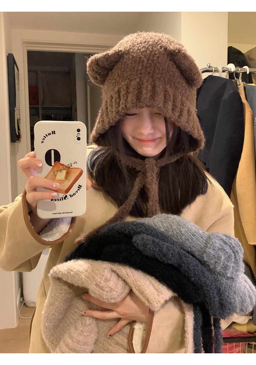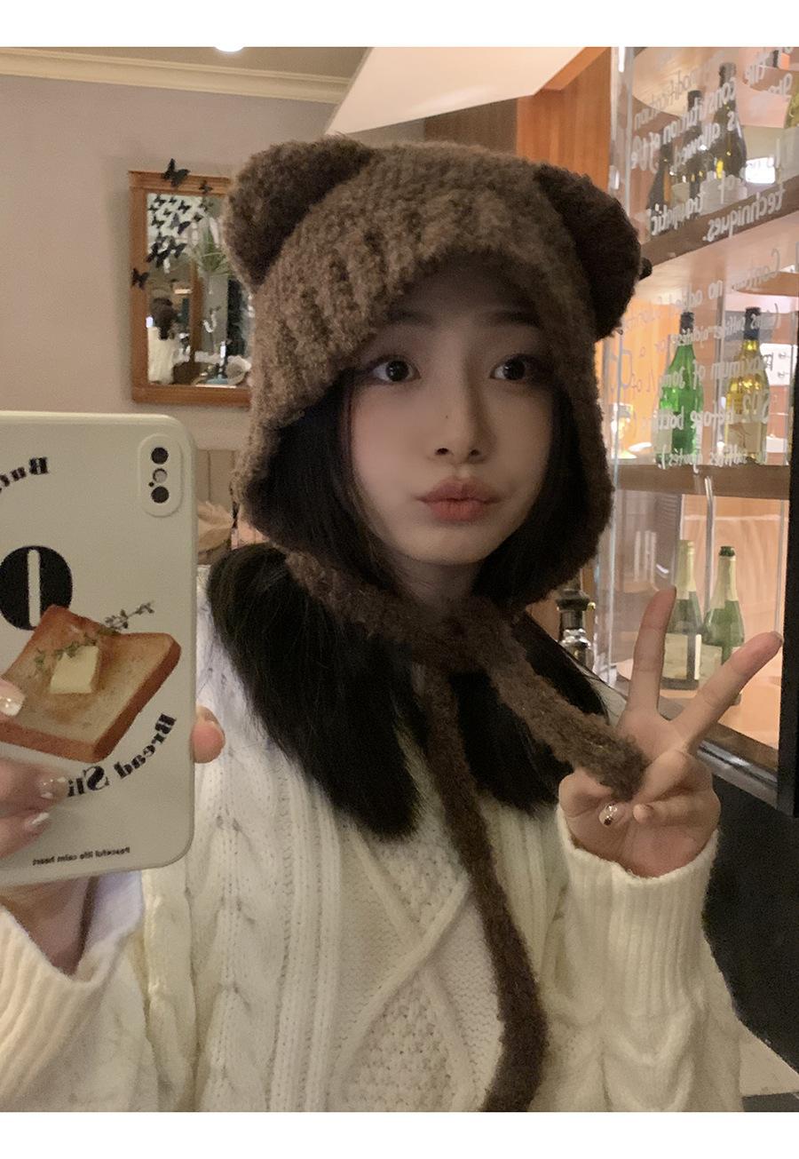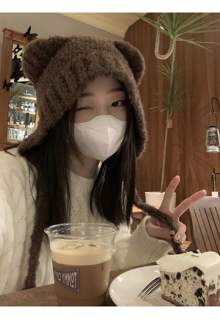 Gorro Invierno Correa Gorro Lindo Oso Orejera Gorro Esponjoso Invierno para Mujer Cálido Protección para las Orejas Gorro de Lana Tejido