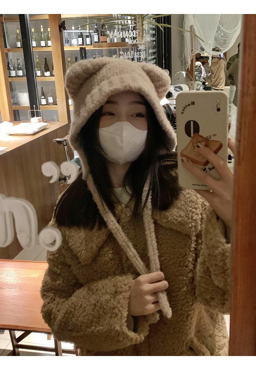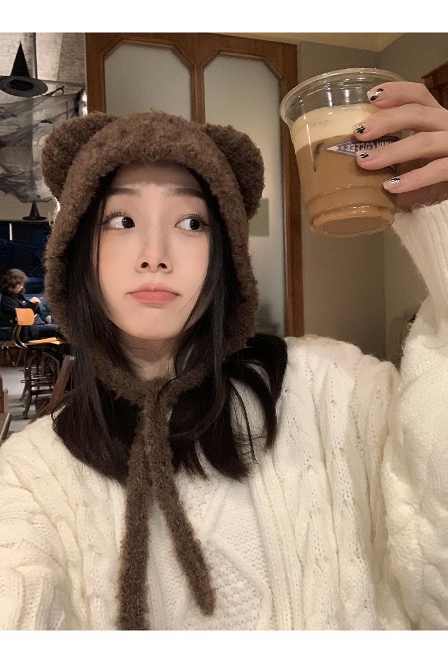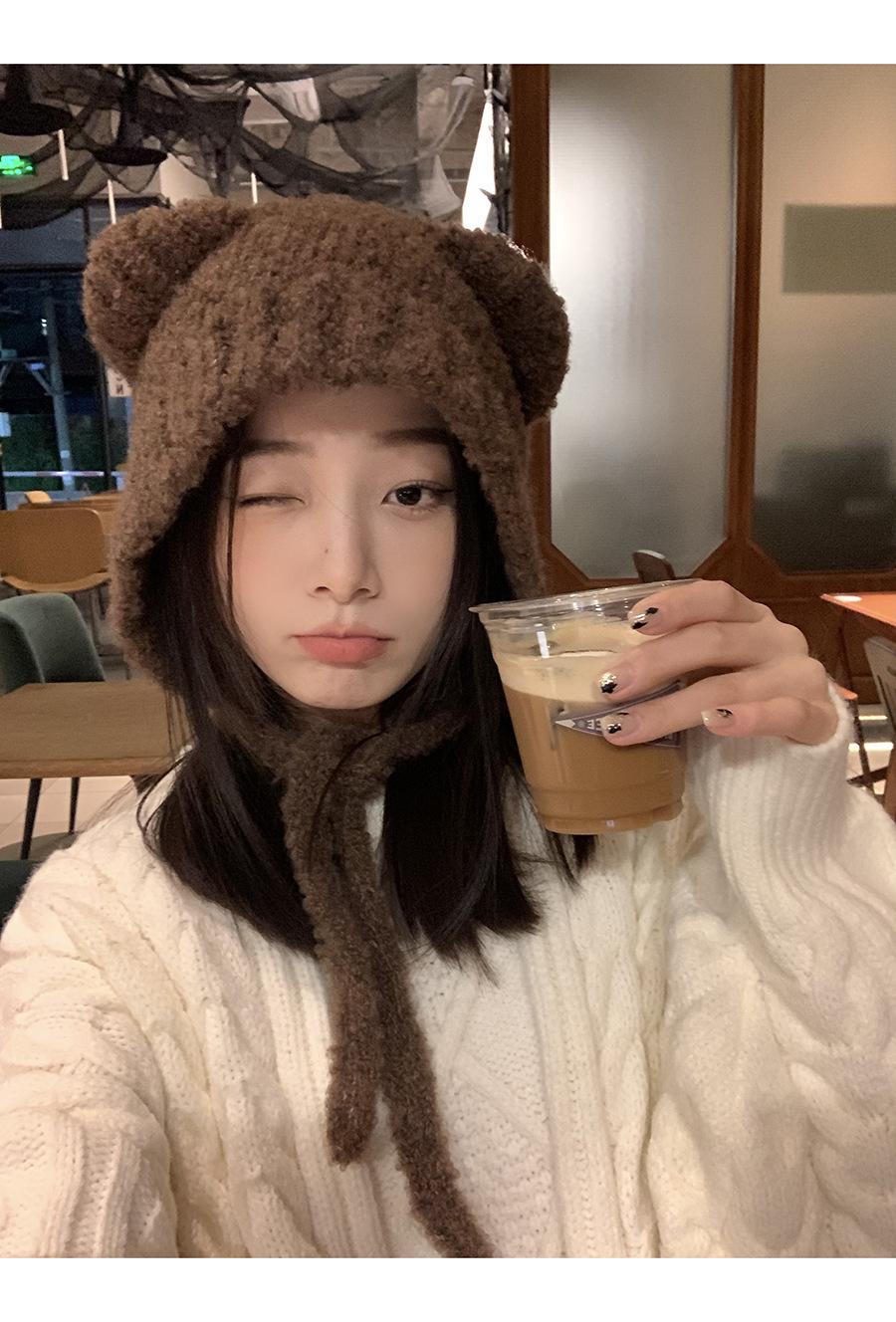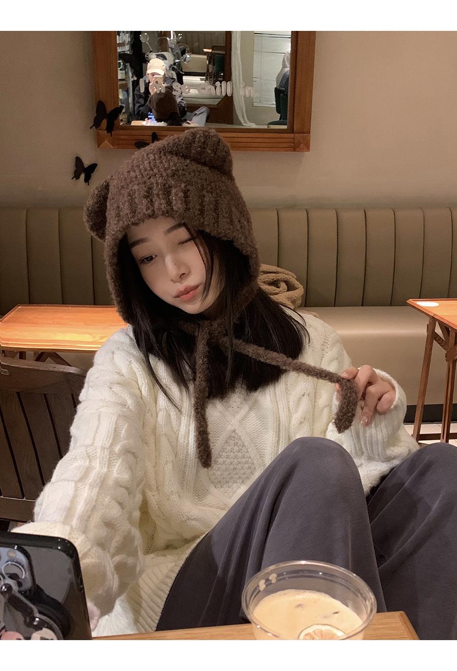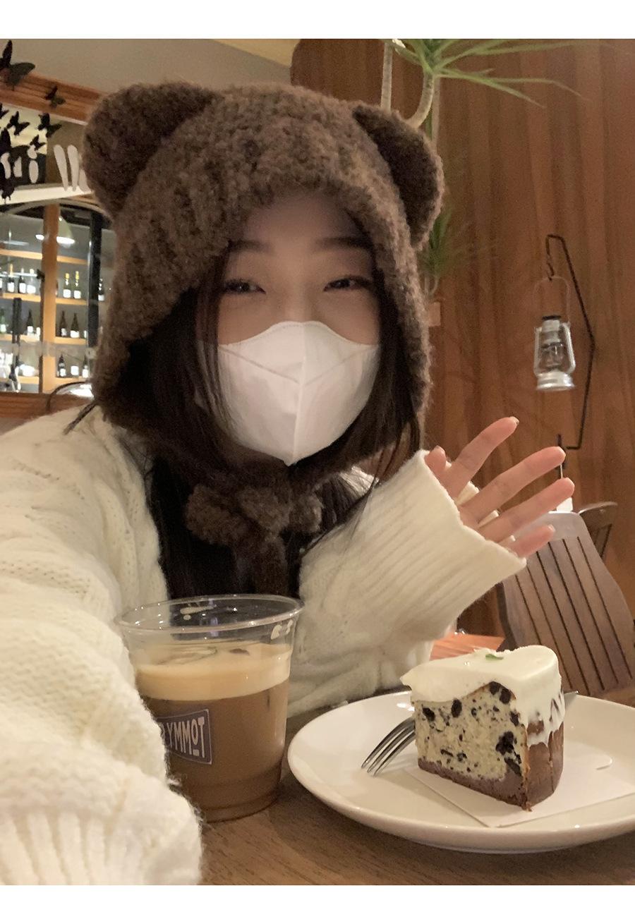 Gorro Invierno Correa Gorro Lindo Oso Orejera Gorro Esponjoso Invierno para Mujer Cálido Protección para las Orejas Gorro de Lana Tejido