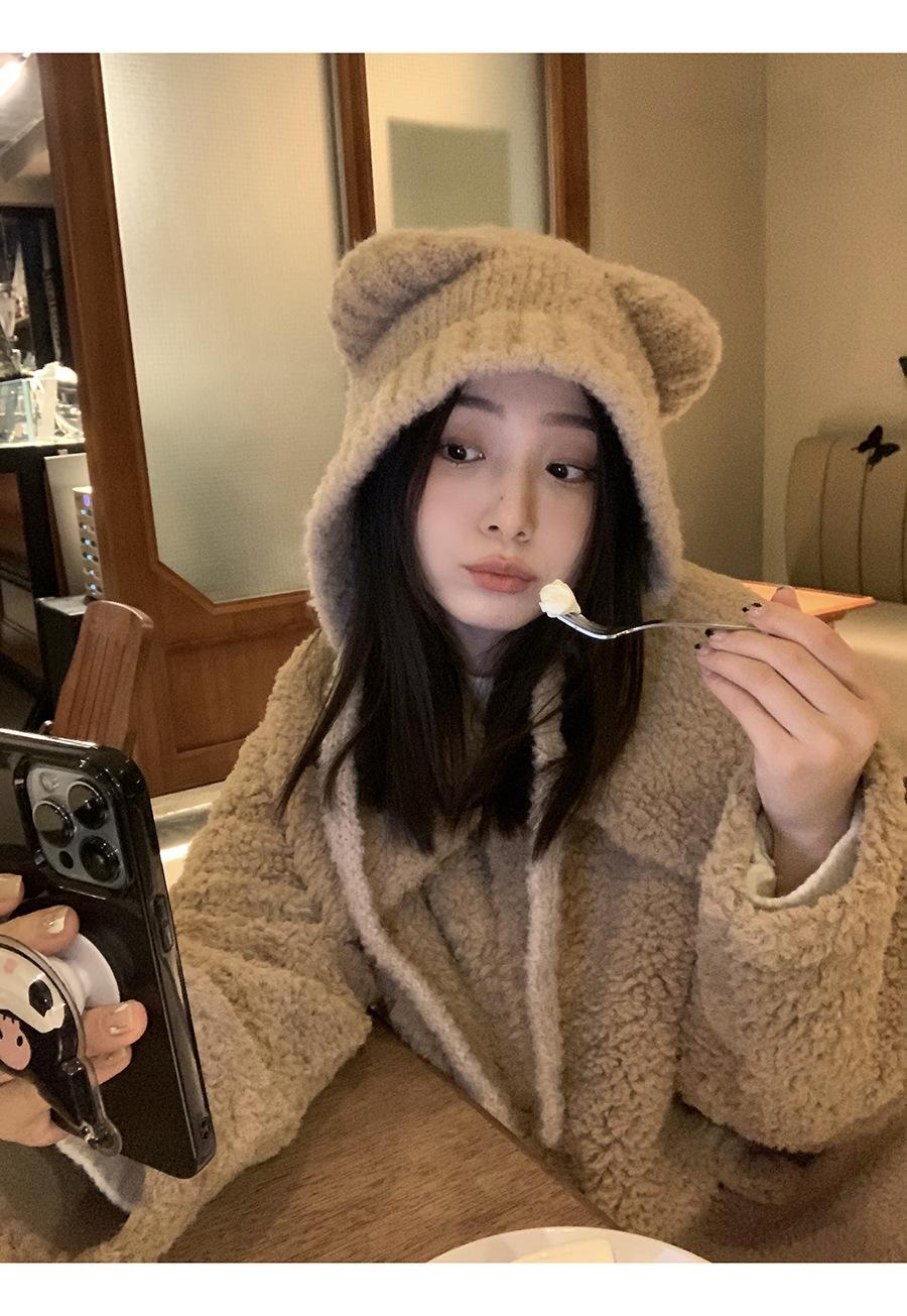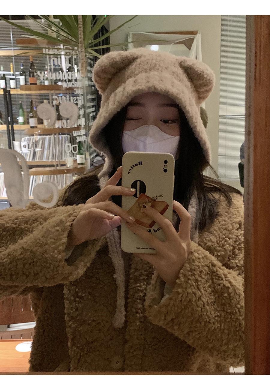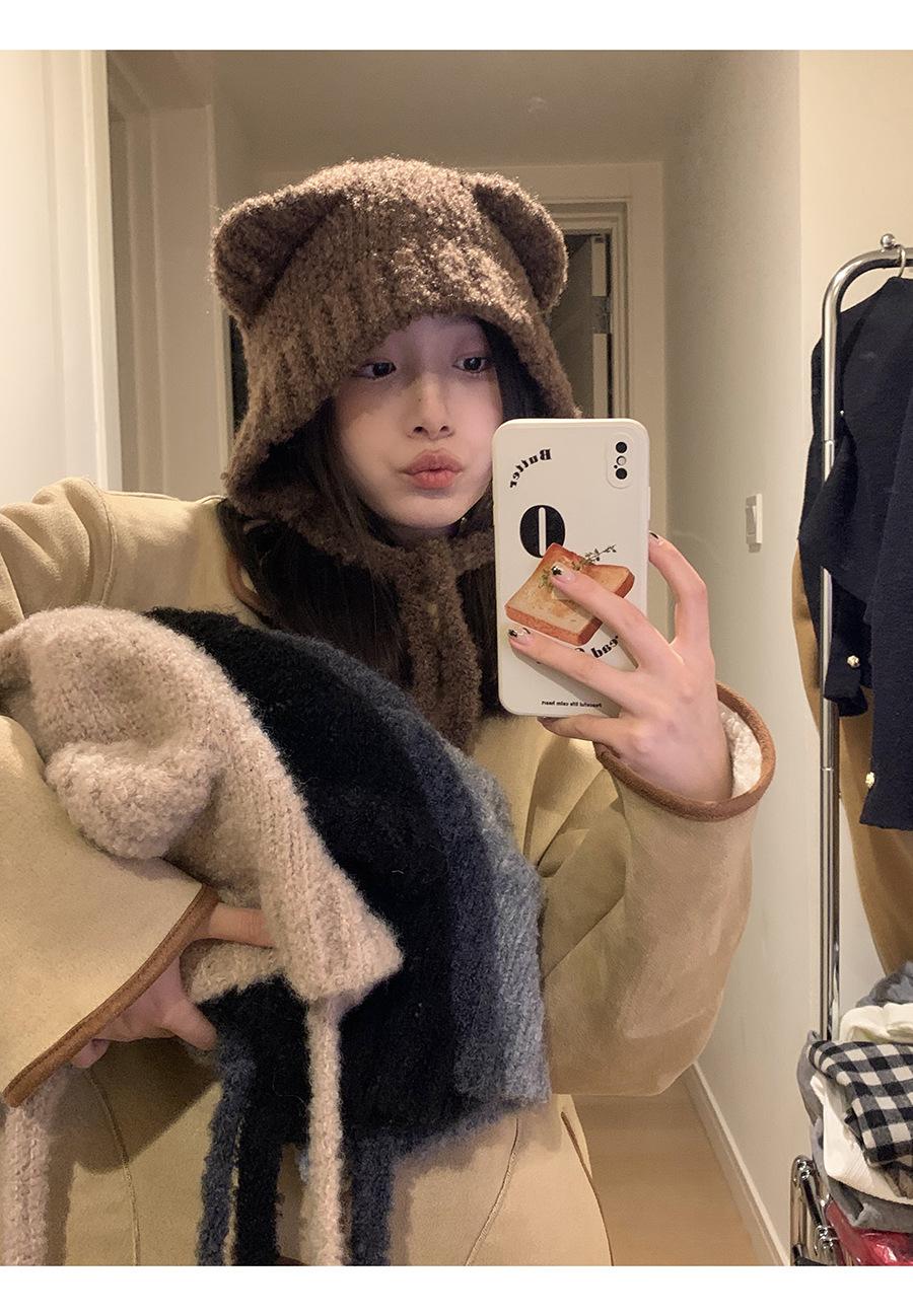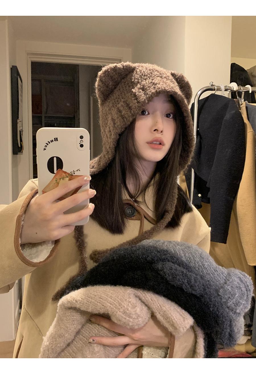 Gorro Invierno Correa Gorro Lindo Oso Orejera Gorro Esponjoso Invierno para Mujer Cálido Protección para las Orejas Gorro de Lana Tejido